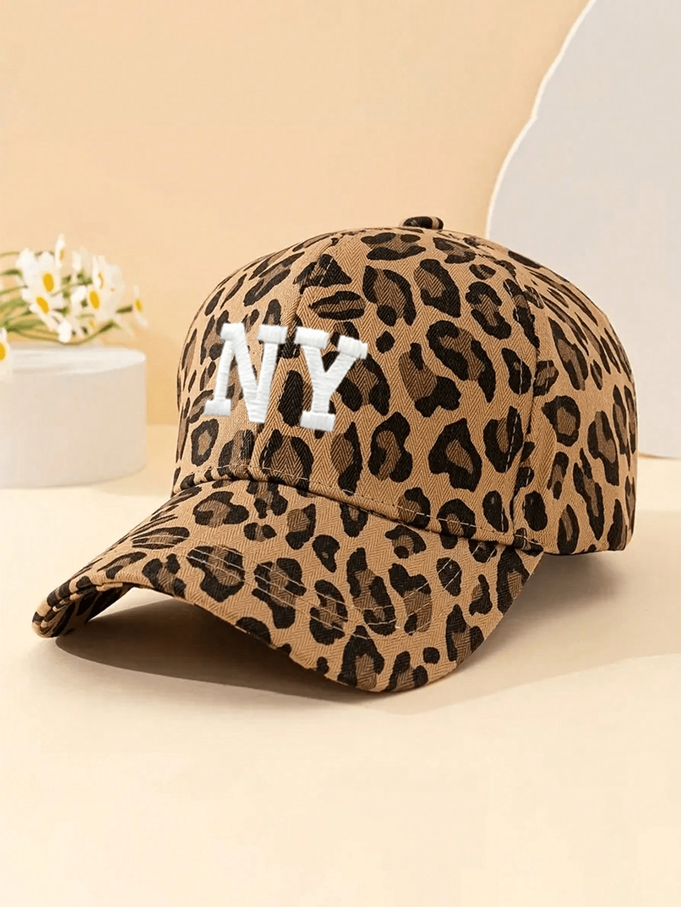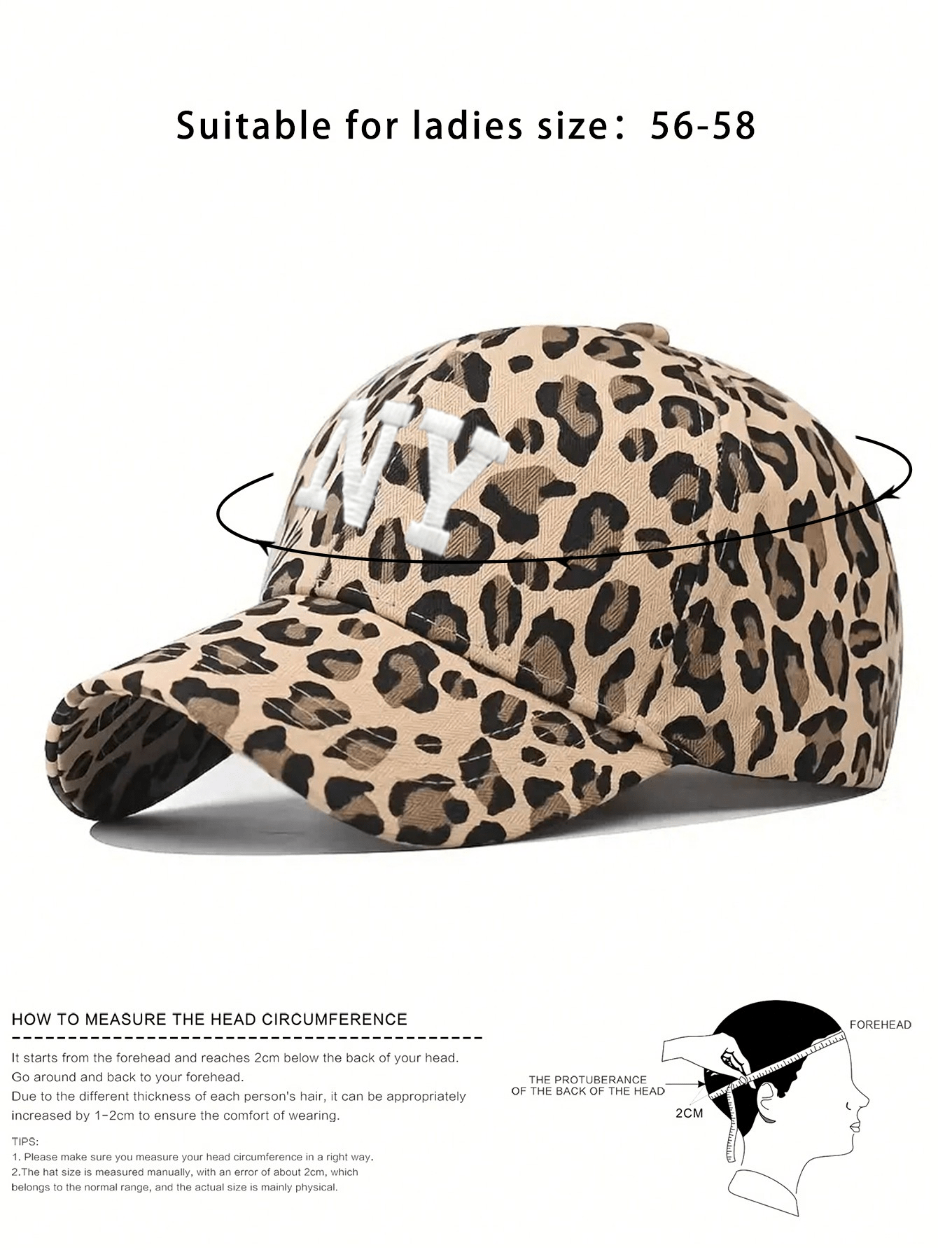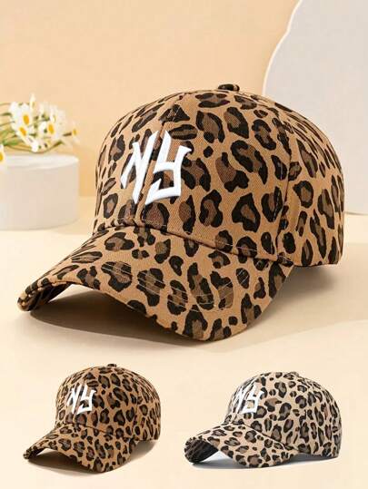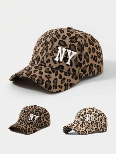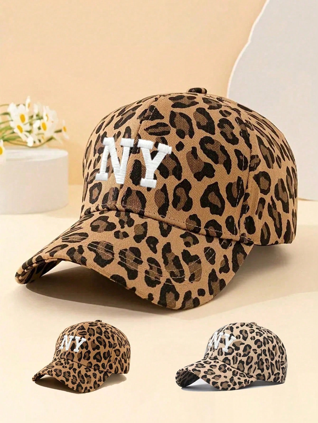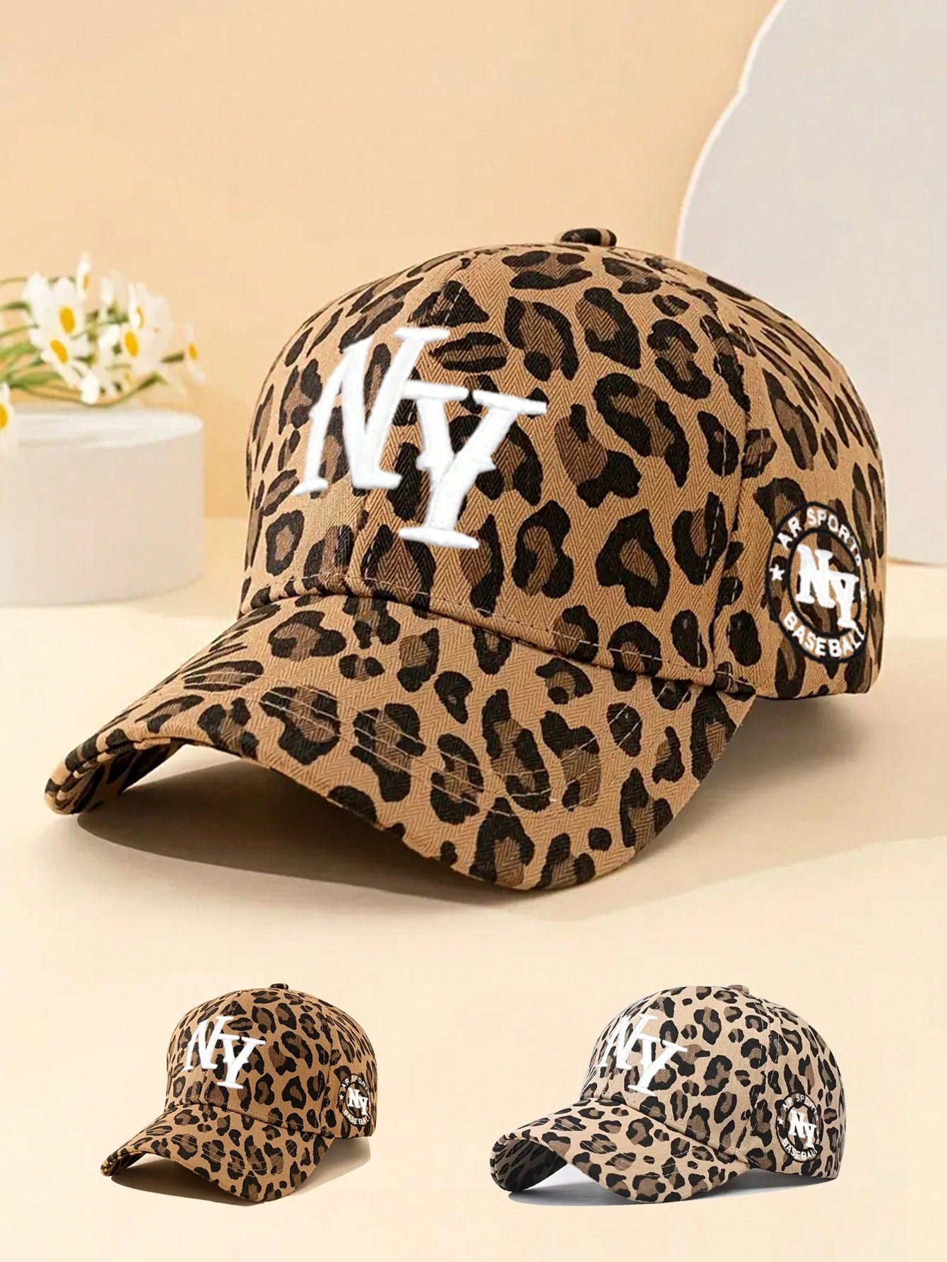 1pc Women's Embroidered NY Leopard Print Baseball Cap, Outdoor Adjustable Sun Protection Casual Hat Suitable For Spring/Autumn Travel, Fashionable & Versatile, Unisex Y2K Style Sun Hat For Winter