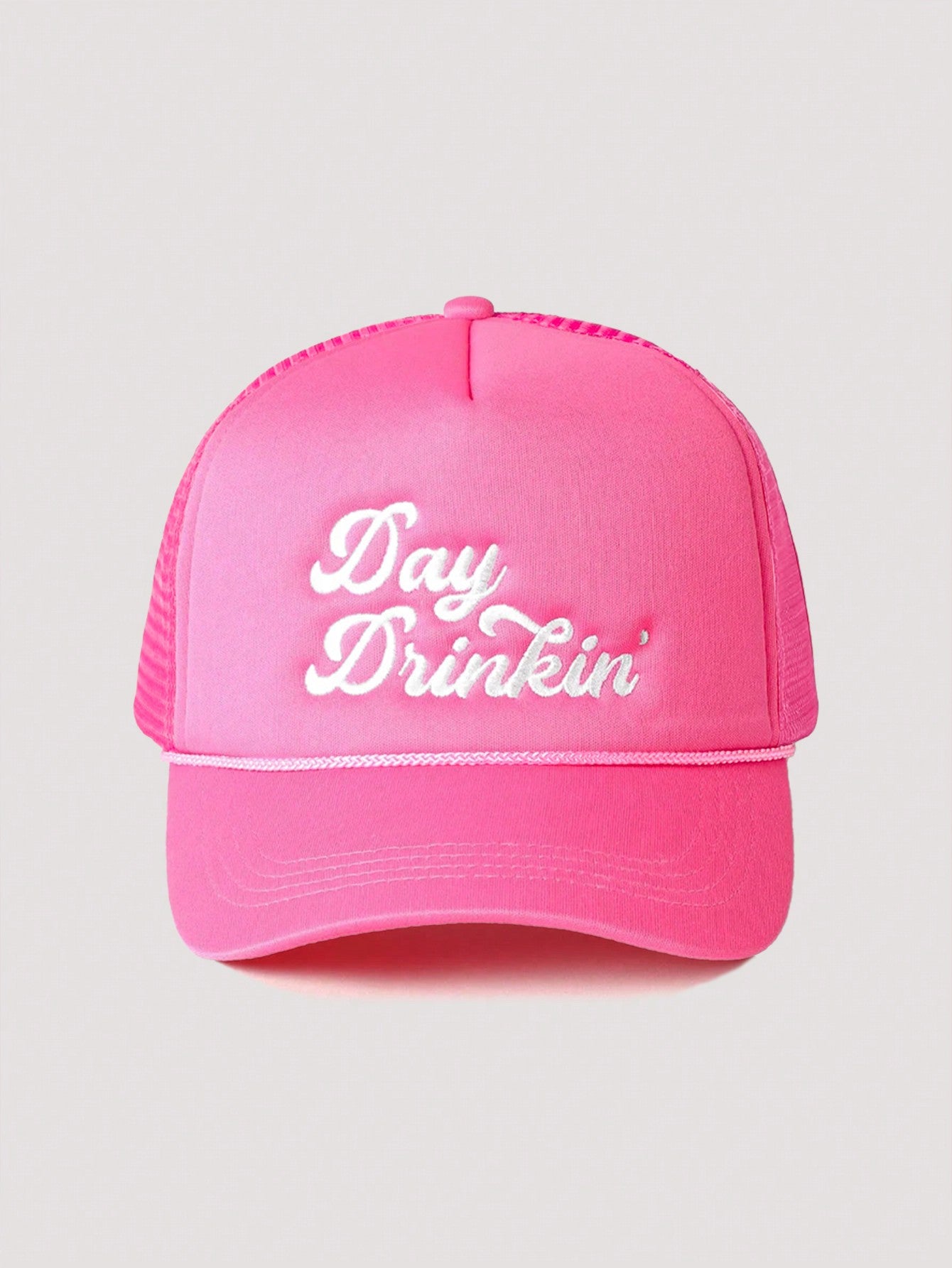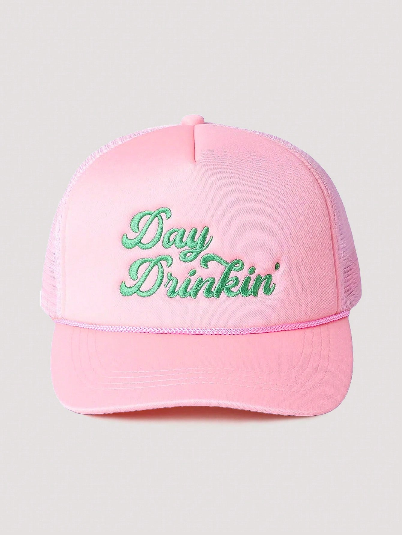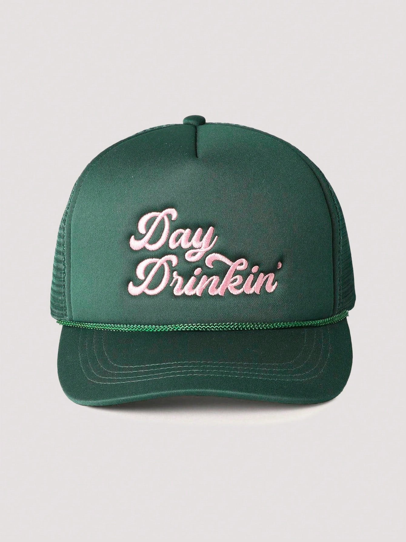 1pc Women's Outdoor Embroidered "Day Drinkin" Adjustable Drawstring Mesh Baseball Cap, Suitable For Valentines Day, Spring/Autumn Travel, Versatile Sun Protection Hat, Unisex Y2K Style Cap Valentines