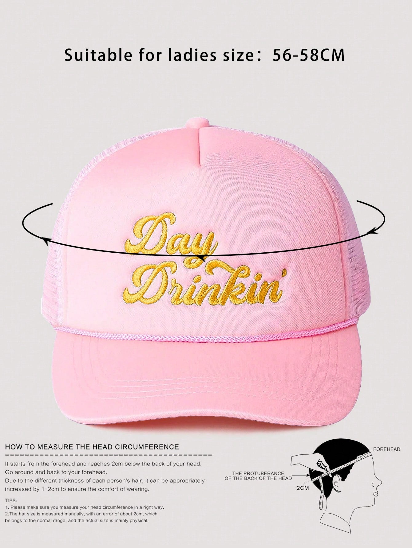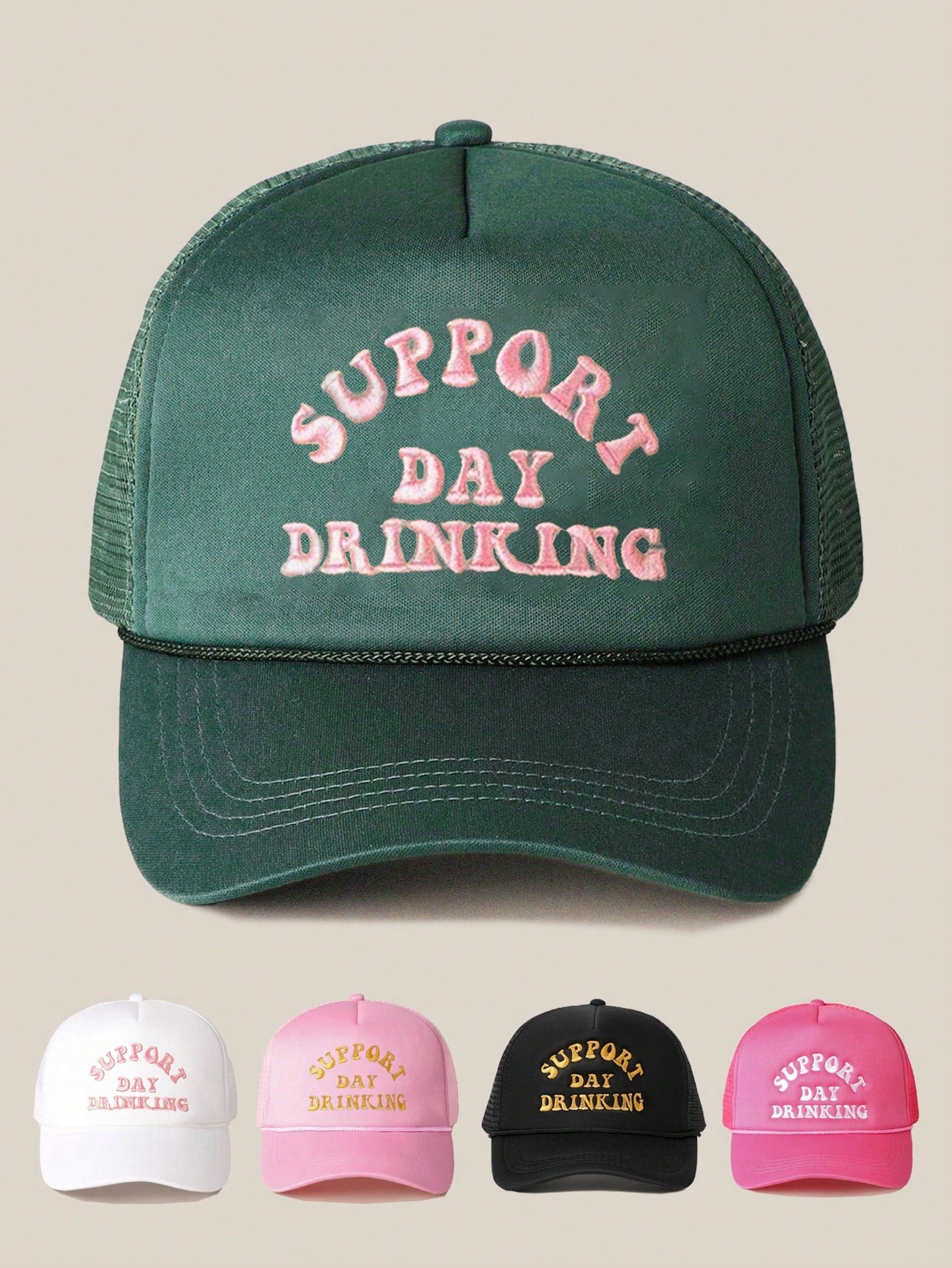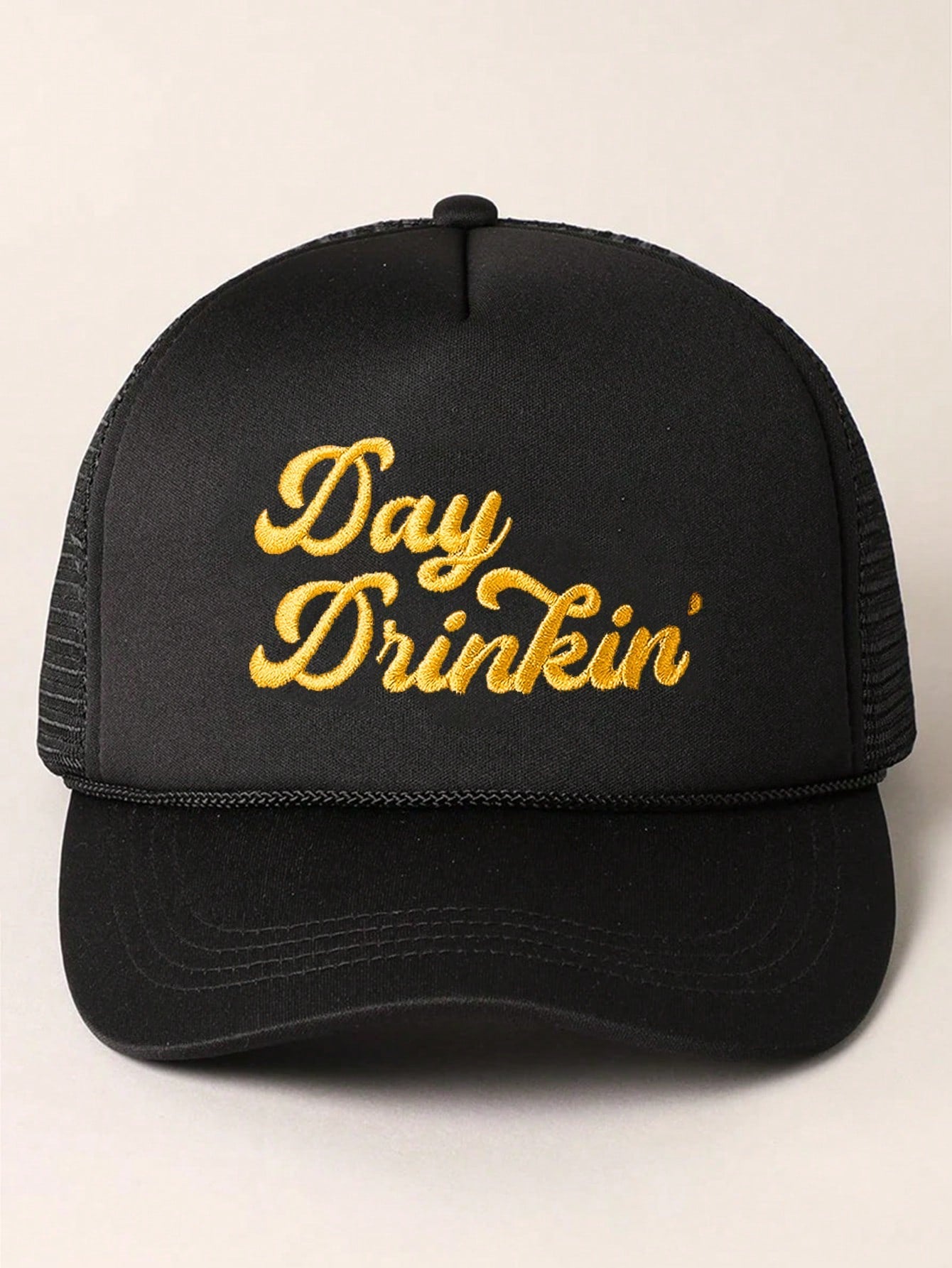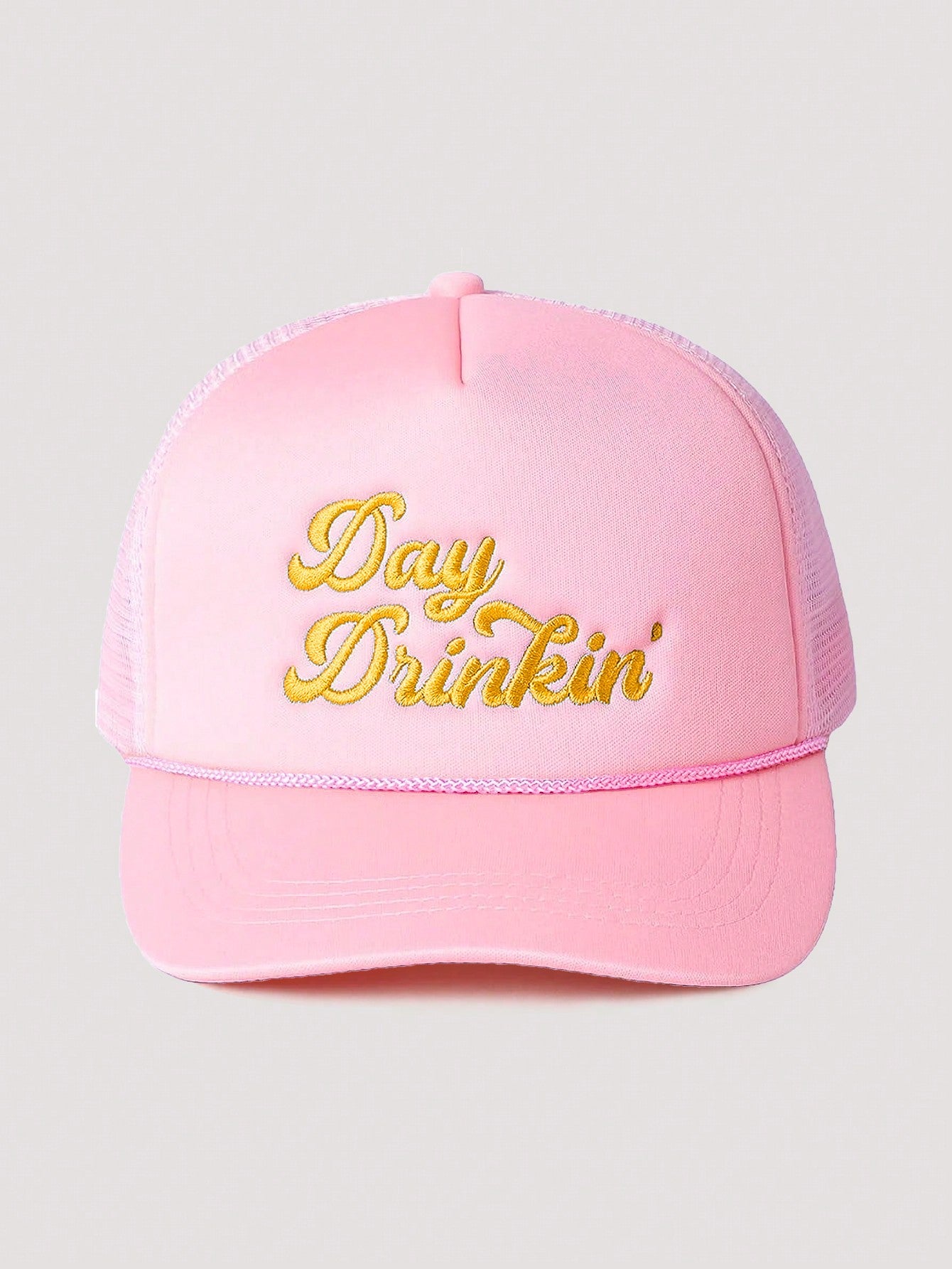 1pc Women's Outdoor Embroidered "Day Drinkin" Adjustable Drawstring Mesh Baseball Cap, Suitable For Valentines Day, Spring/Autumn Travel, Versatile Sun Protection Hat, Unisex Y2K Style Cap Valentines