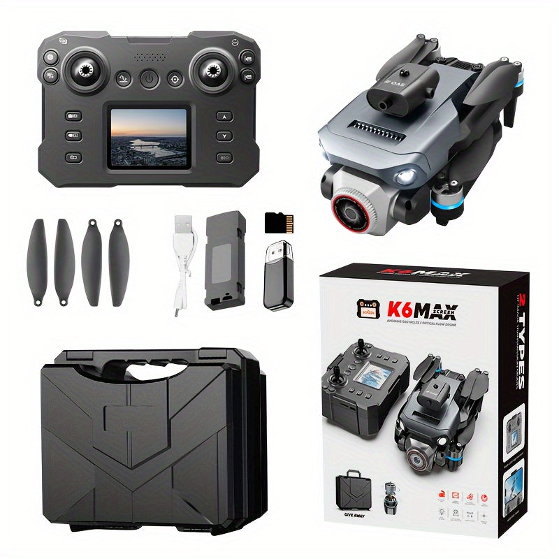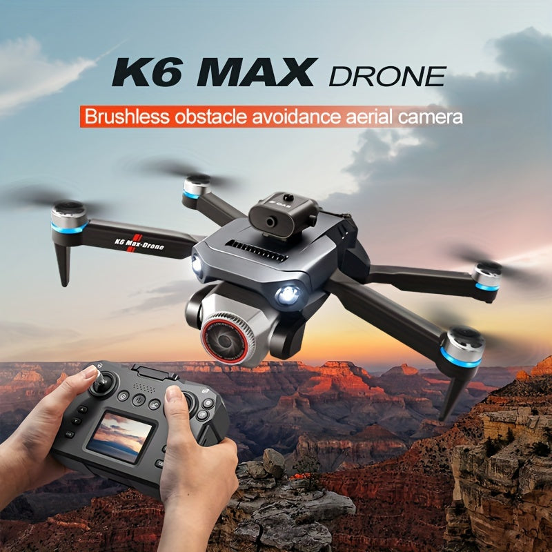 1pc ZnLyrion K6 MAX Drone avec deux caméras électriques, moteur sans balai, Wi-Fi, vidéo 480p, cardan 1 axe, altitude de 3149,61 pouces, portée de 3937,01 pouces, batterie rechargeable USB 1800mAh, vitesse de 6m/s, télécommande con