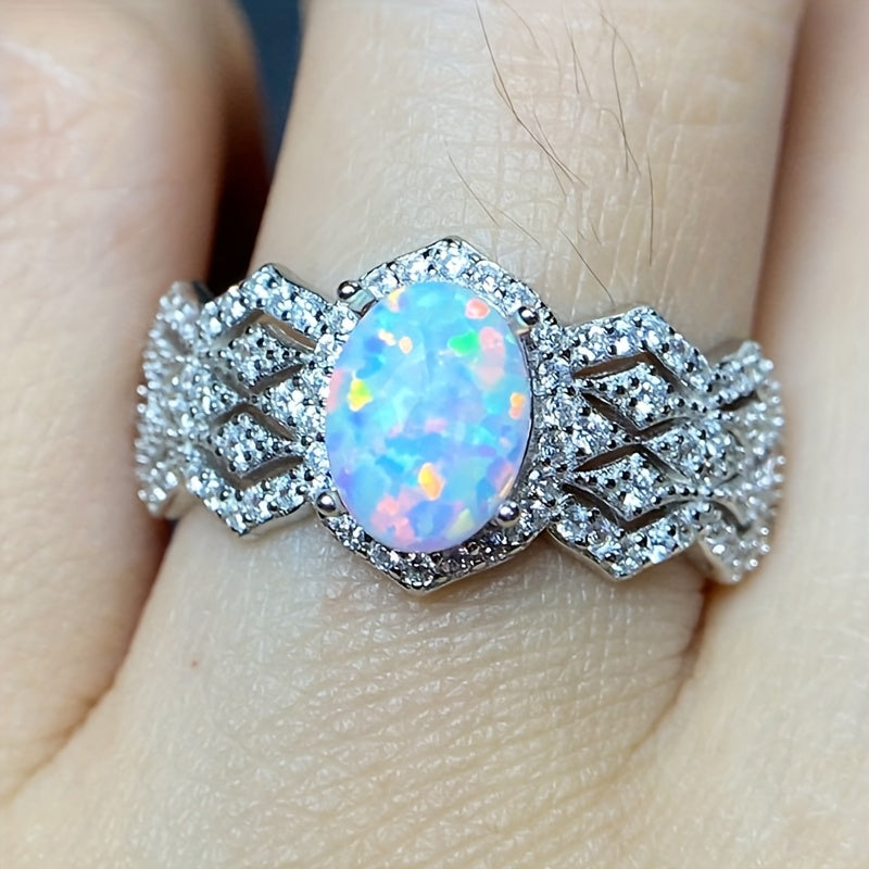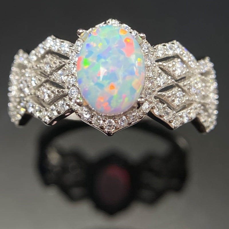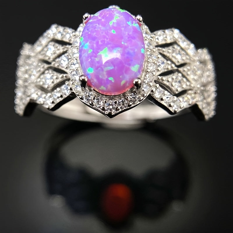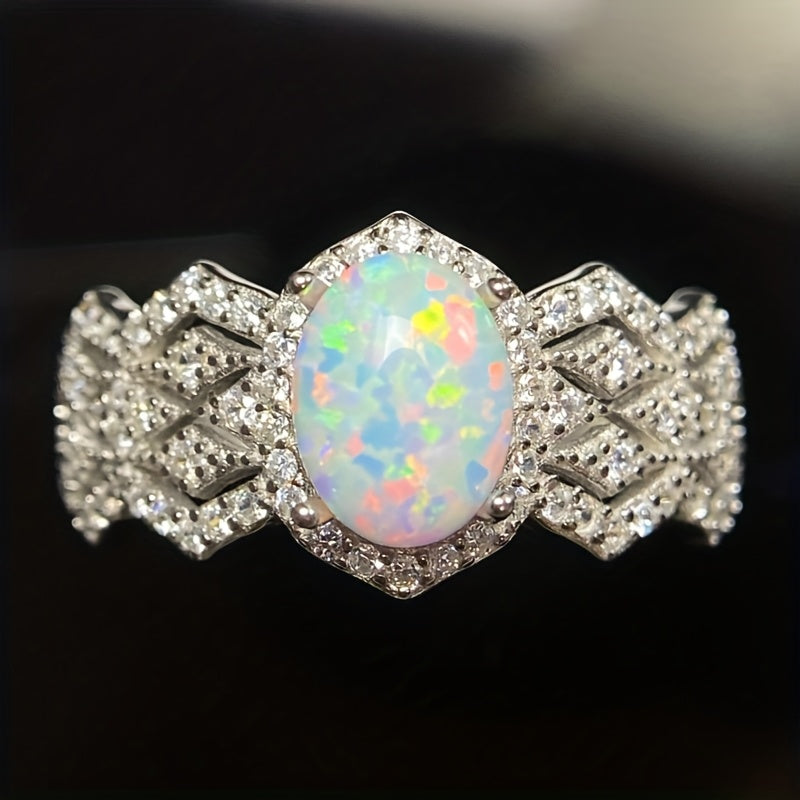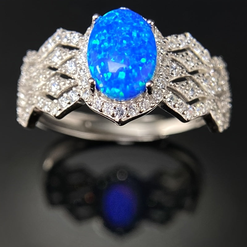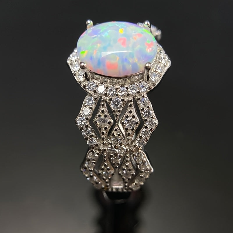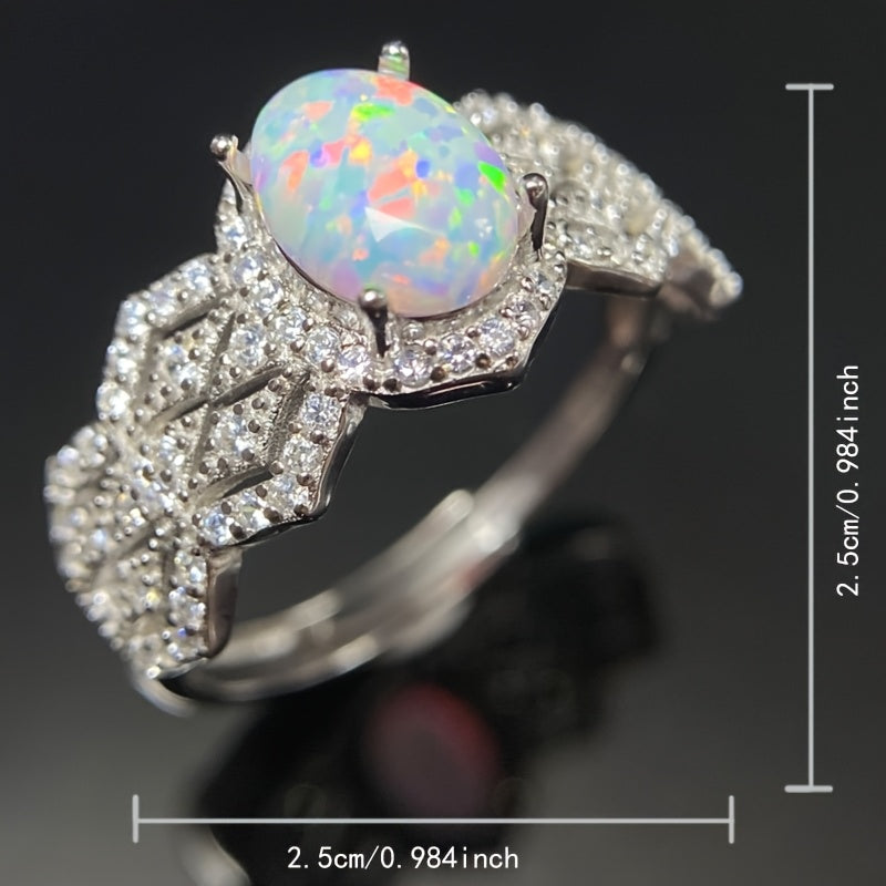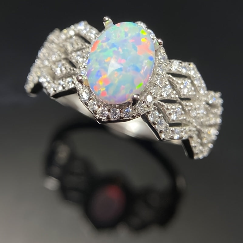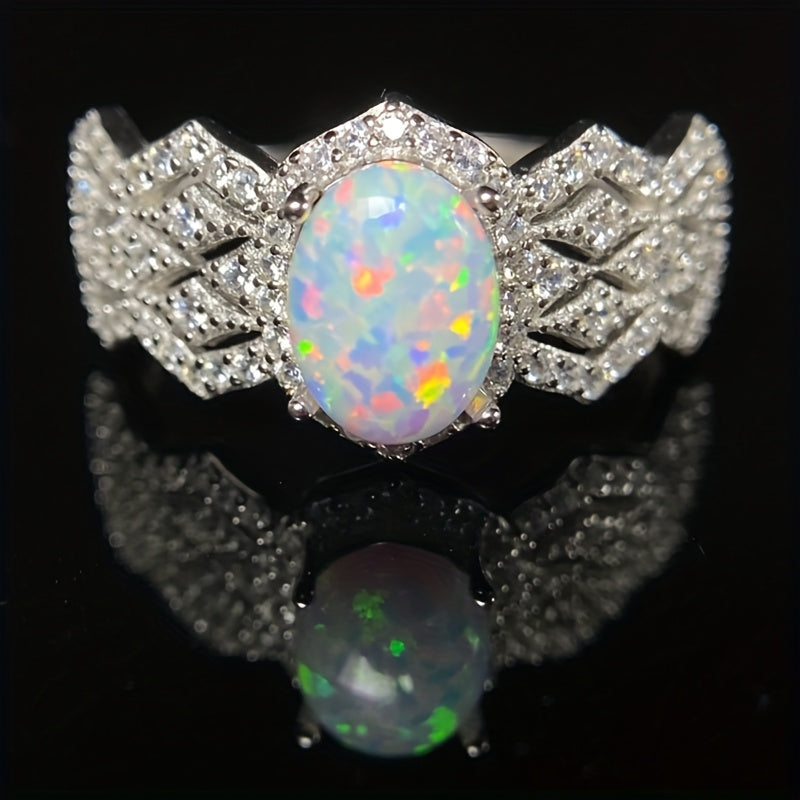 [2.6g Bat-Shaped Opal Ring] Elegant 925 Silver Bat-Shaped Ring with Oval White Opal - 2.6g, Sparkling Accents, Perfect for Engagement & Wedding Gifts, Valentine's Day Jewelry for Women, Polished Finish
