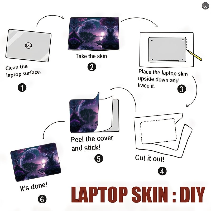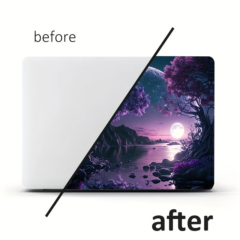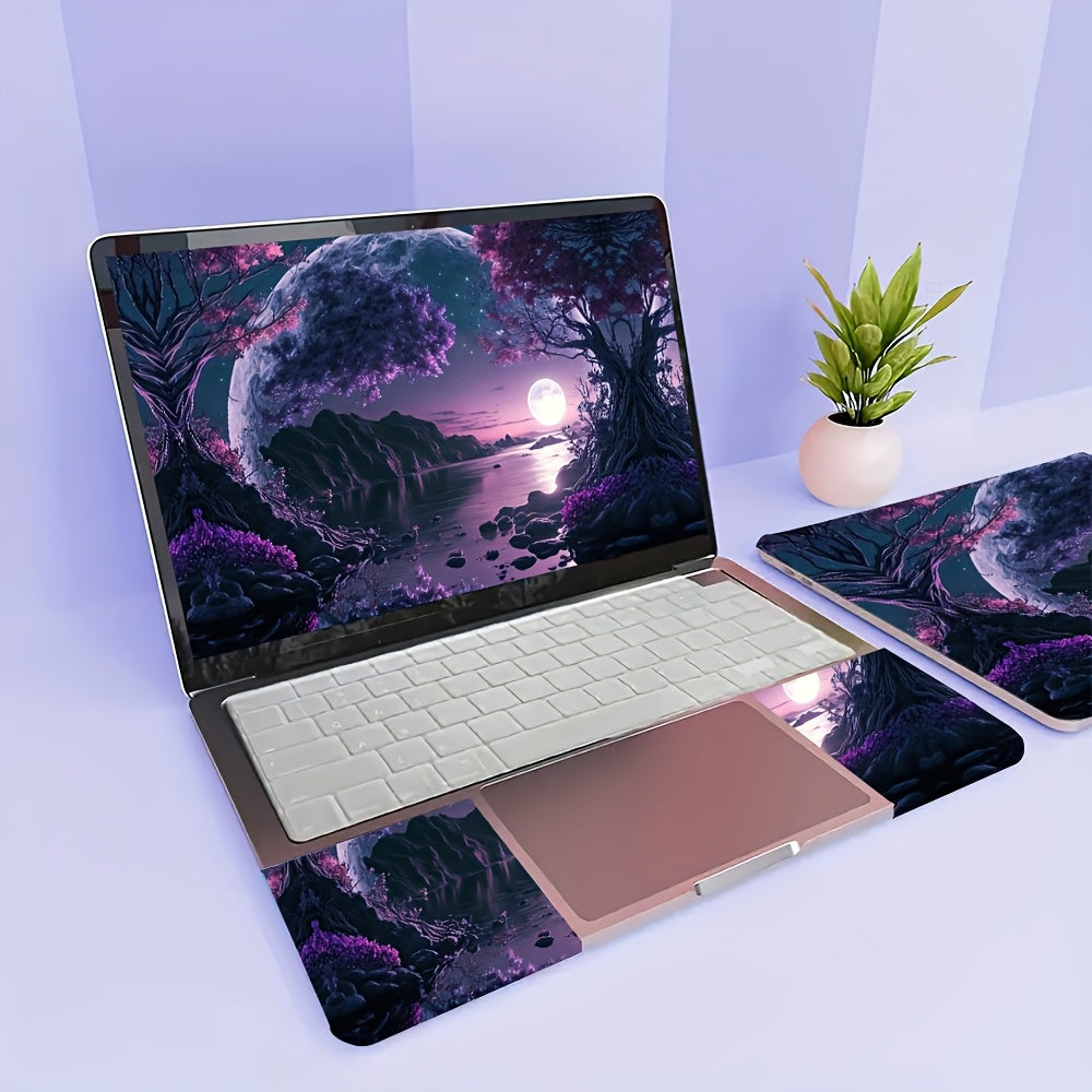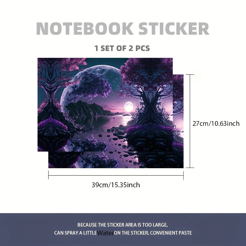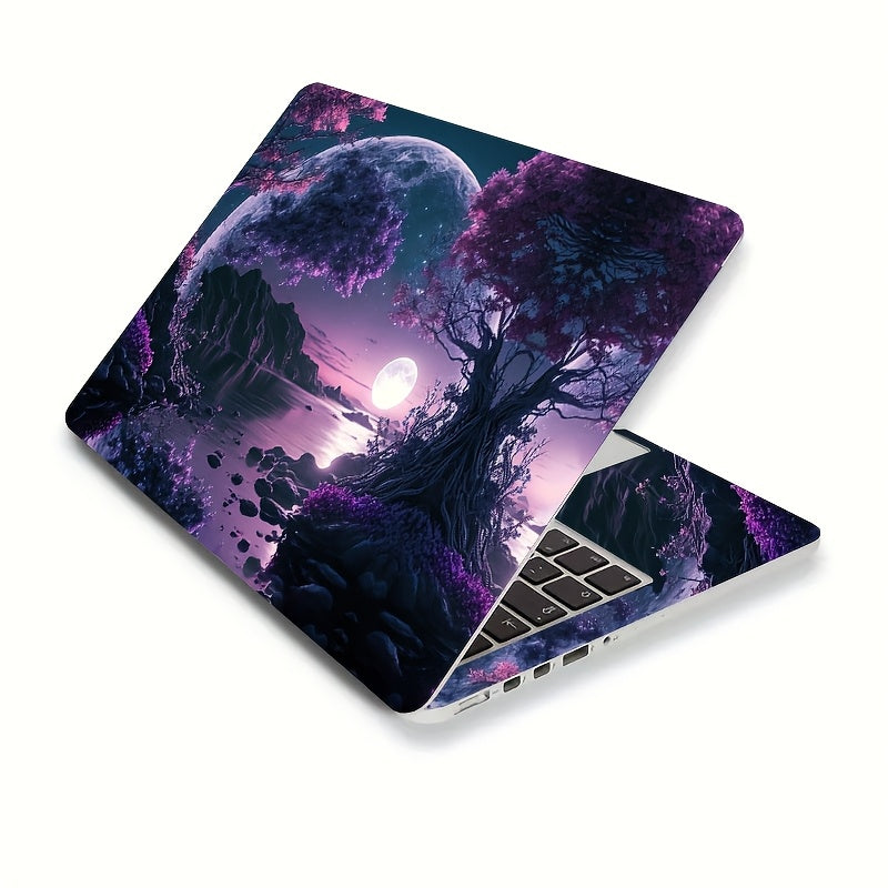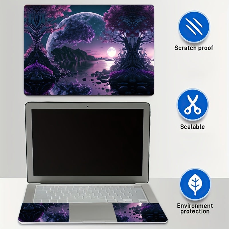 2-Pack autocollants de peau pour ordinateur portable en PVC, design de forêt sous la lune violette, résistant aux rayures, auto-adhésifs, convient aux ordinateurs de 12 à 15.6 pouces, décalcomanies créatives de haute qualité DIY