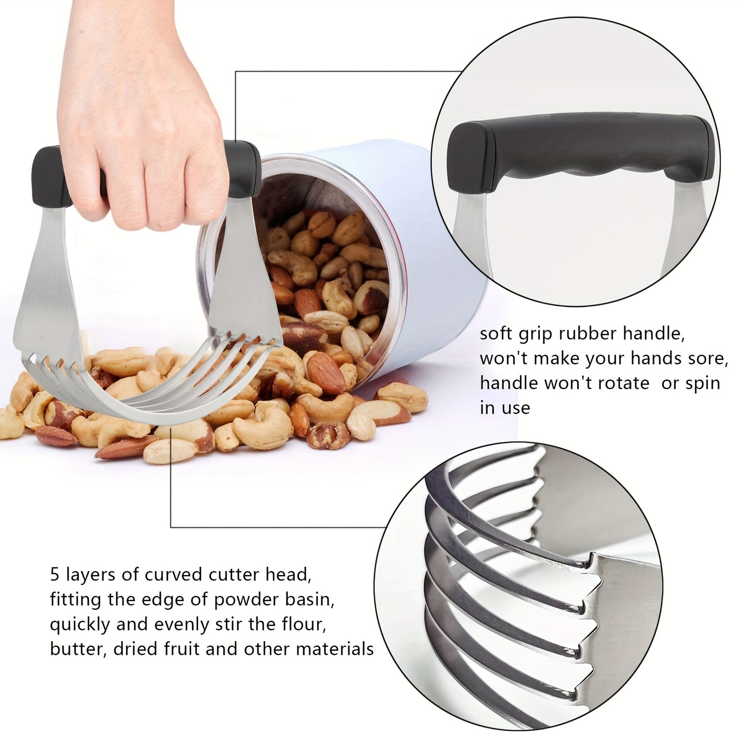 2 Pack Dough Blender Stainless Steel Pastry Cutter Heavy Duty Dough Cutter For For Pasta Pie Crust Cake Scones Black Non-Slip Handle, Dishwasher Safe
