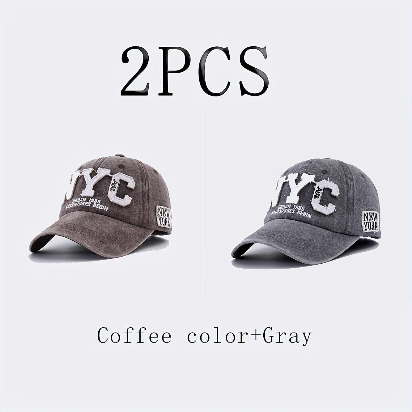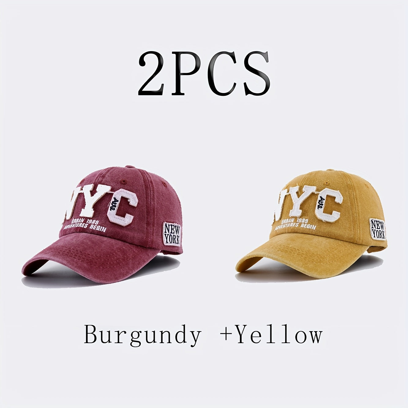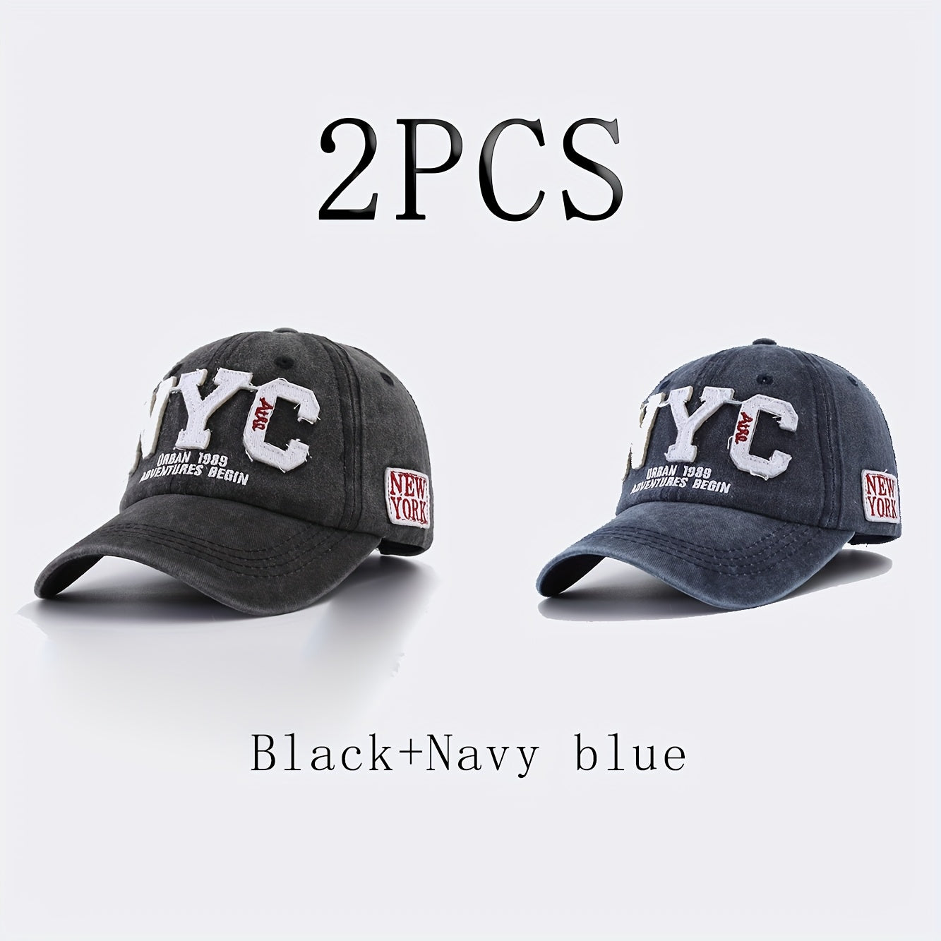 2-Pack NYC Embroidered Baseball Caps - Polyester 100%, Slight Stretch, Cool and Handsome Style - Black & Navy Blue