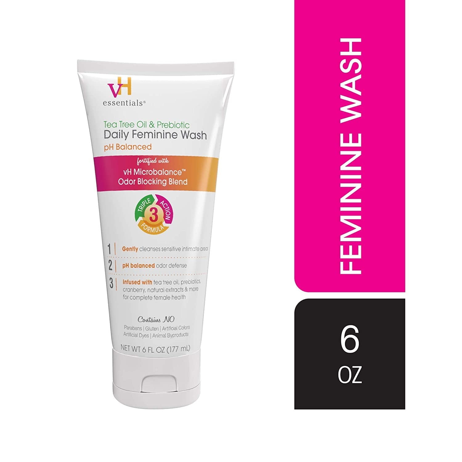 VH Essentials Tea Tree Oil Daily Feminine Wash 6 oz. Feel clean and confident with vH essentials Tea Tree Oil & Prebiotic Daily Intimate Feminine Wash. Fortified with a vH Microbalance Odor Blocking Blend, this feminine cleansing wash helps banish unwanted and unpleasant vaginal odor. Gently cleanse sensitive intimate areas with a mixture of tea tree oil, prebiotics lactic acid, lavender seed oil and Chamomile flower extract. 2 Pack VH Essentials Tea Tree Oil - Prebiotic - Daily Feminine Wash 6 oz