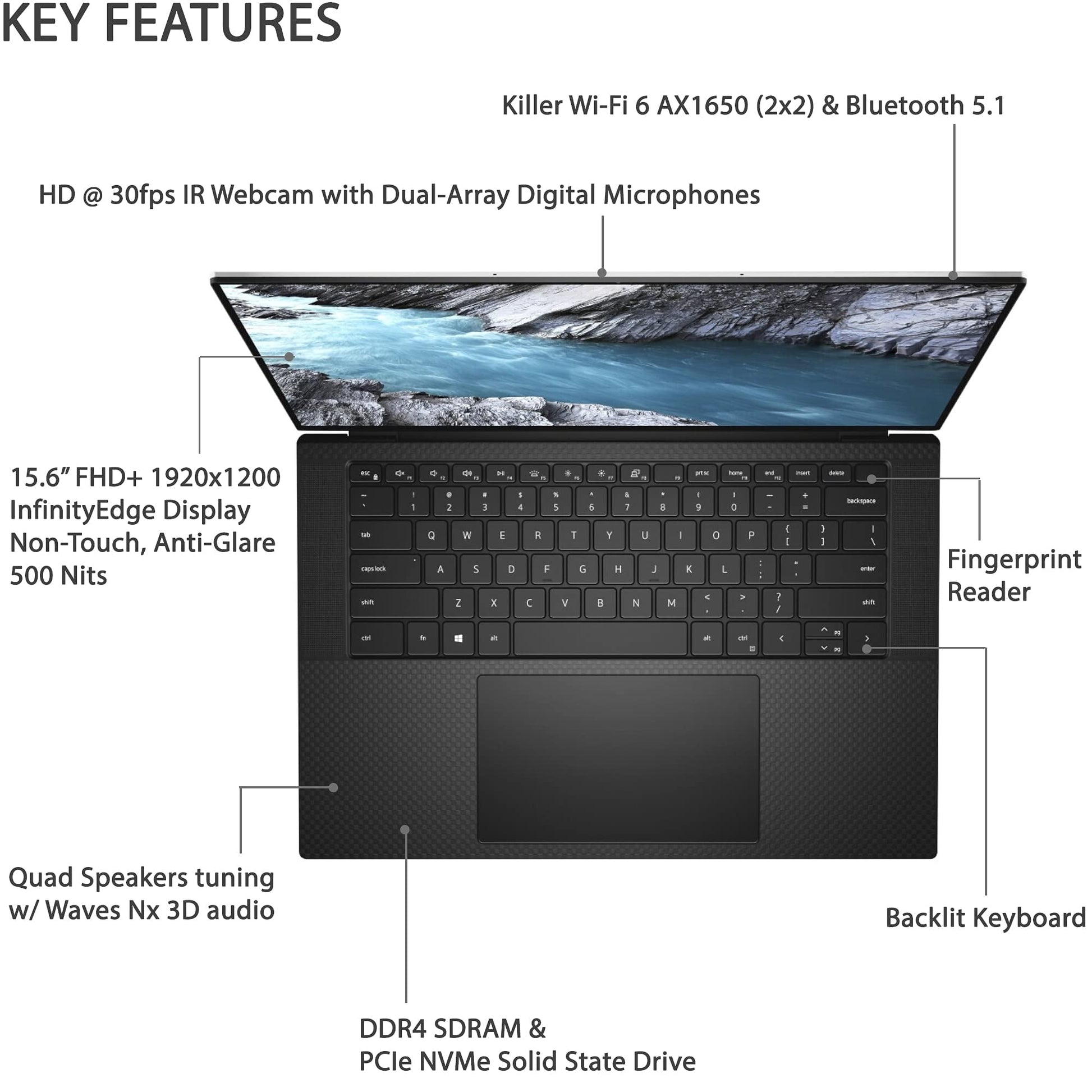 Display: 15.6" FHD+ (1920 x 1200) InfinityEdge Non-Touch Anti-Glare 500-Nit Display
