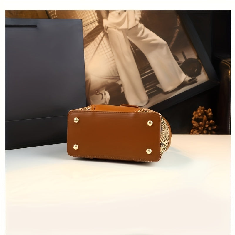 2025 New Chinese Style Carved Floral Women's Crossbody Bag - Ethnic Geometric Embossed Handbag with Adjustable Wrist Strap, Snap Closure, Deep Brown/Red, Versatile for Casual & Formal Occasions, Crossbody Purse, Sophisticated Accessory