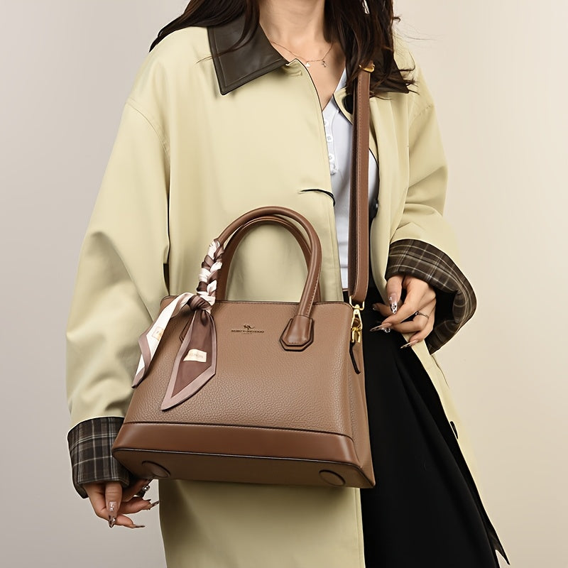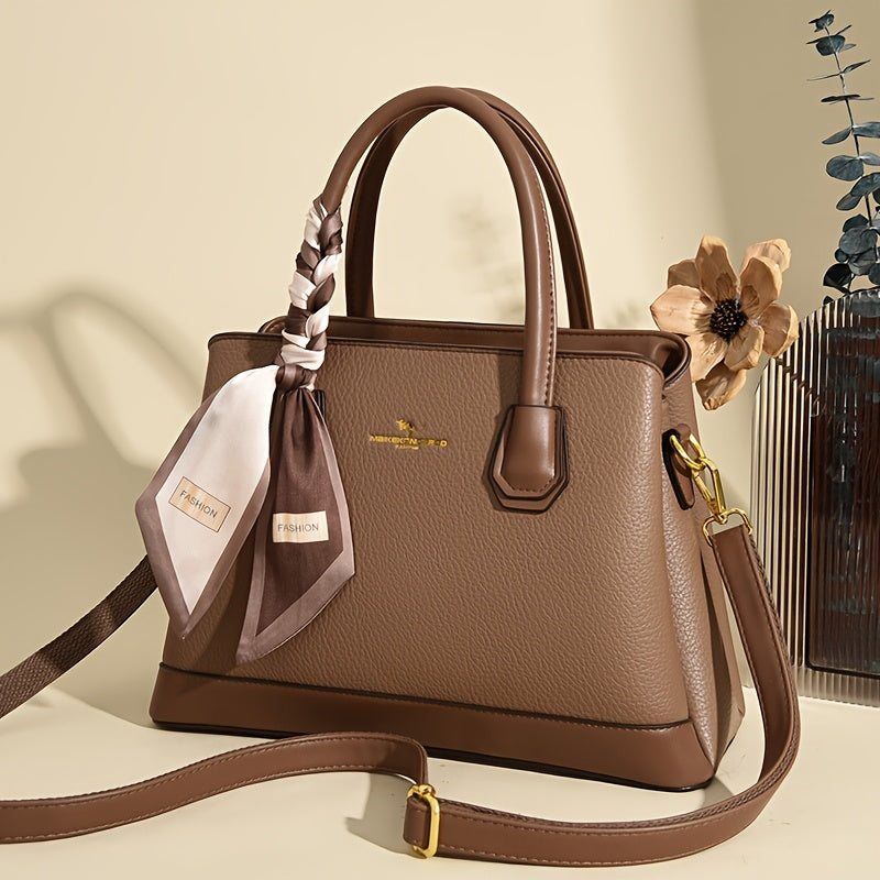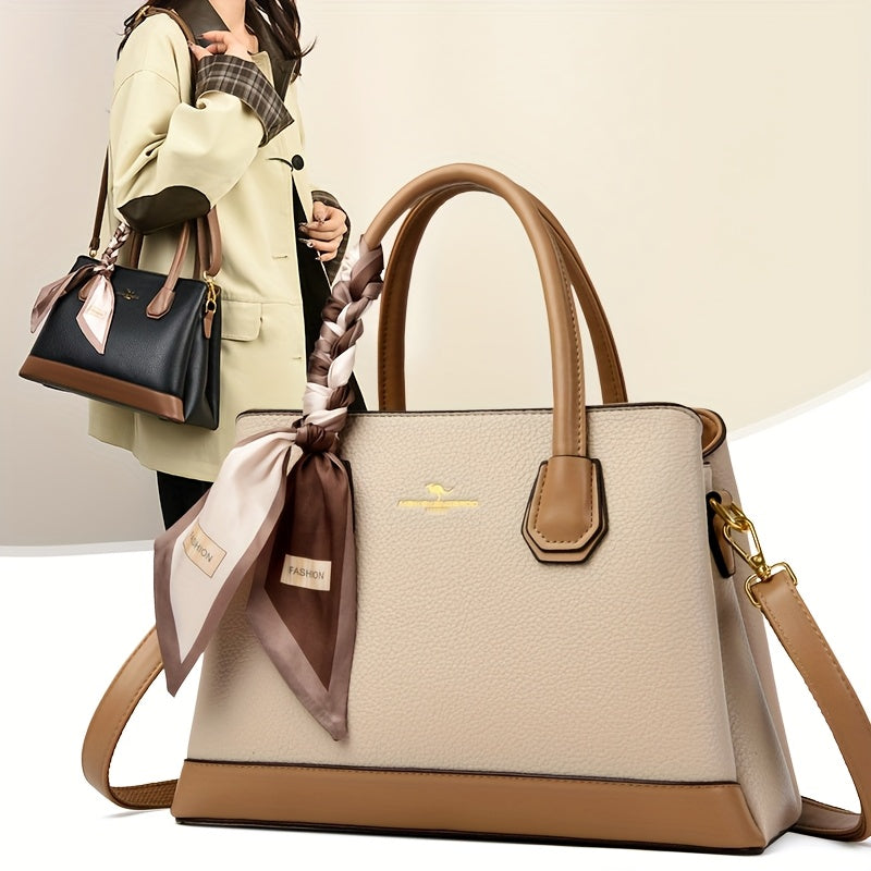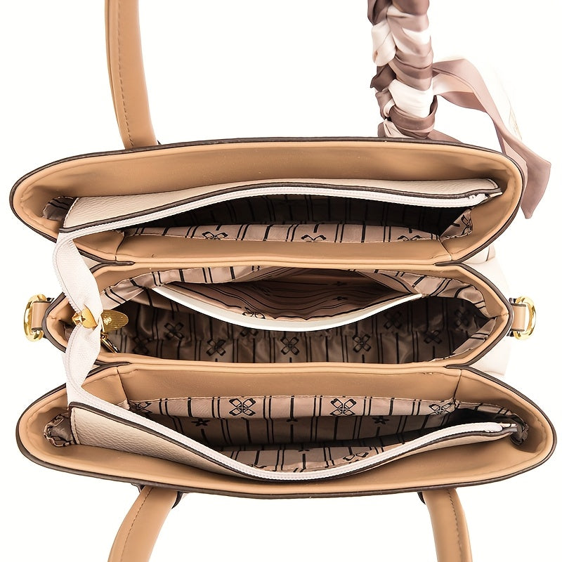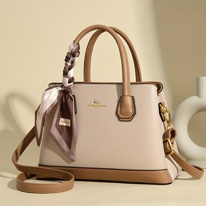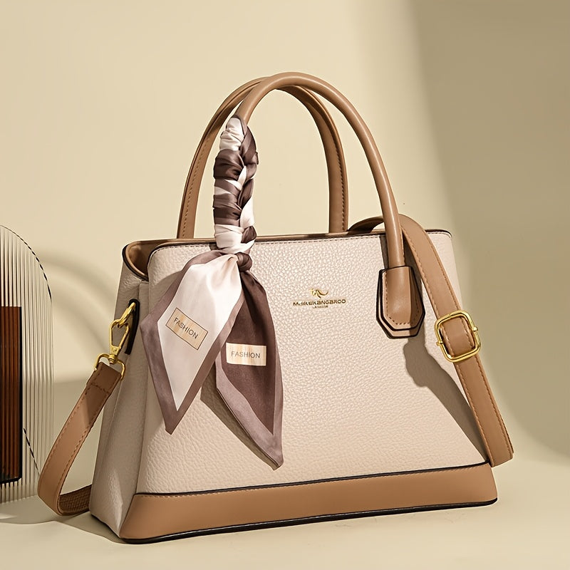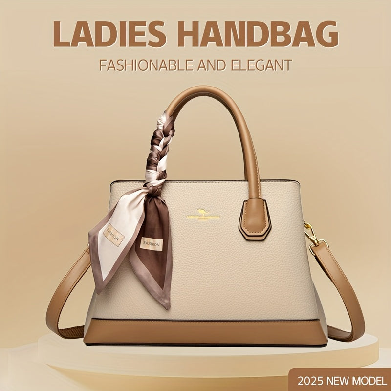 [2025 New Tote Bag] 2025 New Model Elegant Ladies Tote Bag | Large Capacity Removable & Adjustable Strap Shoulder Bag, White & Brown Design, Golden Hardware | Perfect for Work or Casual Outings