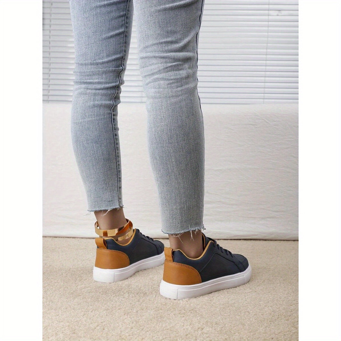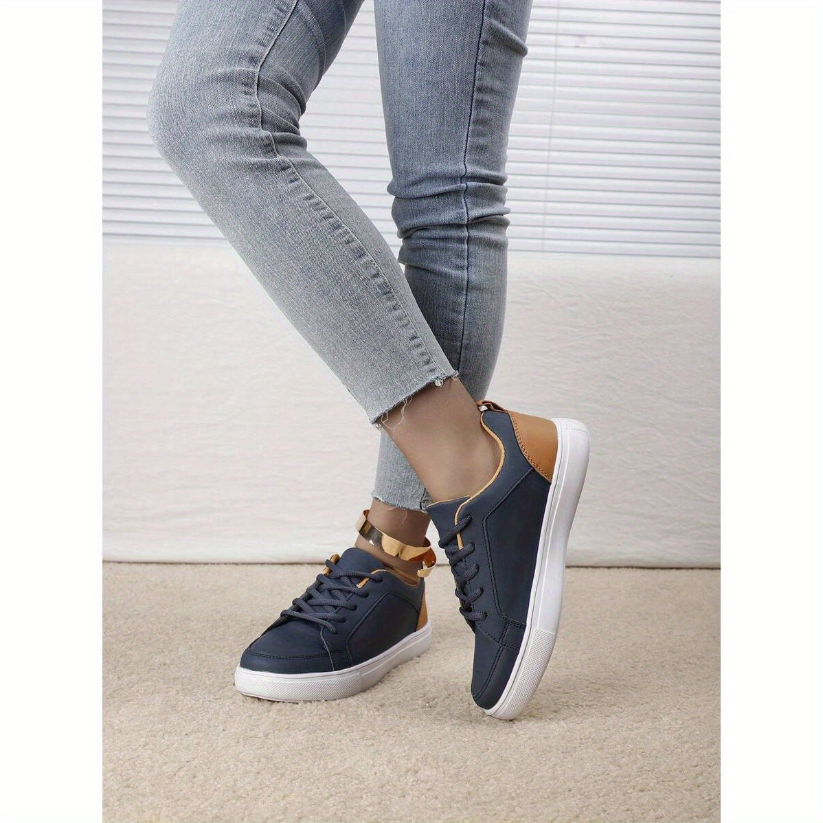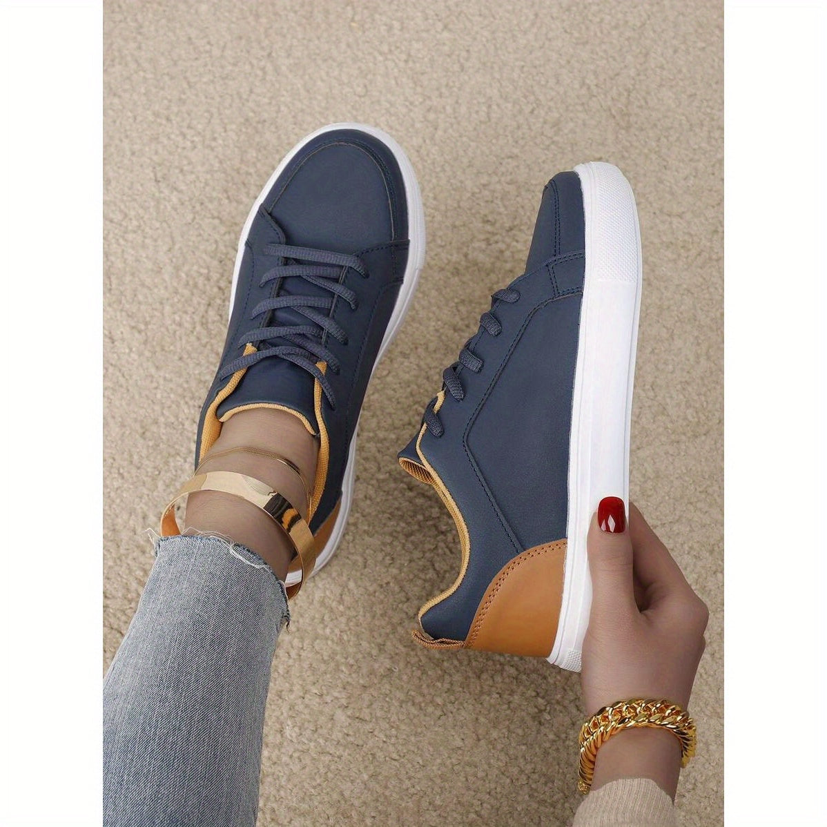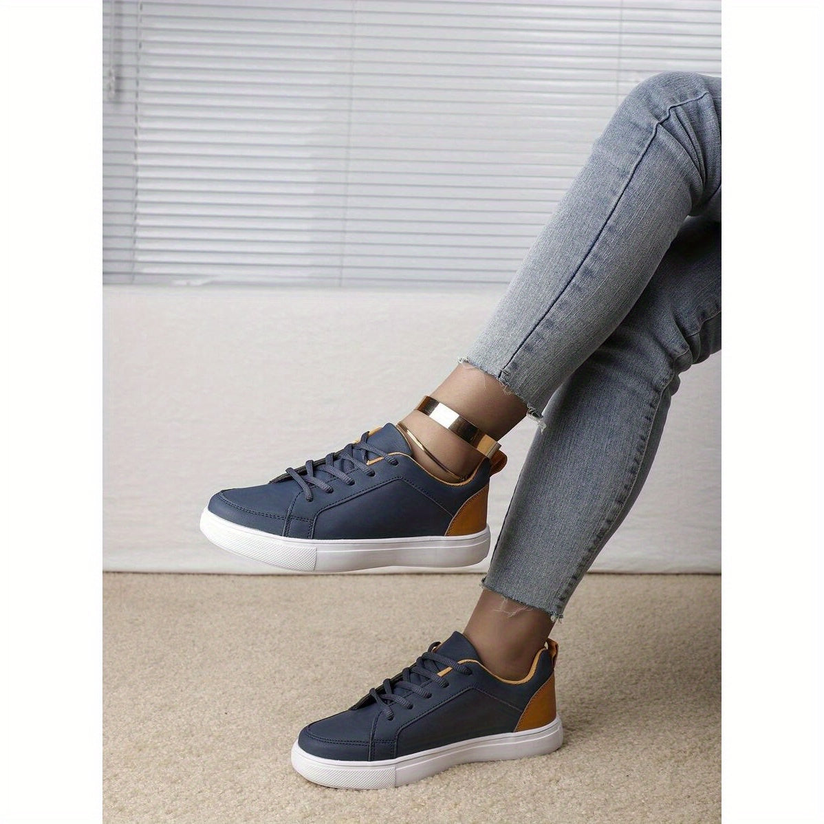 2025 New Women's Casual Skate Shoes - Blue & Orange Accent Microfiber Cover Upper, Lace-Up Flat Sole with EVA Cushion, All-Season Versatile Sneakers for Casual Attire, Sleek Sneaker Design, Lined Interior