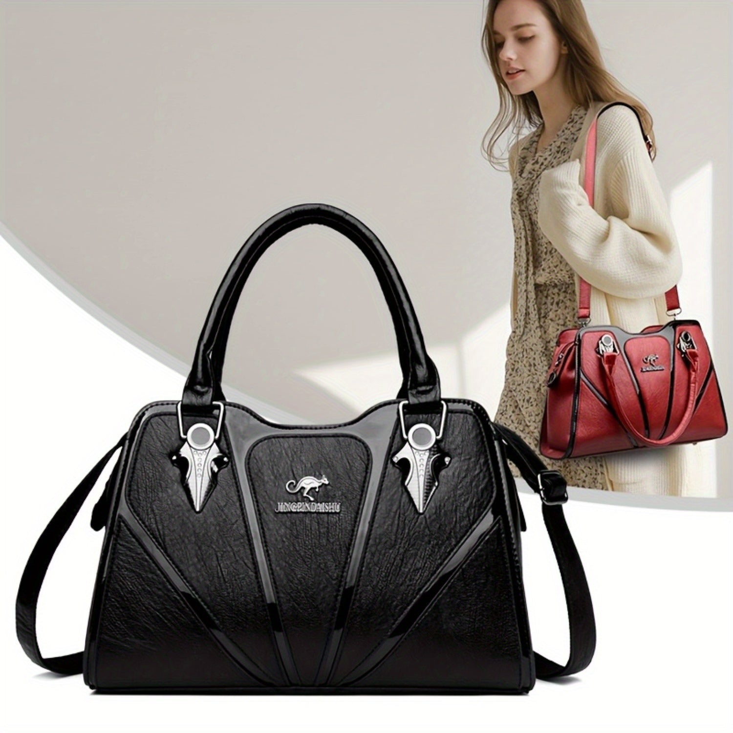 2025 New Women's Crossbody Bag with Detachable Strap - Elegant Black Geometric Design, Zipper Closure & Polyester Lining, Versatile Commuter Shoulder Bag for Daily Travel & Work, Crossbody Purse, Stylish Women's Accessory