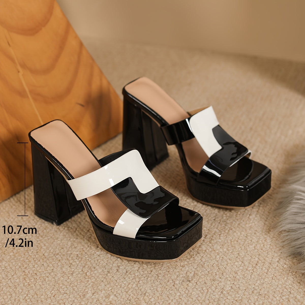 2025 Summer New High Quality Platform High Heel Sandals Women's Fashion Elegant Chunky Heel Slip-on Casual Color Block Flat Slippers for Outdoor Wear