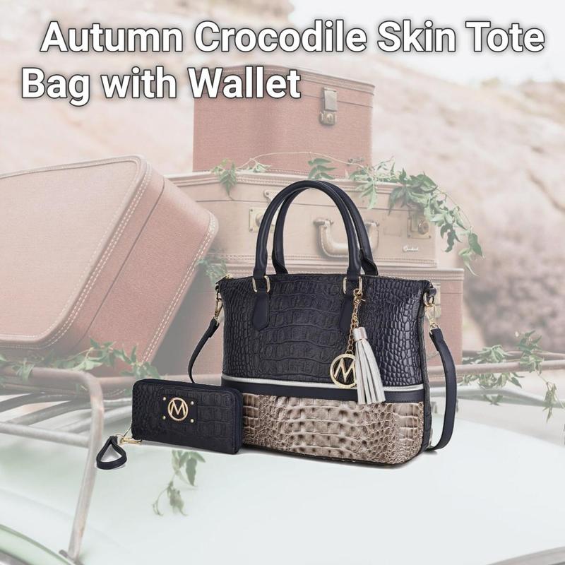 212 Main Autumn Crocodile Skin Tote Bag with Wallet