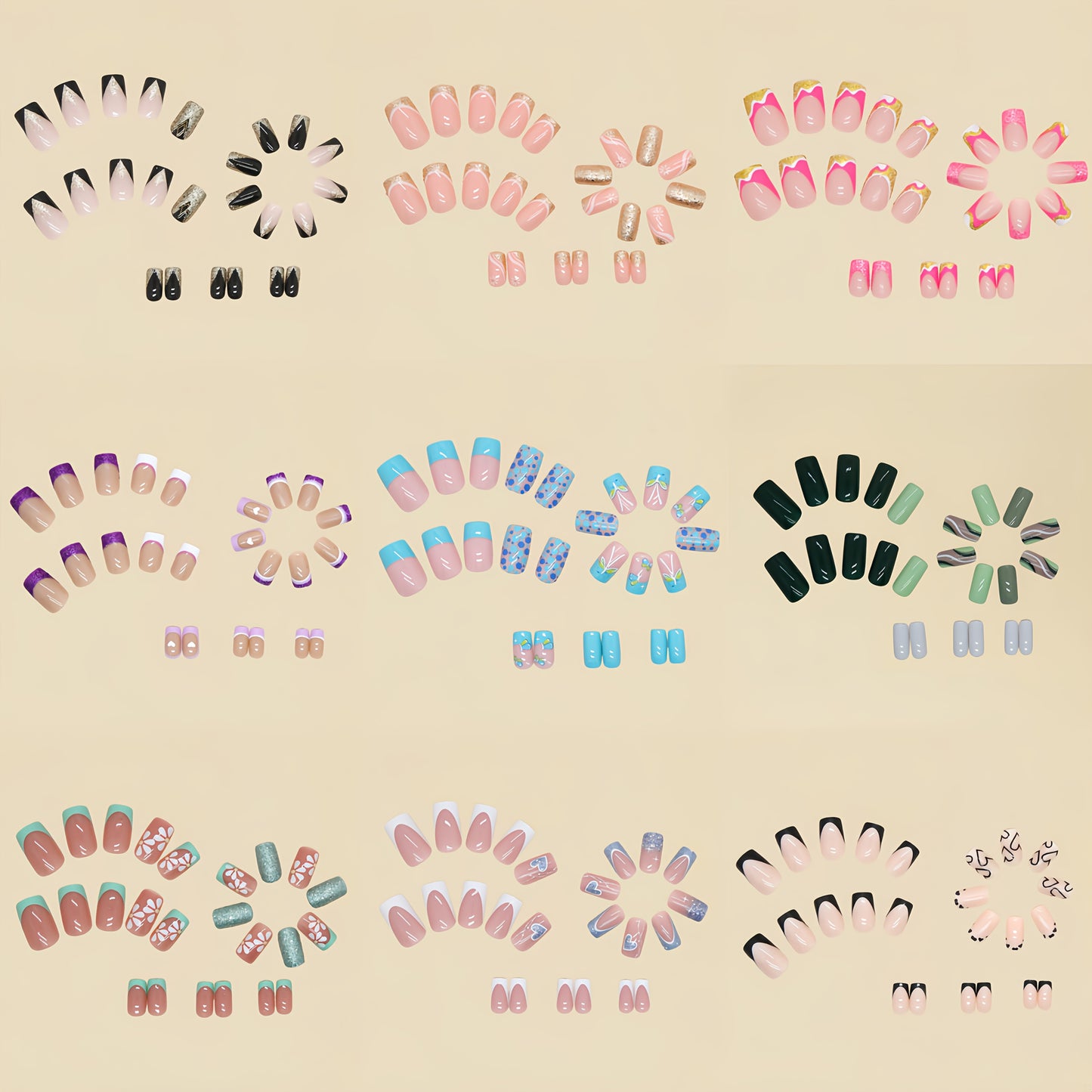 216pcs Reusable Ballet Shape Press-On Nails Set, Medium Length, Mixed Color French Ombre & Love Heart Gradient Designs, Striped Patterns, Glossy Finish Adhesive Nail Tips Combo Pack