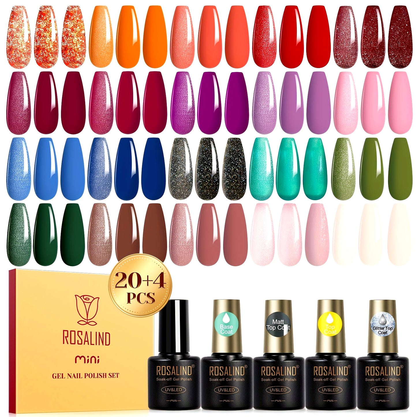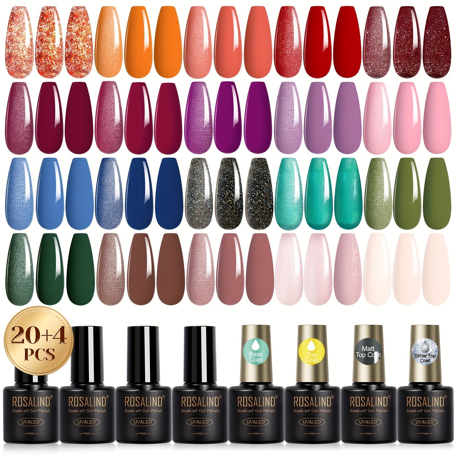 24 pcs Dark Gel Nail Polish Set 20 Pcs Color Gel Nail Polish Set Contains 4 pcs of Base Coat and Glitter Gloss Matte Top Coat Starter Gel Nail Set For All Seasons Gift For Women