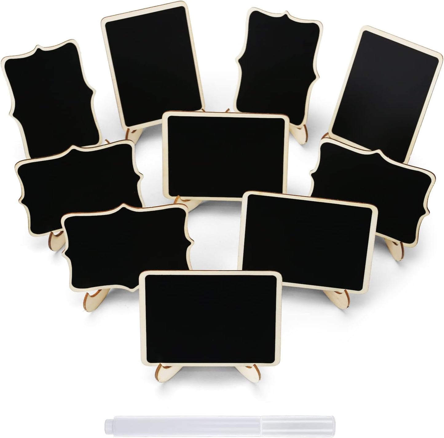 24 Pcs Small Chalkboard Labels with Easel Stand, Mini Chalkboard Signs, Wooden Blackboard for Table Numbers, Food Signs, Wedding Signs, Place Cards and Event Decoration, with 1 Liquid Chalk