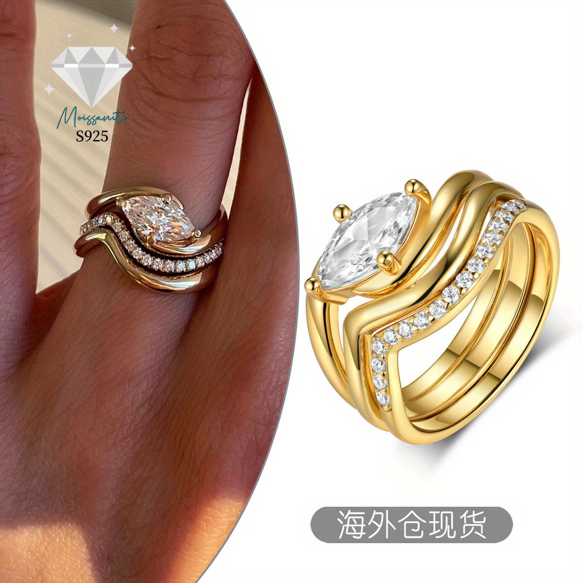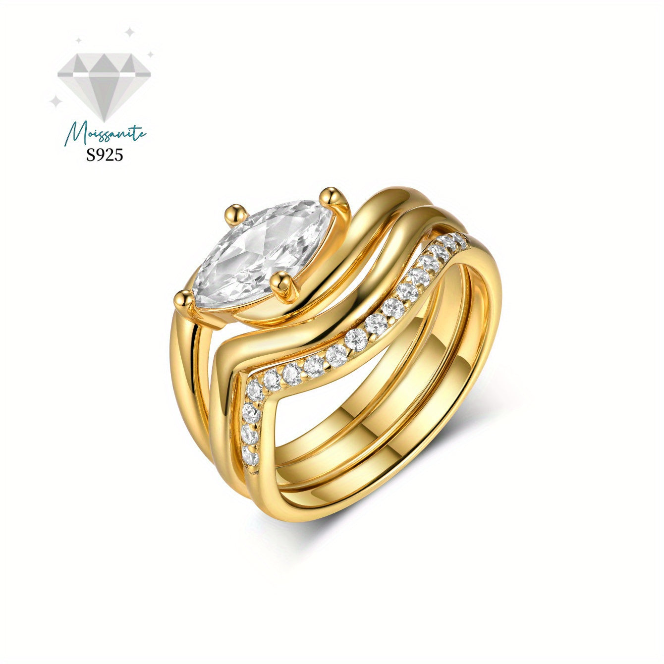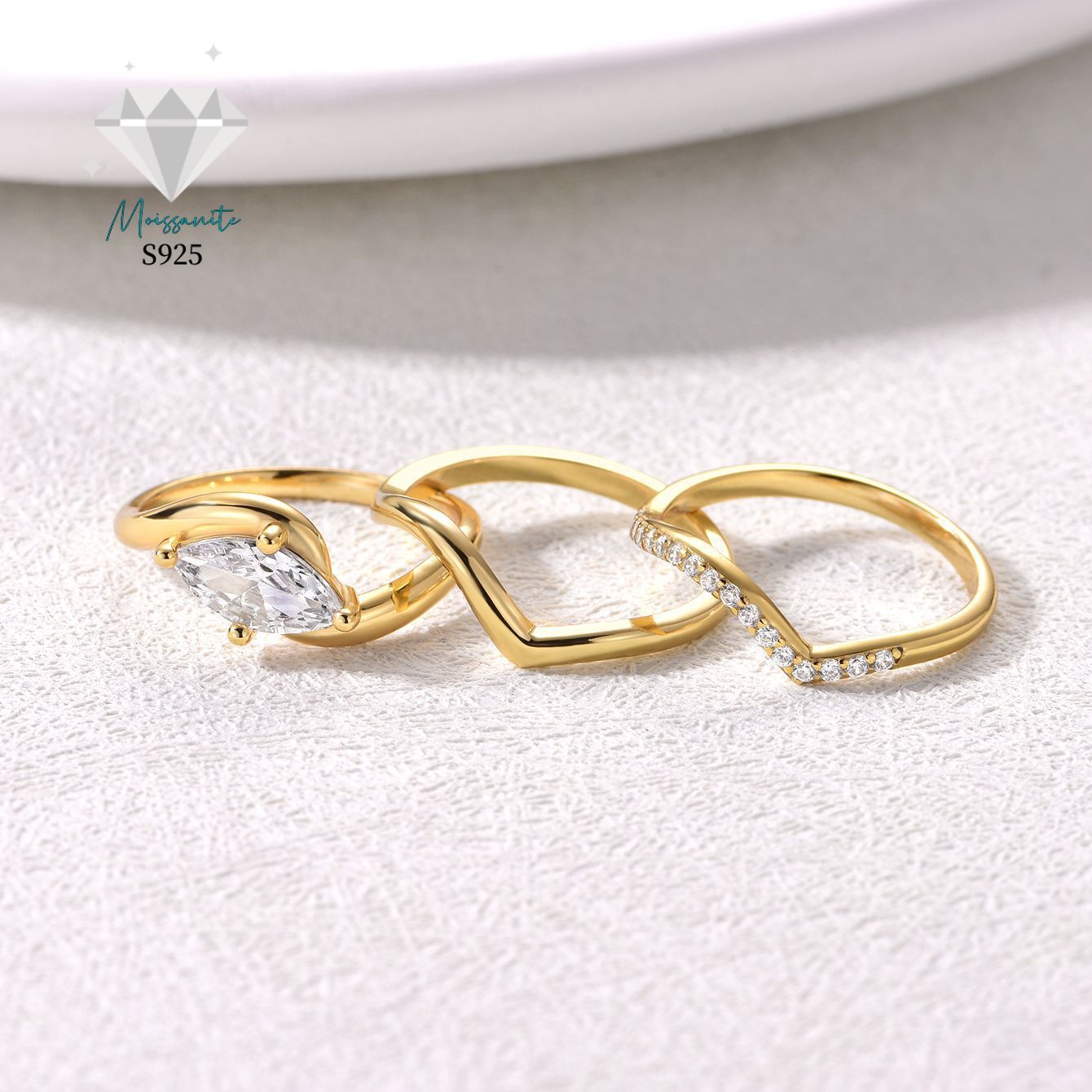 2CT Marquise-Cut Moissanite 3pcs Ring Set, S925 Sterling Silver Minimalist Stackable Jewelry, Hypoallergenic Tarnish-Resistant Wedding Bands for Women & Men, Trendy Daily Wear Rings