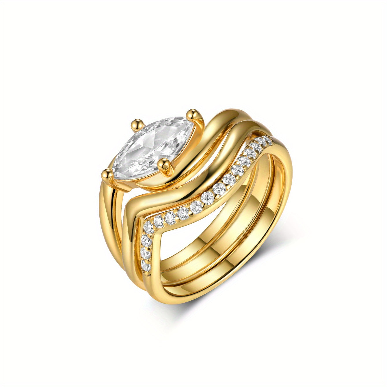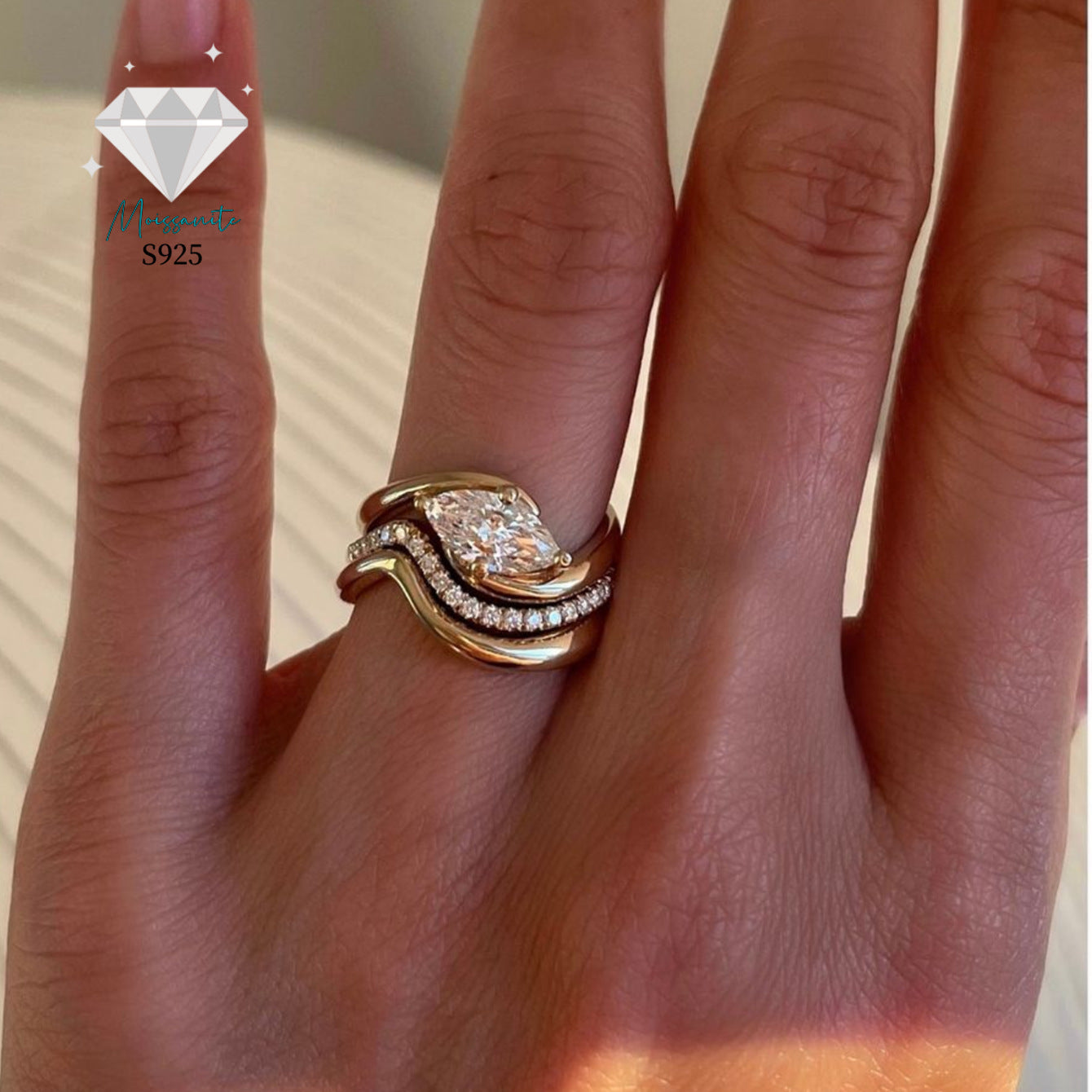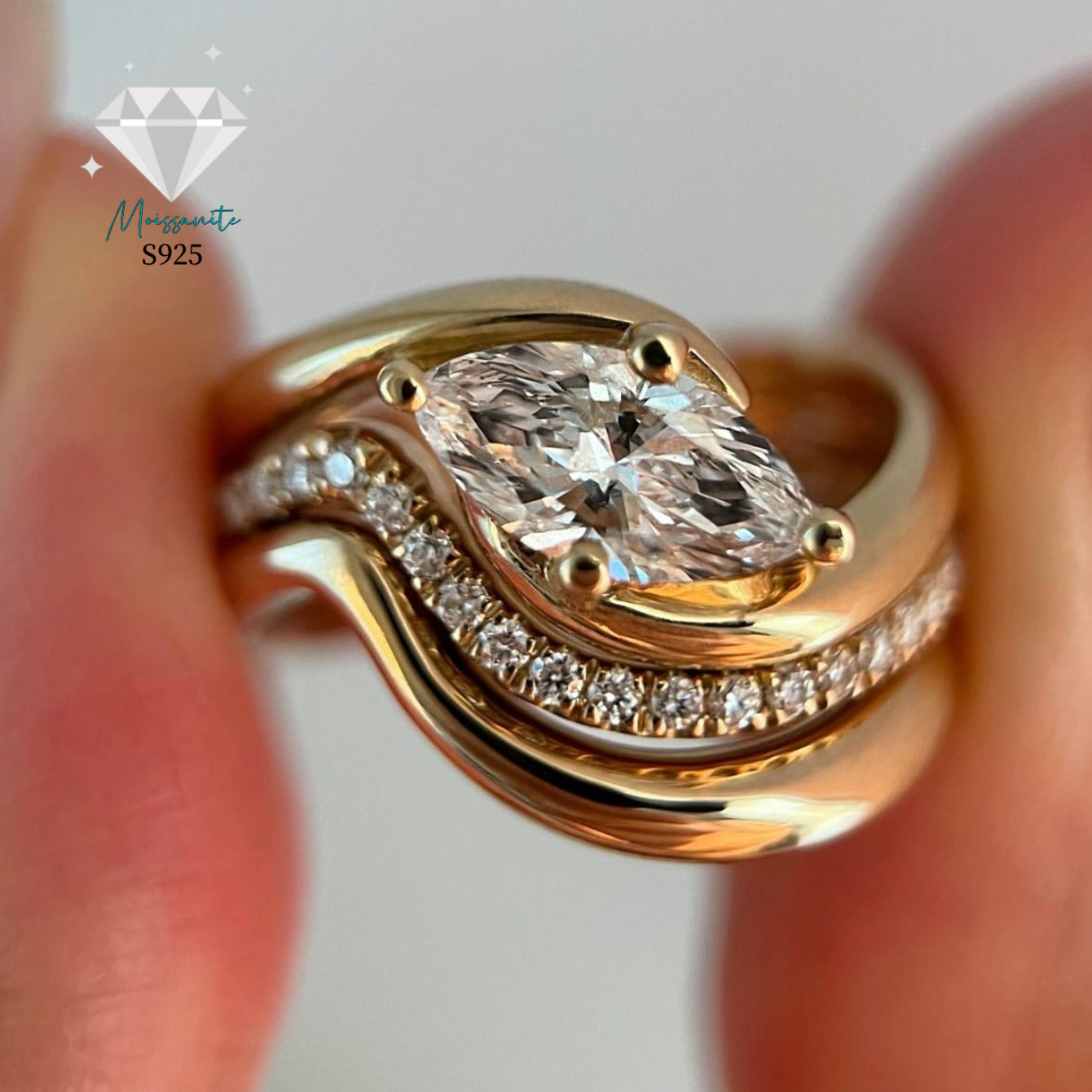 2CT Marquise-Cut Moissanite 3pcs Ring Set, S925 Sterling Silver Minimalist Stackable Jewelry, Hypoallergenic Tarnish-Resistant Wedding Bands for Women & Men, Trendy Daily Wear Rings