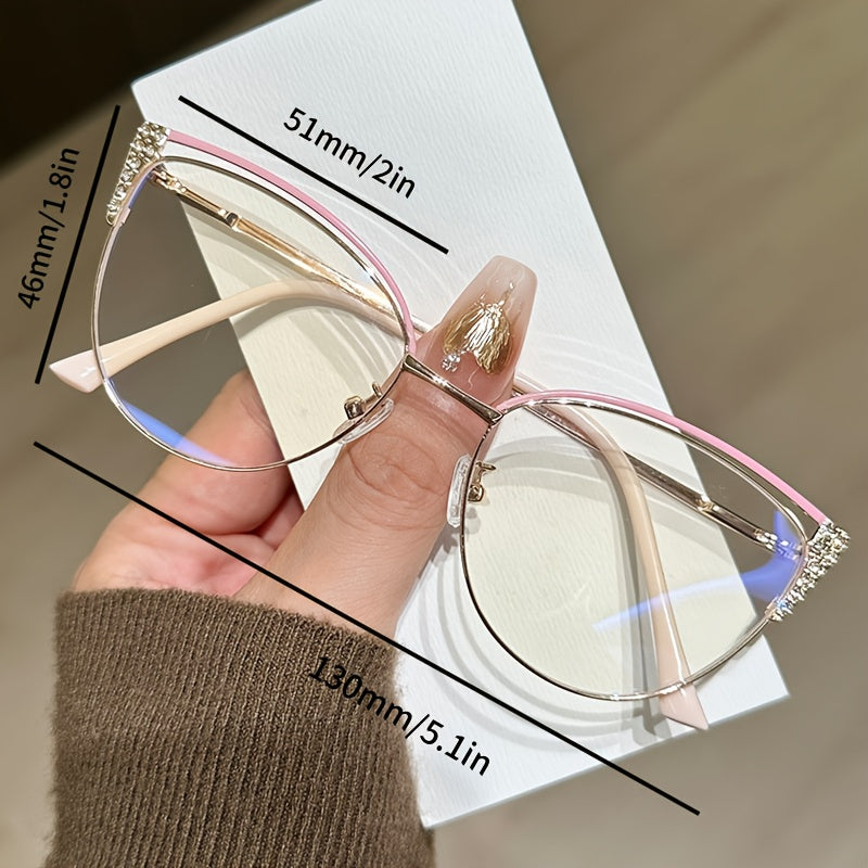 2D Flat - Women'S Cat-Eye Glasses - Metallic Frame with Rhinestone Accents, Anti-Blue Light Computer/Eye Protection, Non- Everyday & Formal Eyewear for Parties, Office, Photo Shoots - Elegant Women'S Fashion Glasses, Party Accessories, Butterflyshaped Len