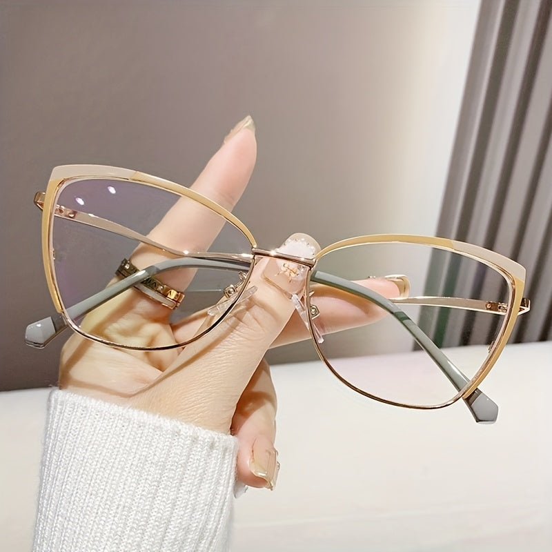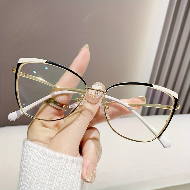 2D Flat - Women'S Elegant Cat-Eye Glasses - Anti-Blue Light Computer Glasses with Full-Rim Frame, Non- Everyday & Formal Eyewear for Women, Sophisticated Mirror-like Lens for Office, Parties, Photoshoots - Modern Minimalist Chic Glasses, Photoshoot Access