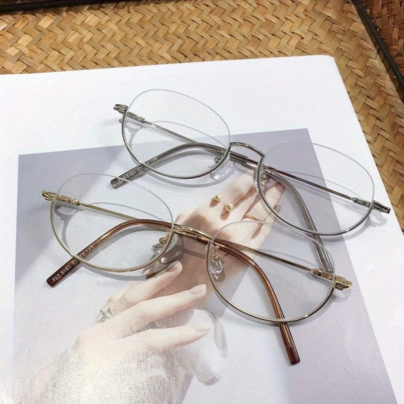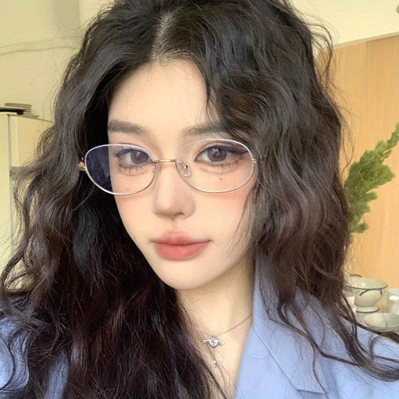 2D Flat - Women'S Elegant Glasses - Minimalist Oval Frame, Lightweight Everyday & Formal Eyewear for Myopia Correction, Compatible with Prescription Lenses - Sophisticated Women'S Fashion Glasses, Versatile Eyewear, Korean Fashion Style, Durable Eyeglasse