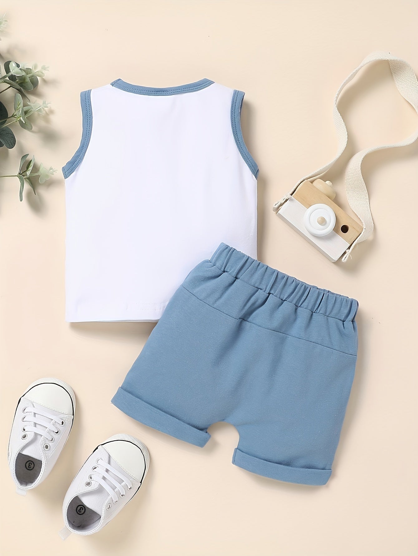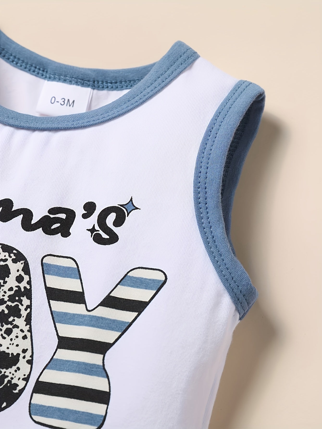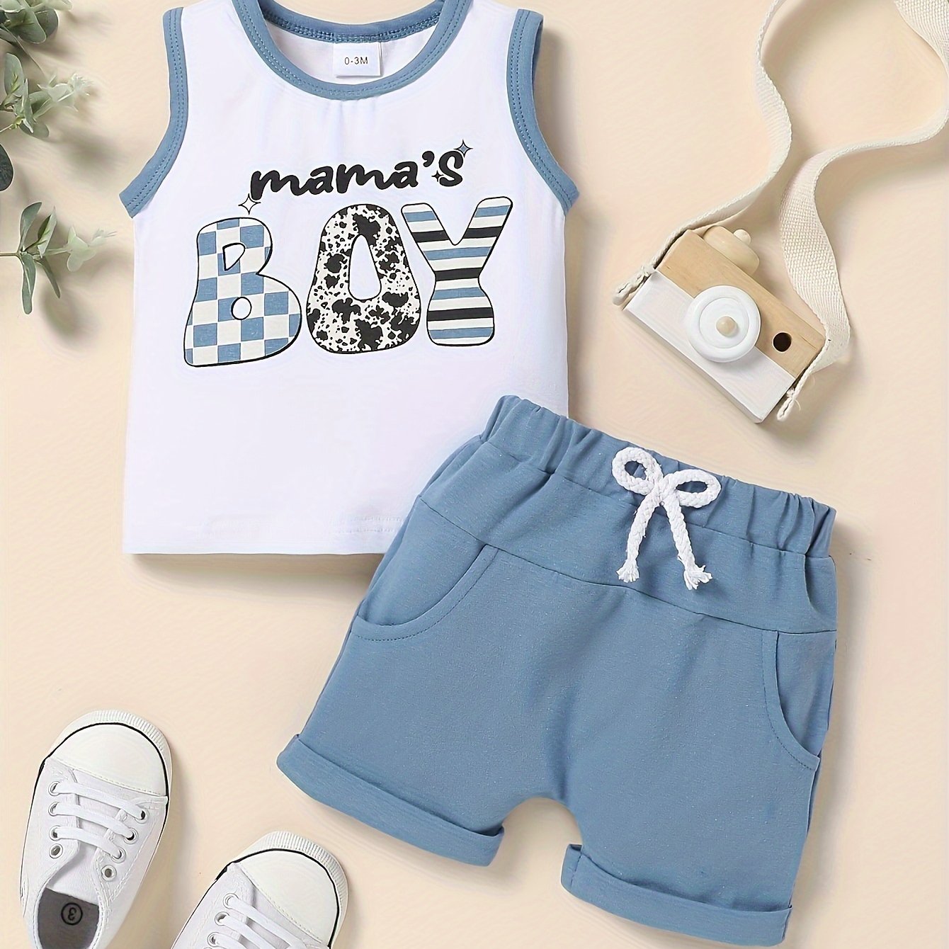 2PC Preschool Boys Summer "Mom's Boy" Alphabet Printed Tank Top+Casual Shorts Set