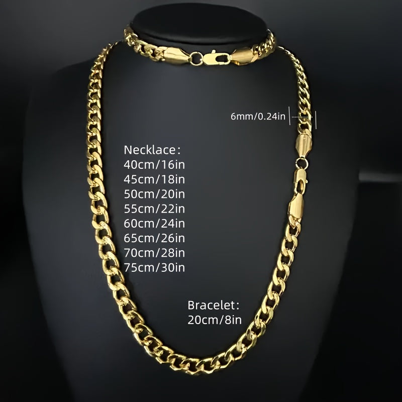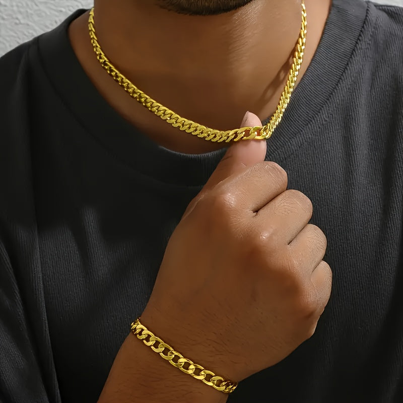 2pcNK Set Classic Golden Chain Necklace Bracelet Set High Quality Titanium Steel Material Necklace Men's Accessories European and American Chain