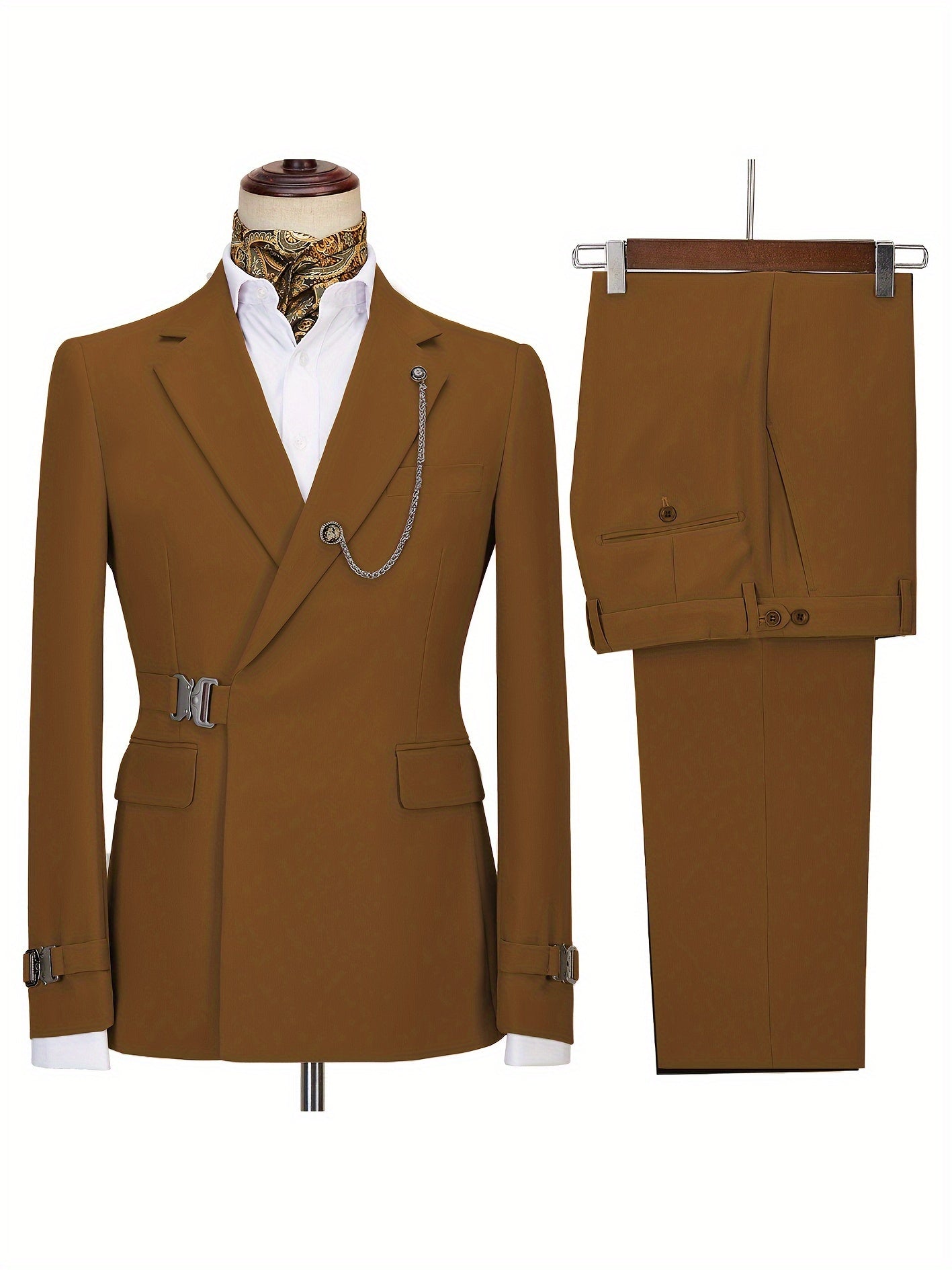 2pcs Adjustable Waist Men's Suit - Suitable for Party, Dating, Wedding
