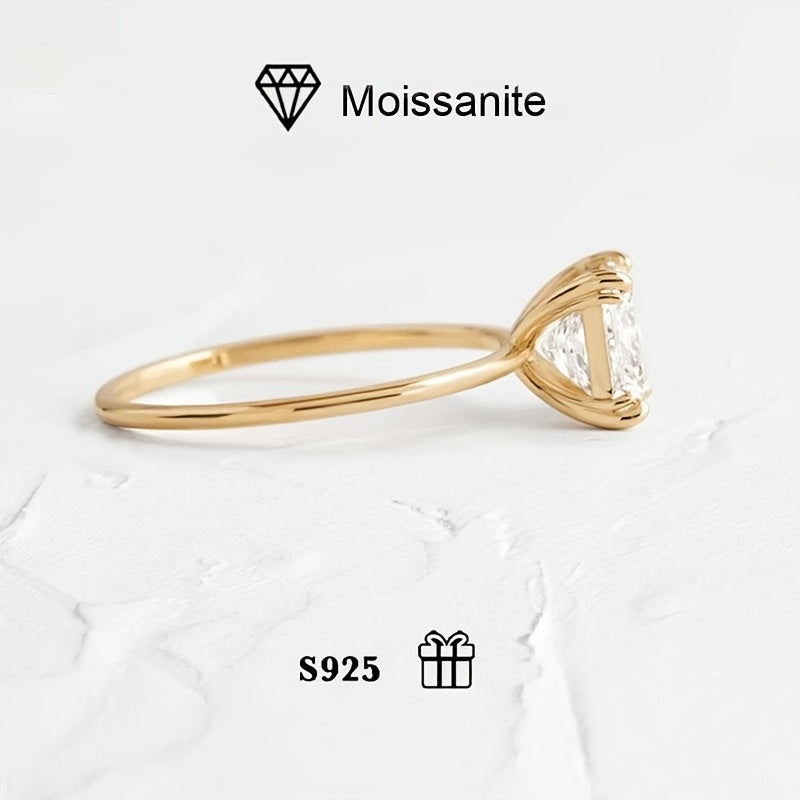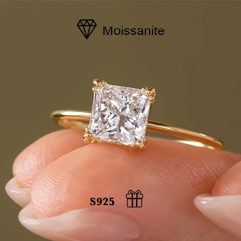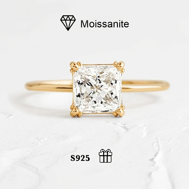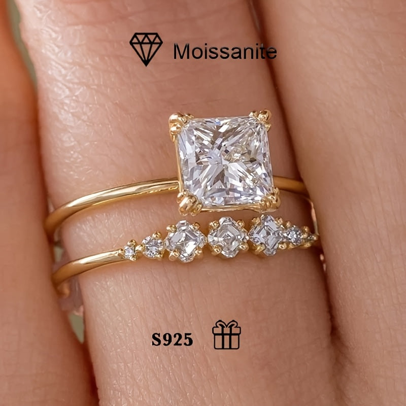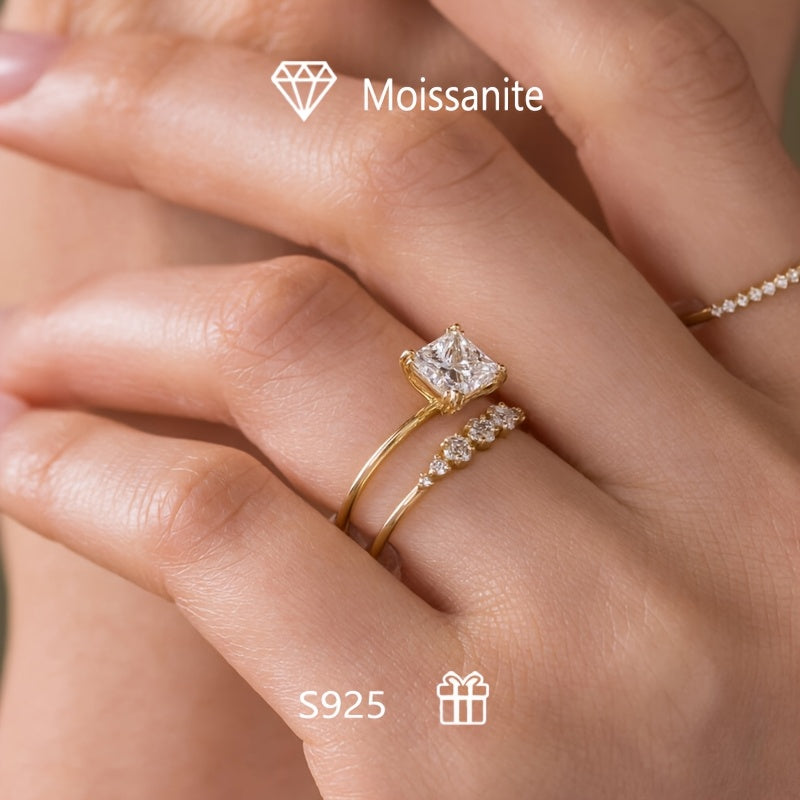 2pcs Approx. 4.3g Low Allergy s925 Silver 2ct Princess Square Moissanite Ring Women's Vintage Stackable Set Ring Men's Gift for Wife Exquisite Gift Box Packaging