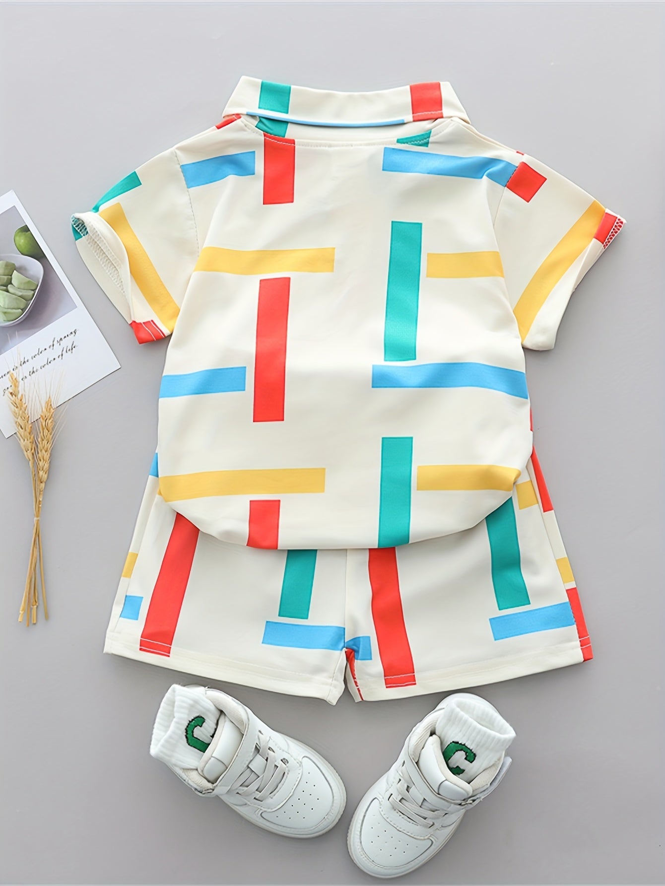 2pcs Baby's Color Clash Block Print Golf Shirt & Casual Shorts, Toddler & Infant Boy's Clothing Outdoor Set For Spring Summer