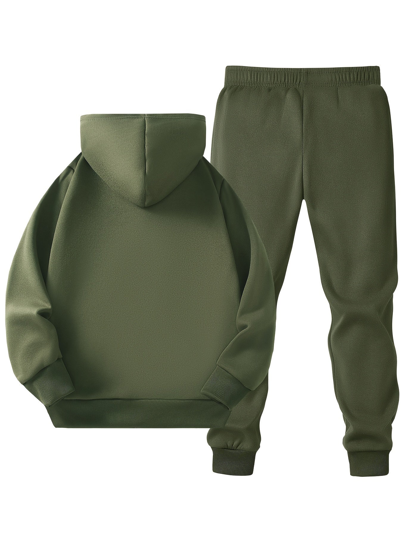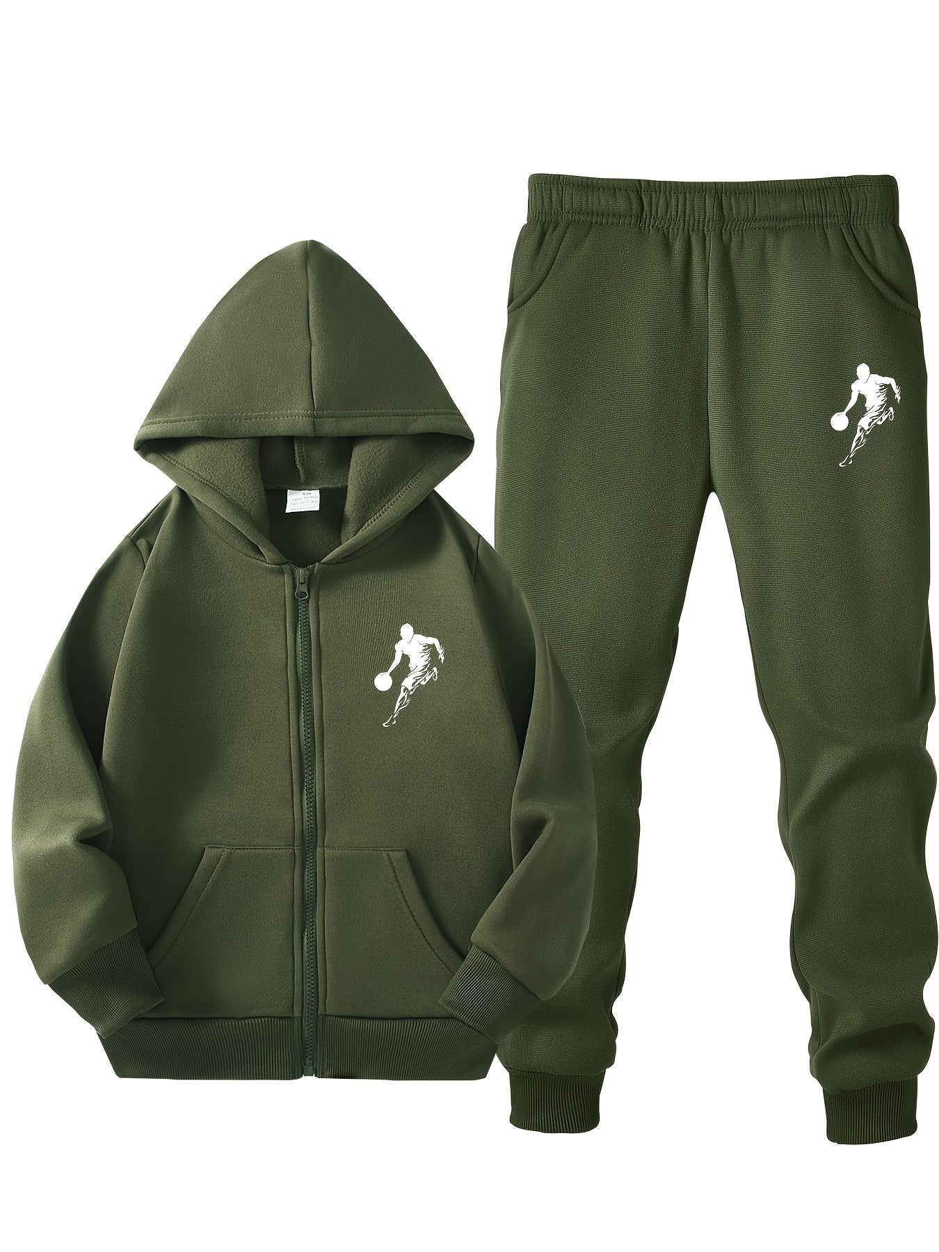 2pcs Boys' Cool Basketball Player Print Hoodie & Jogger Set - Sleek Black, Polyester, with Zip & Pockets, Ideal for Everyday & Sports Wear, Perfect for Outdoor