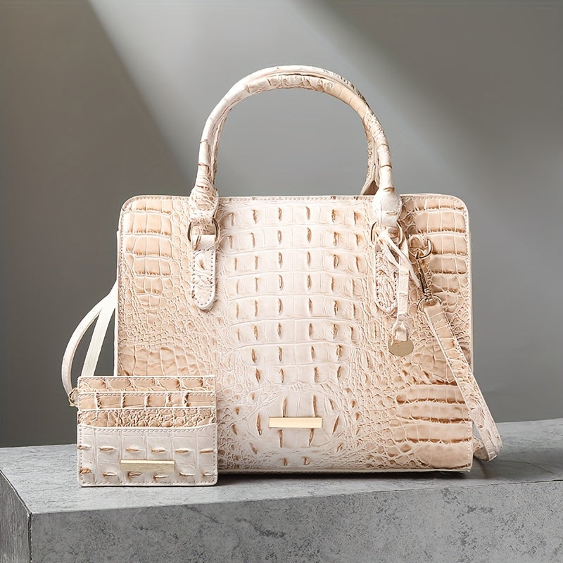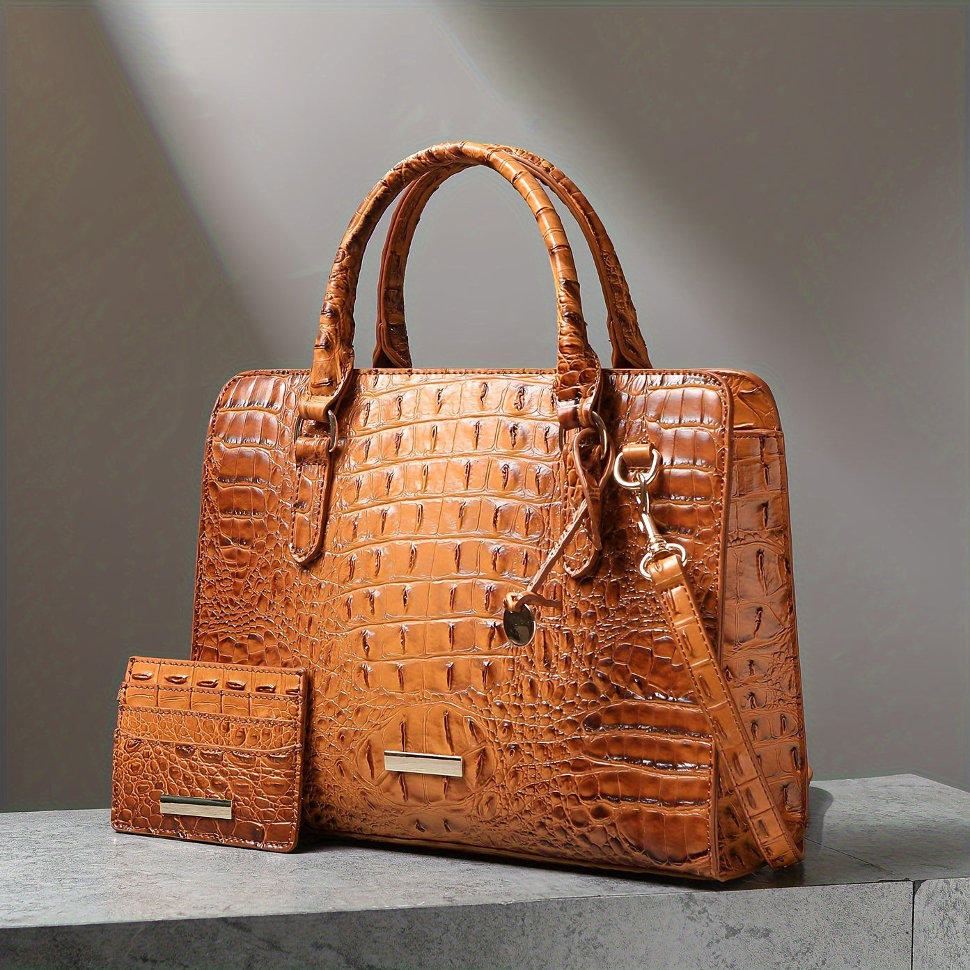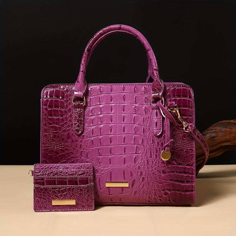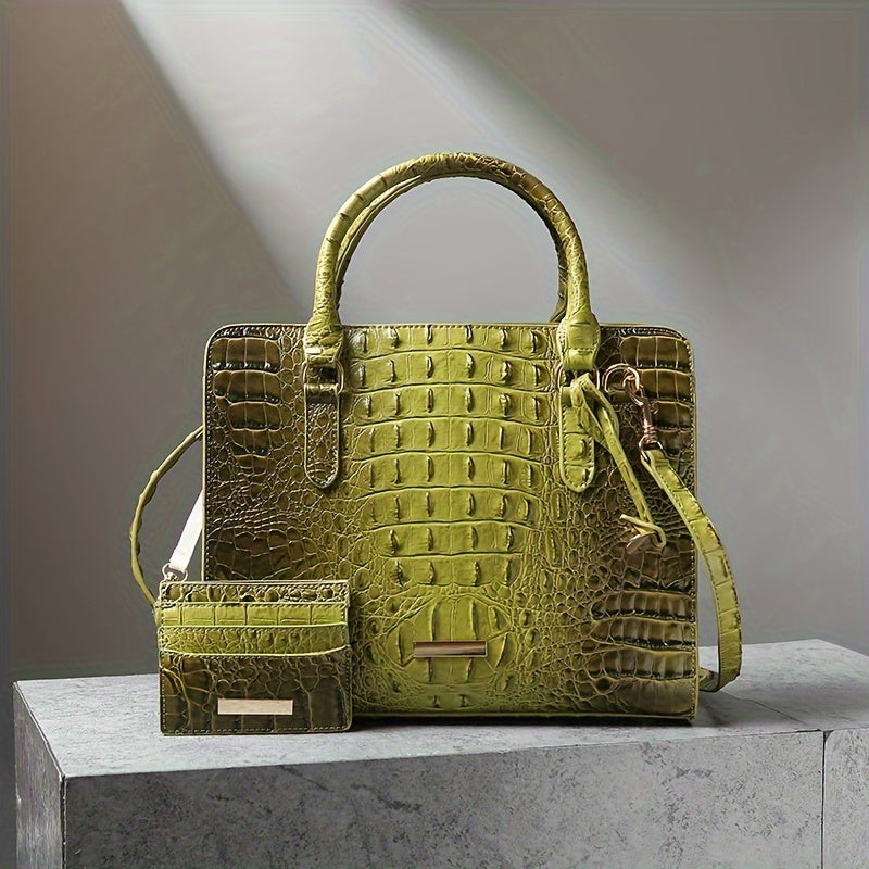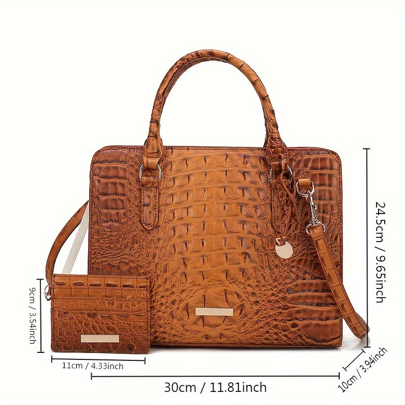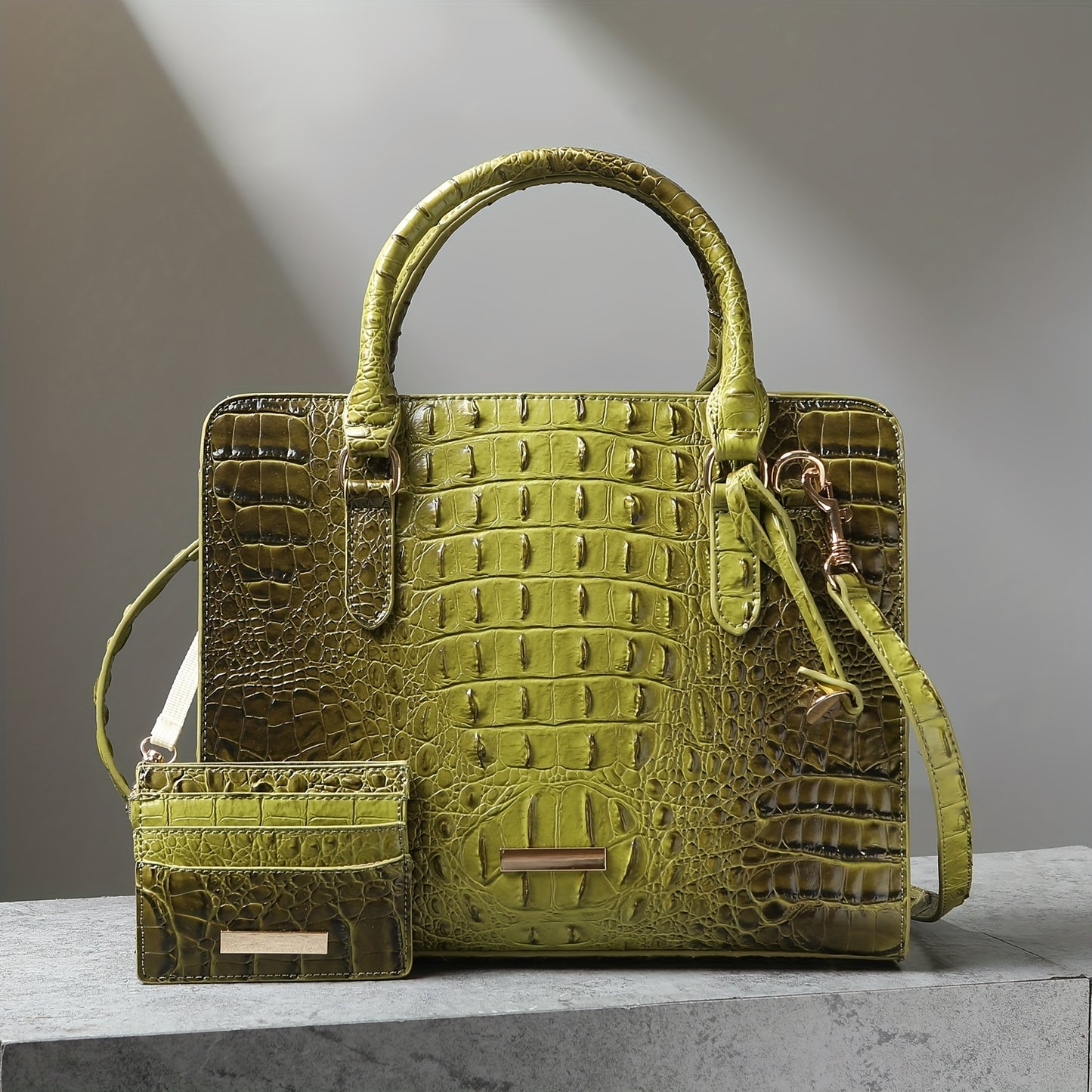 2pcs Chic Crocodile Pattern Faux Leather Set - Spacious Interior, Trendy Shoulder Strap, Fashionable Clutch Purse, Stylish Accessory for Work, Daily Life, and Special Occasions with Premium Quality, Durable and Stylish Design