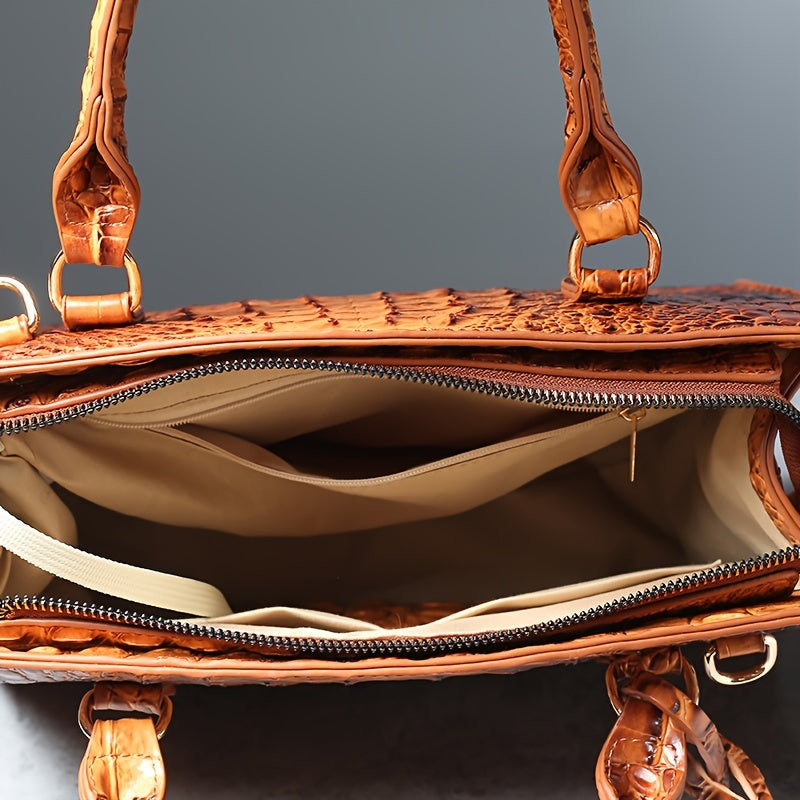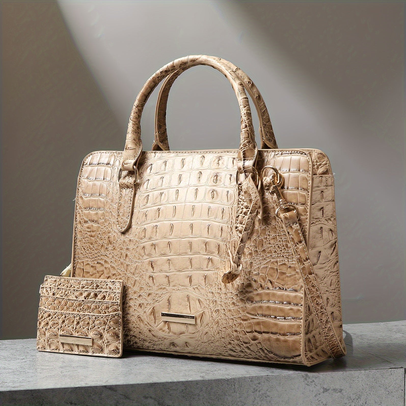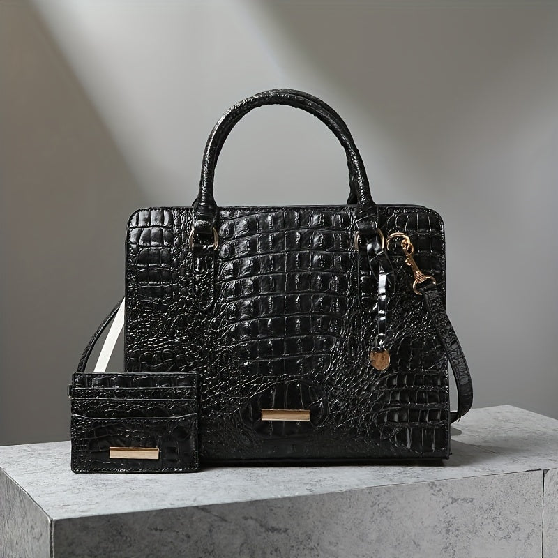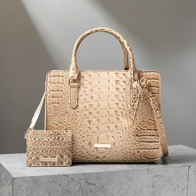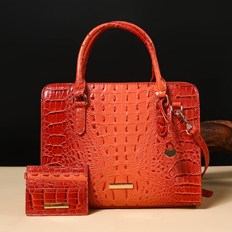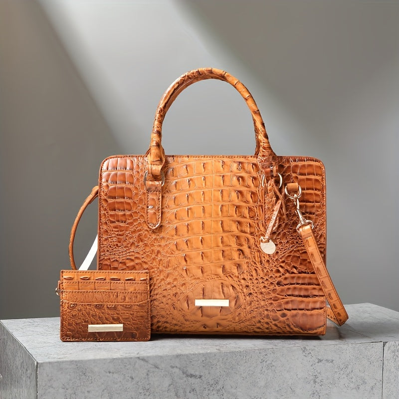 2pcs Chic Crocodile Pattern Faux Leather Set - Spacious Interior, Trendy Shoulder Strap, Fashionable Clutch Purse, Stylish Accessory for Work, Daily Life, and Special Occasions with Premium Quality, Durable and Stylish Design