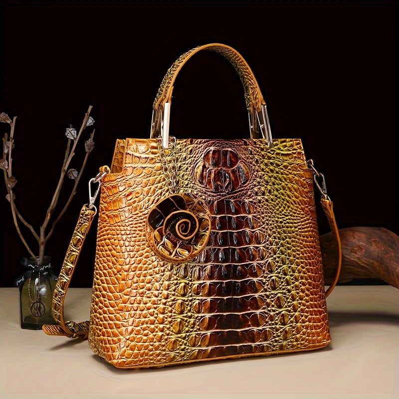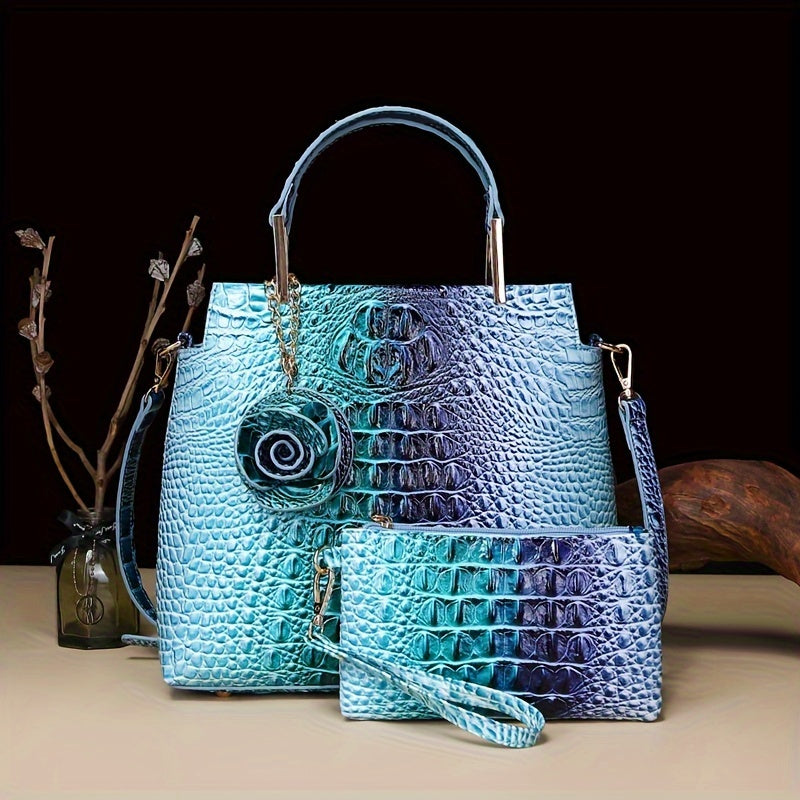 2pcs Crocodile Print Handbag Set - Fashionable Vintage Style, Multi-Functional Top Handle Crossbody, Business Clutch & Coin Purse - Spacious, Secure, Ideal for Everyday Chic