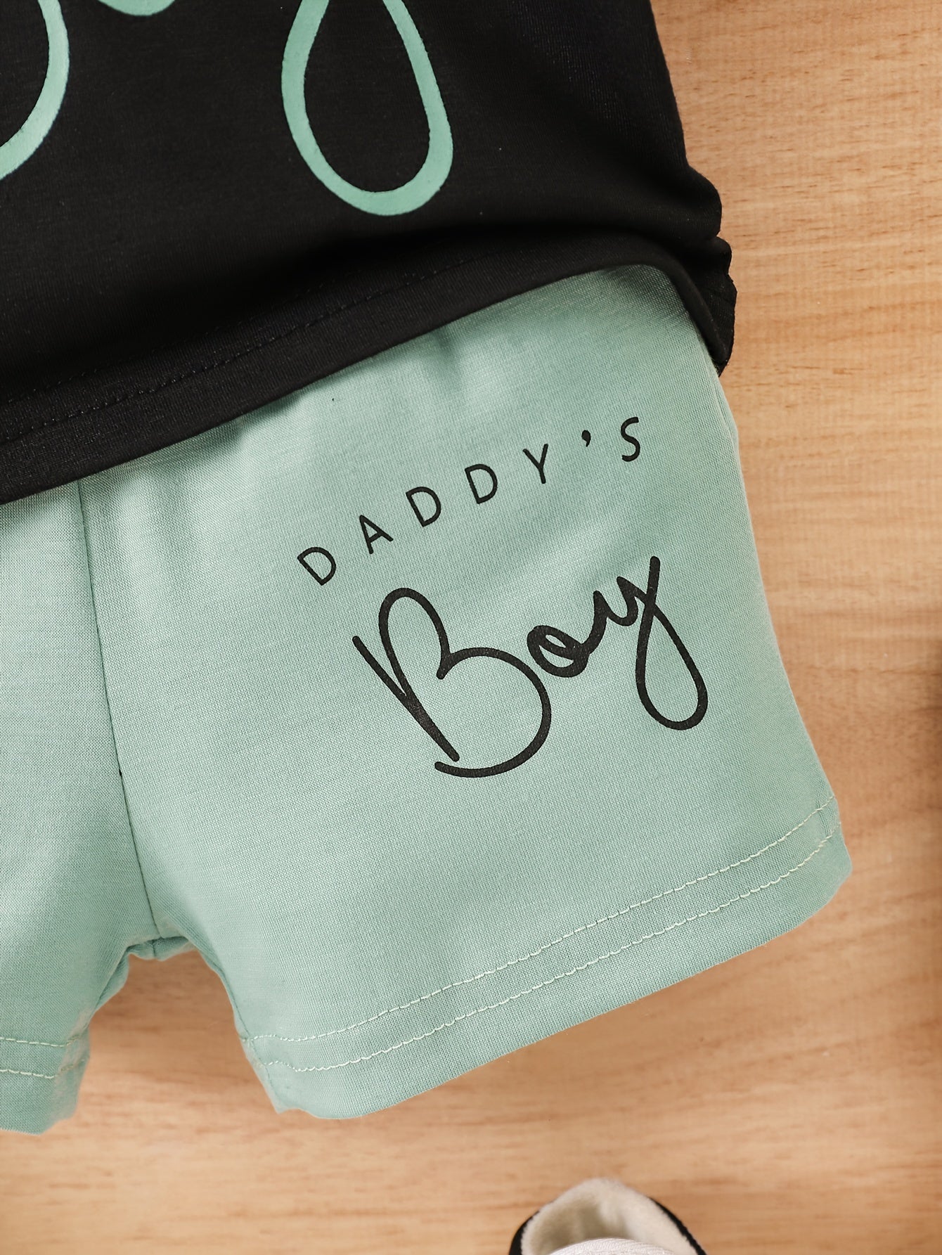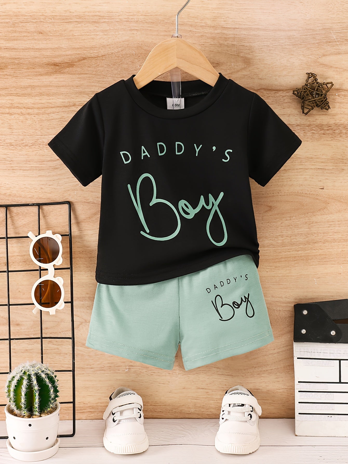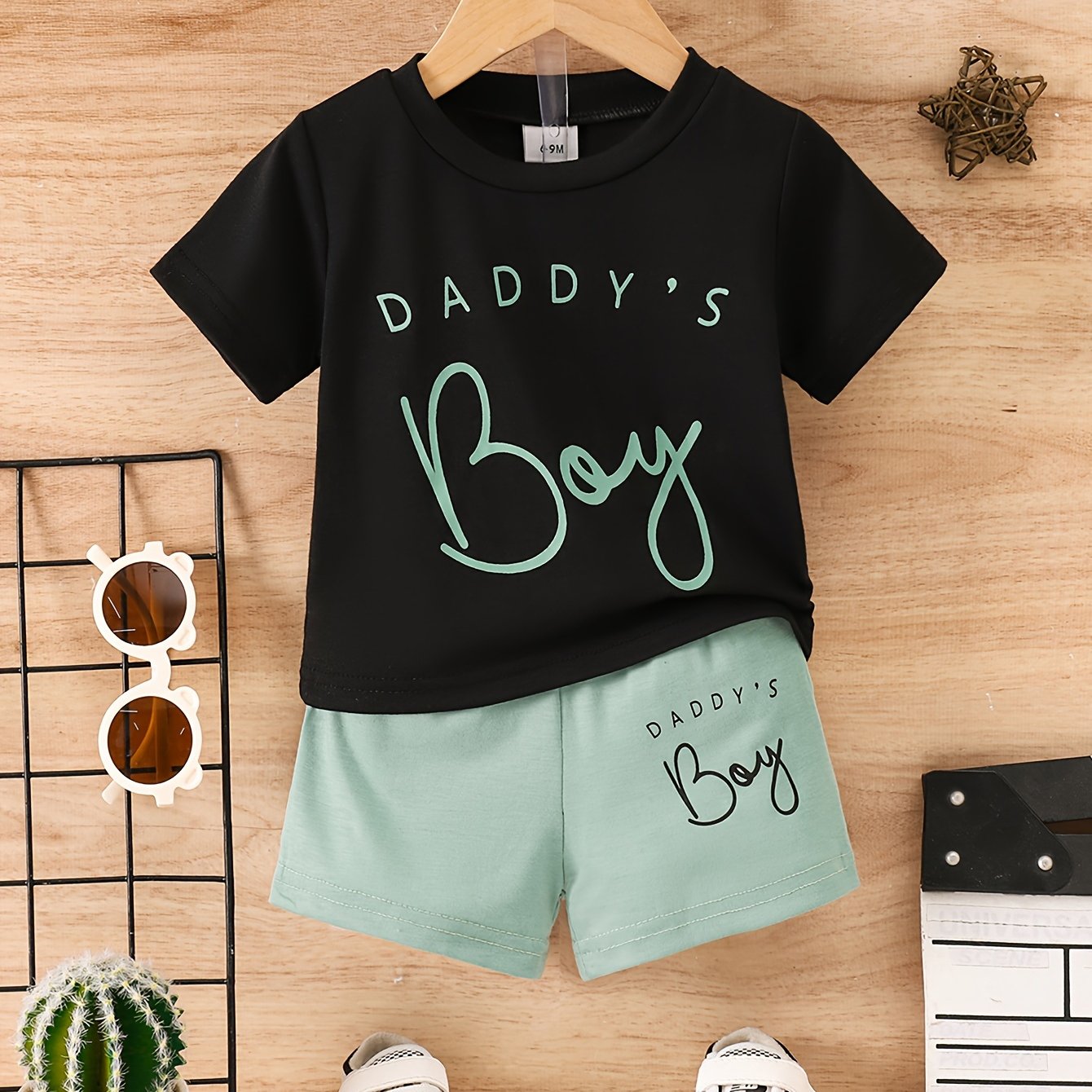 2pcs "Daddy's Boy" Print Casual Outfit For Infant & Toddler, T-shirt & Elastic Waist Shorts, Baby Boy's Clothes For Summer, Outdoor Cloth