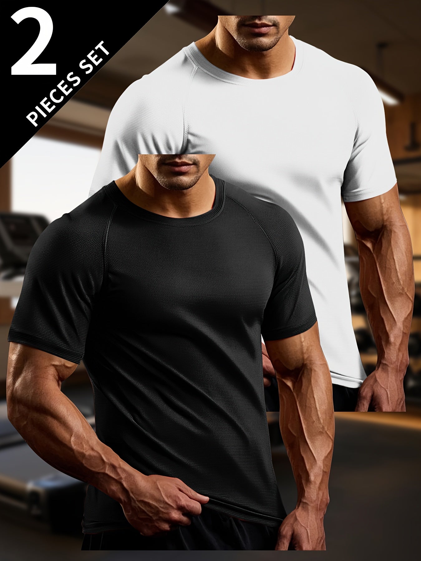 2pcs Men's Quick-Dry High-Stretch Solid Color Crew Neck Short Sleeve T-Shirts - Lightweight & Breathable for Gym, Running, Cycling, and Outdoor Activities, Gym Wear | Activityfriendly Shirt | Polyester Blend, Gym Clothes