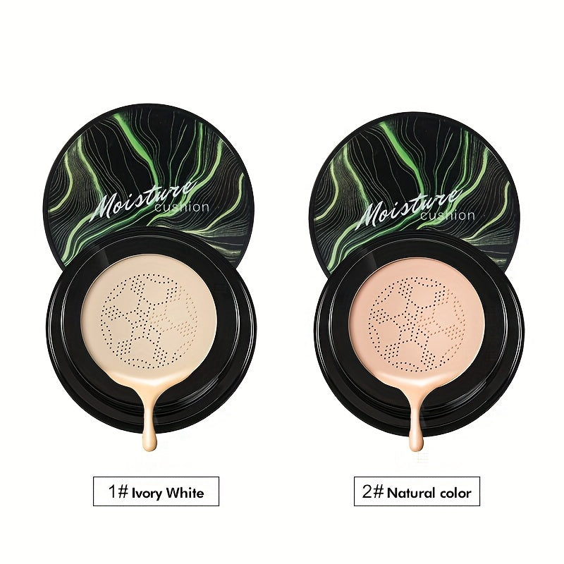 2pcs Mushroom CC Cream: Long Lasting, Waterproof, Hydrating Air Cushion BB Cream Foundation for Invisible Pores