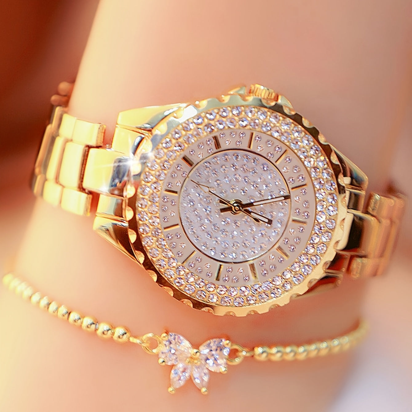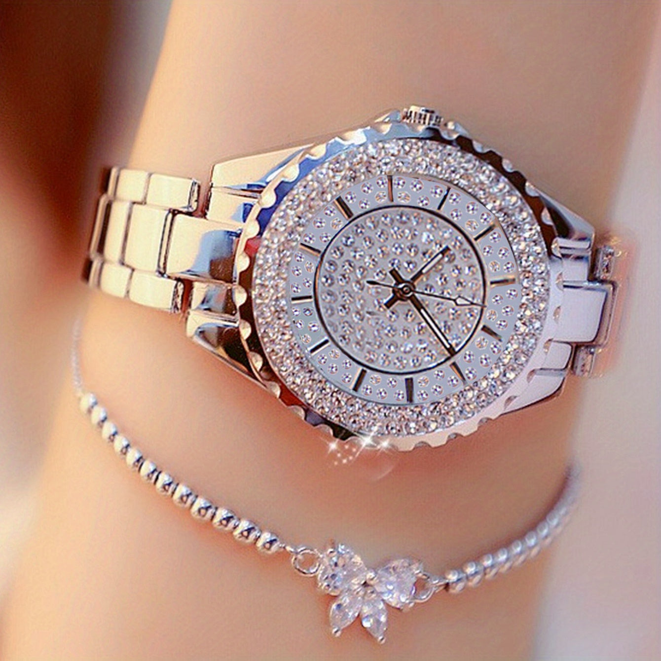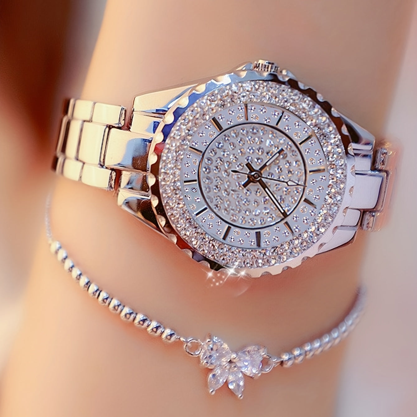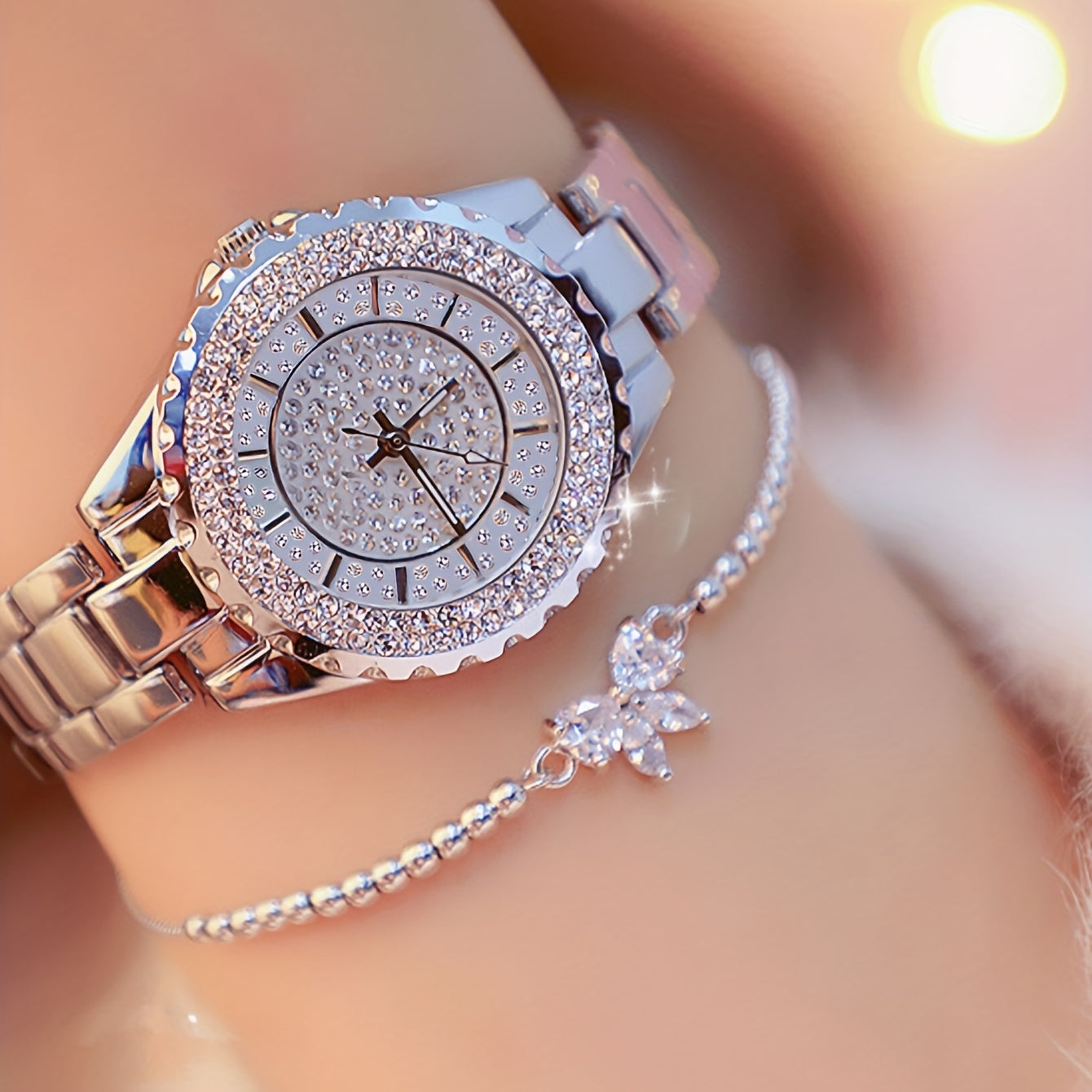 2pcs/set Watch Jewelry Set Women's Quartz Rhinestones Watch 1pc+ Stylish Bow Bracelet Pc Valentines Gift for Her
