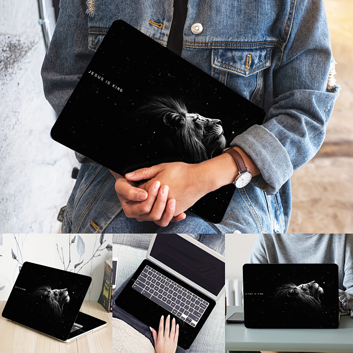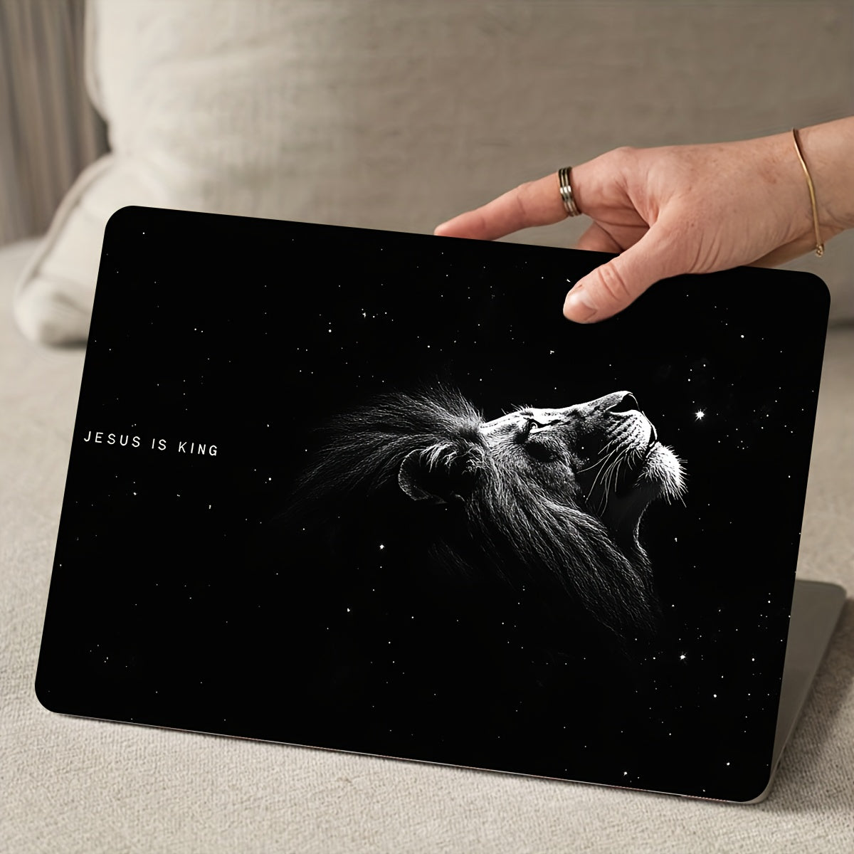 2pcs Skins Vinyle Lion pour Ordinateur Portable, Thème "Jésus est Roi", Étanches & Résistants aux Rayures, Adaptés pour Ordinateurs Portables, Voitures, Casques, Motos, Réfrigérateurs - Design Céleste Inspirant