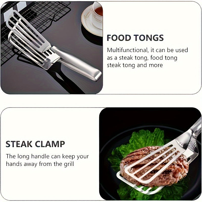 2pcs Stainless Steel Dining Tongs - Multifunctional Kitchen Tools, Easily Handle Buffets, Fish, Steak, Bread, Salads, and Desserts - Durable, Rust Resistant, Ergonomic Design for Seamless Food Display and Preparation
