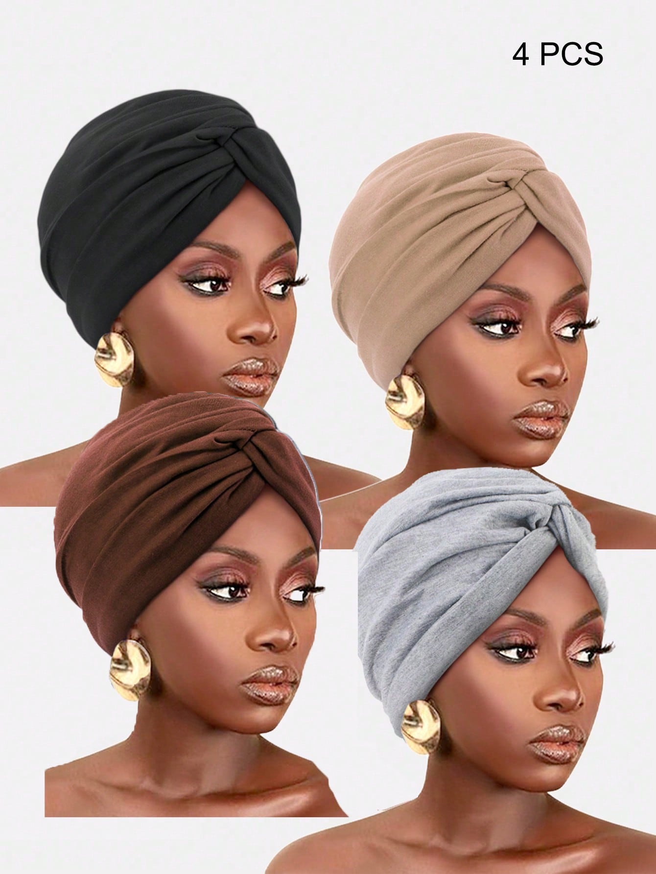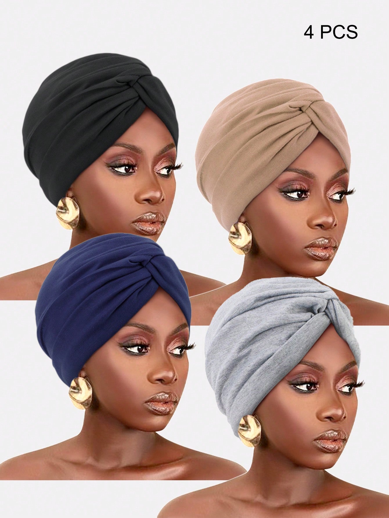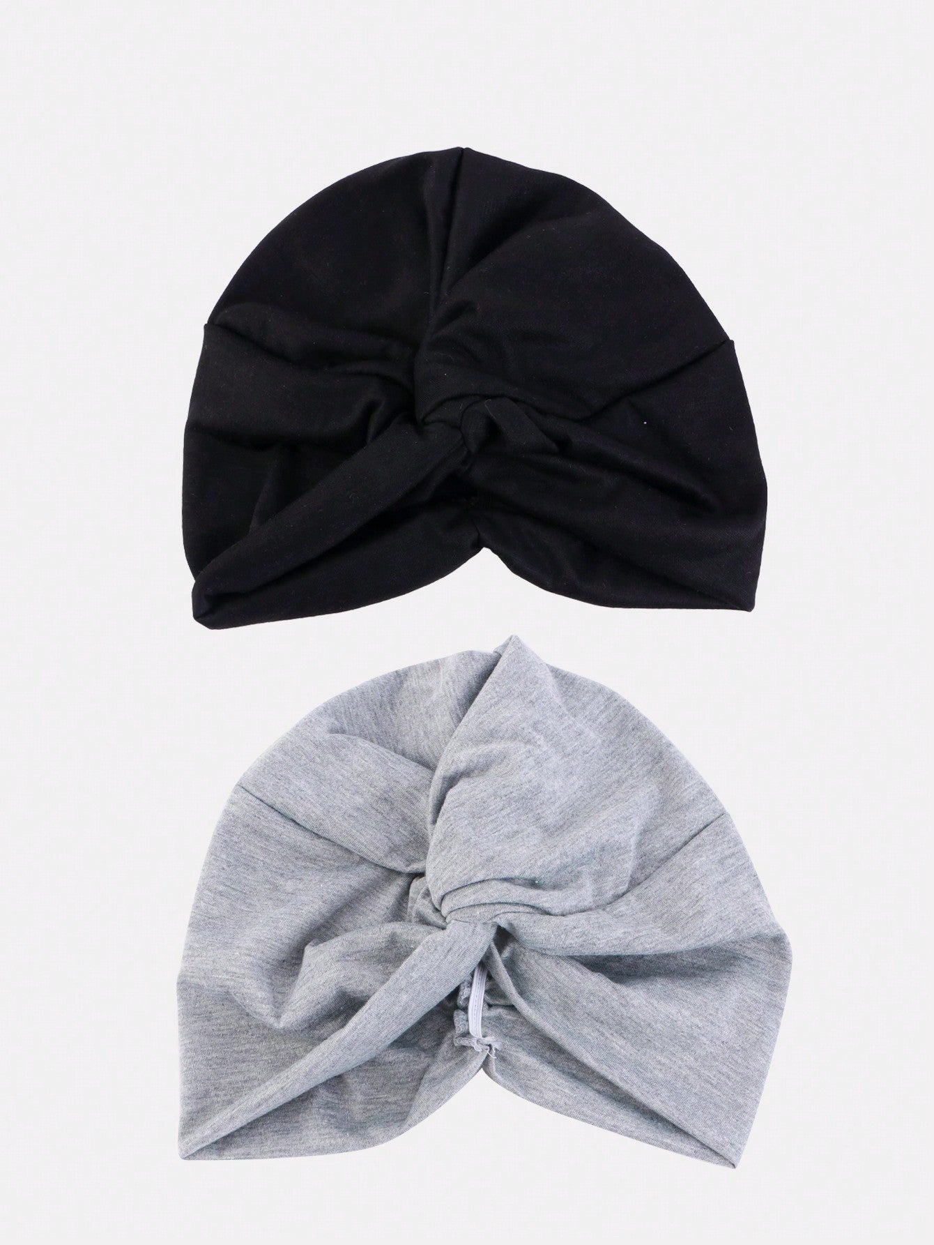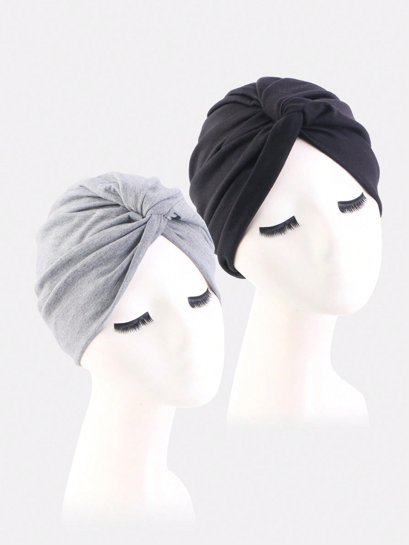 2pcs Women Silk-Like Lined Cancer Headwear, Solid Cross Twist Cap, Sleeping Cap, Scarf Hat For Daily Use