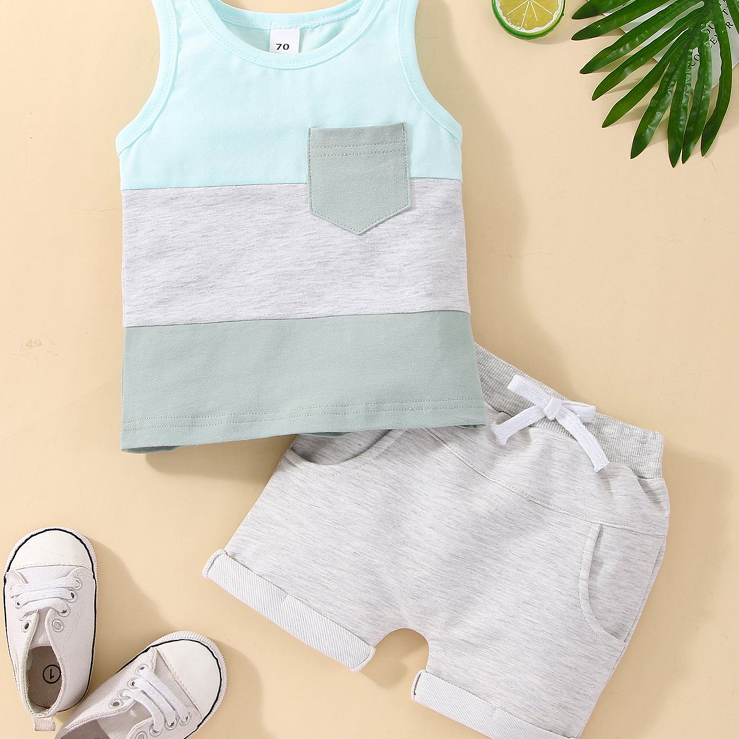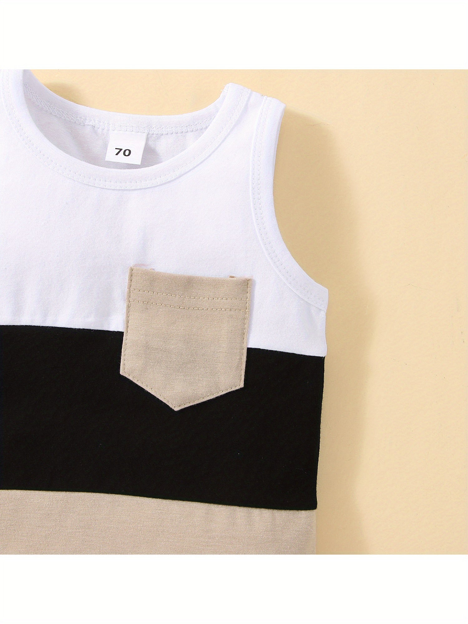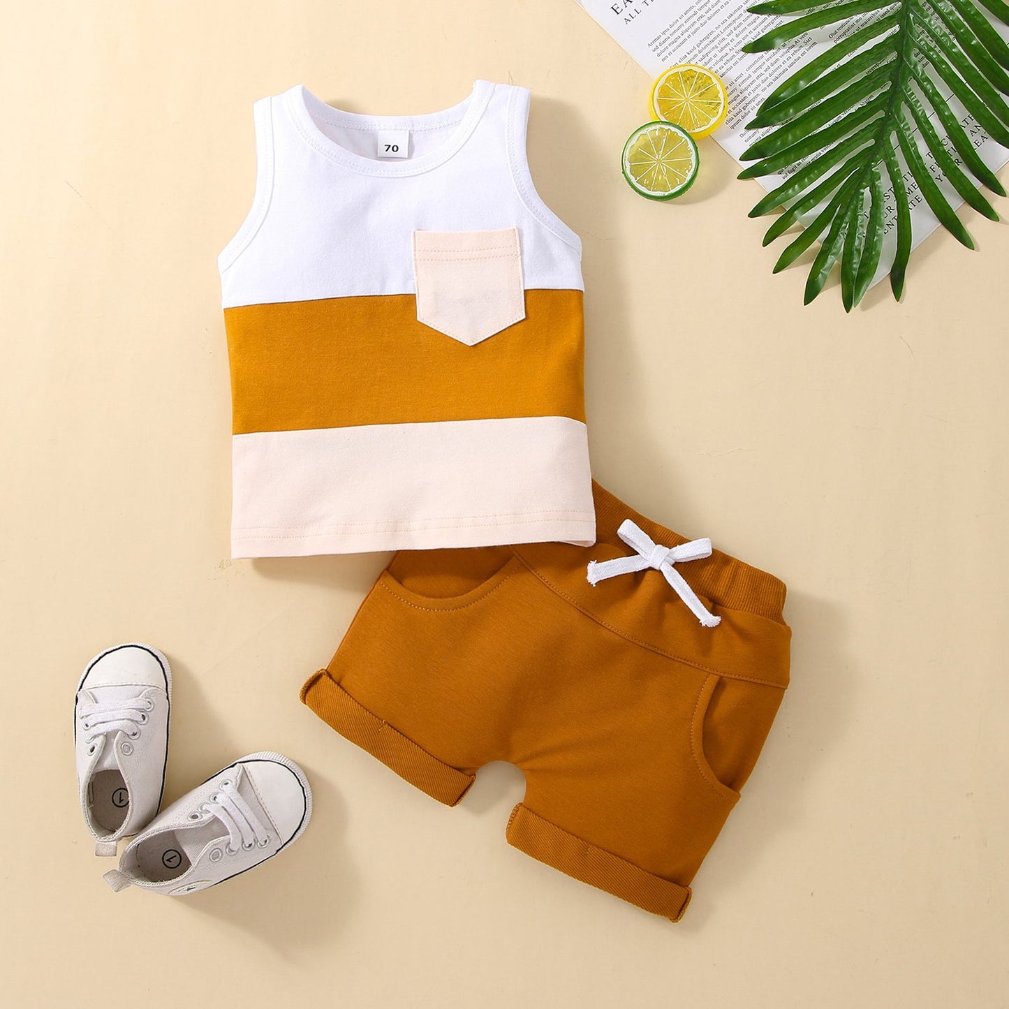3 Months-3 Years Toddler Baby Boys 2PCS Pants Suit, Sleeveless Patchwork Crew Tank Tees + White Straps Short Pants, Toddler Boys Casual Outfit