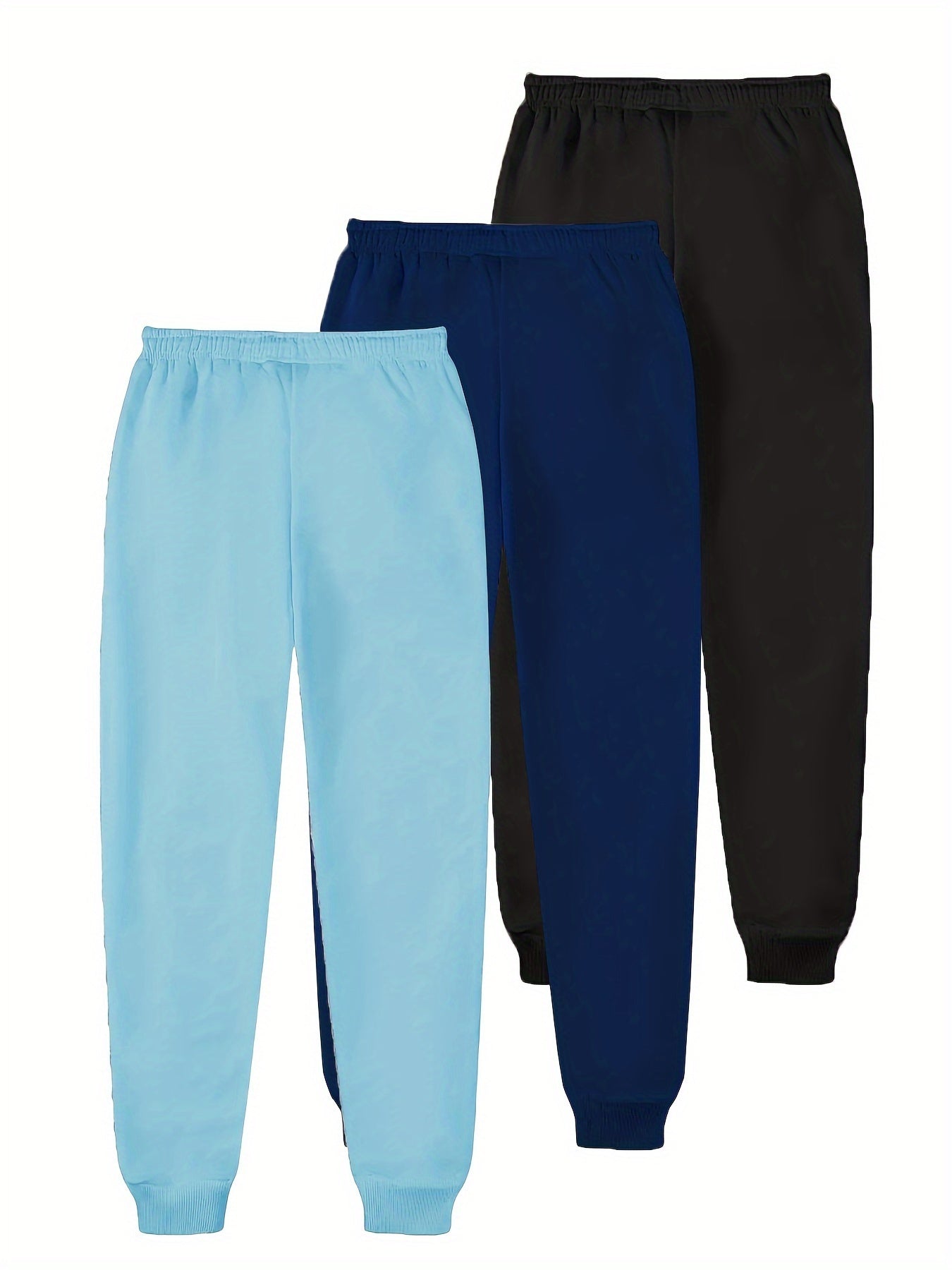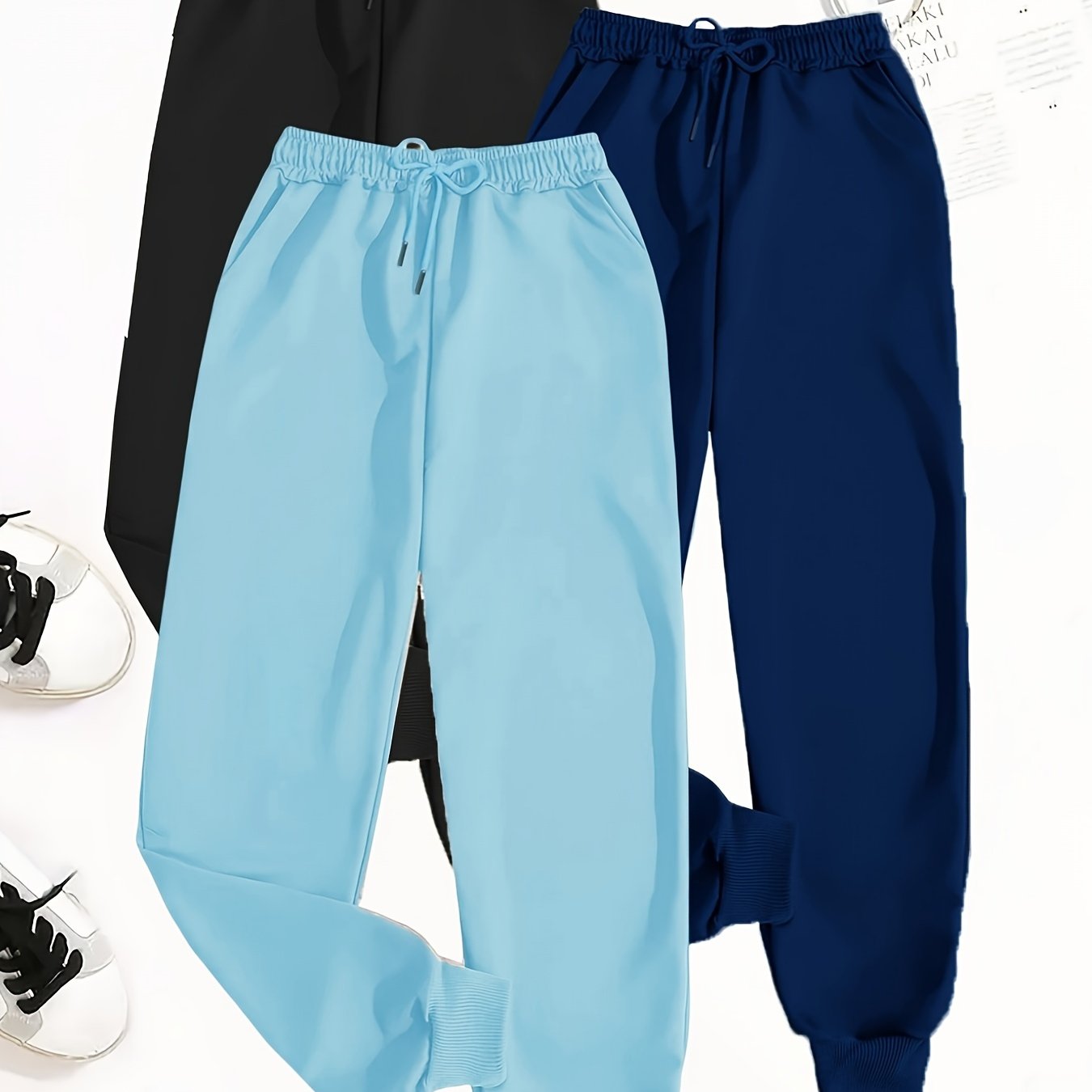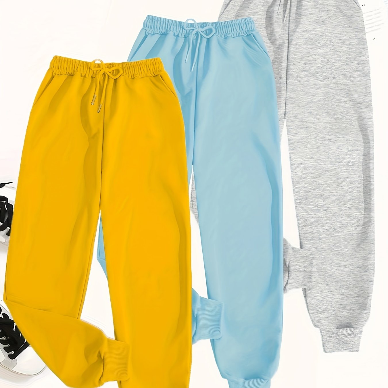 3-Pack 100% Polyester Knit Fabric Solid Color Drawstring Joggers with Pockets, All-Season Casual Elastic Waist Pants for Women - Middle-Eastern Style Regular Fit Lounge Trousers