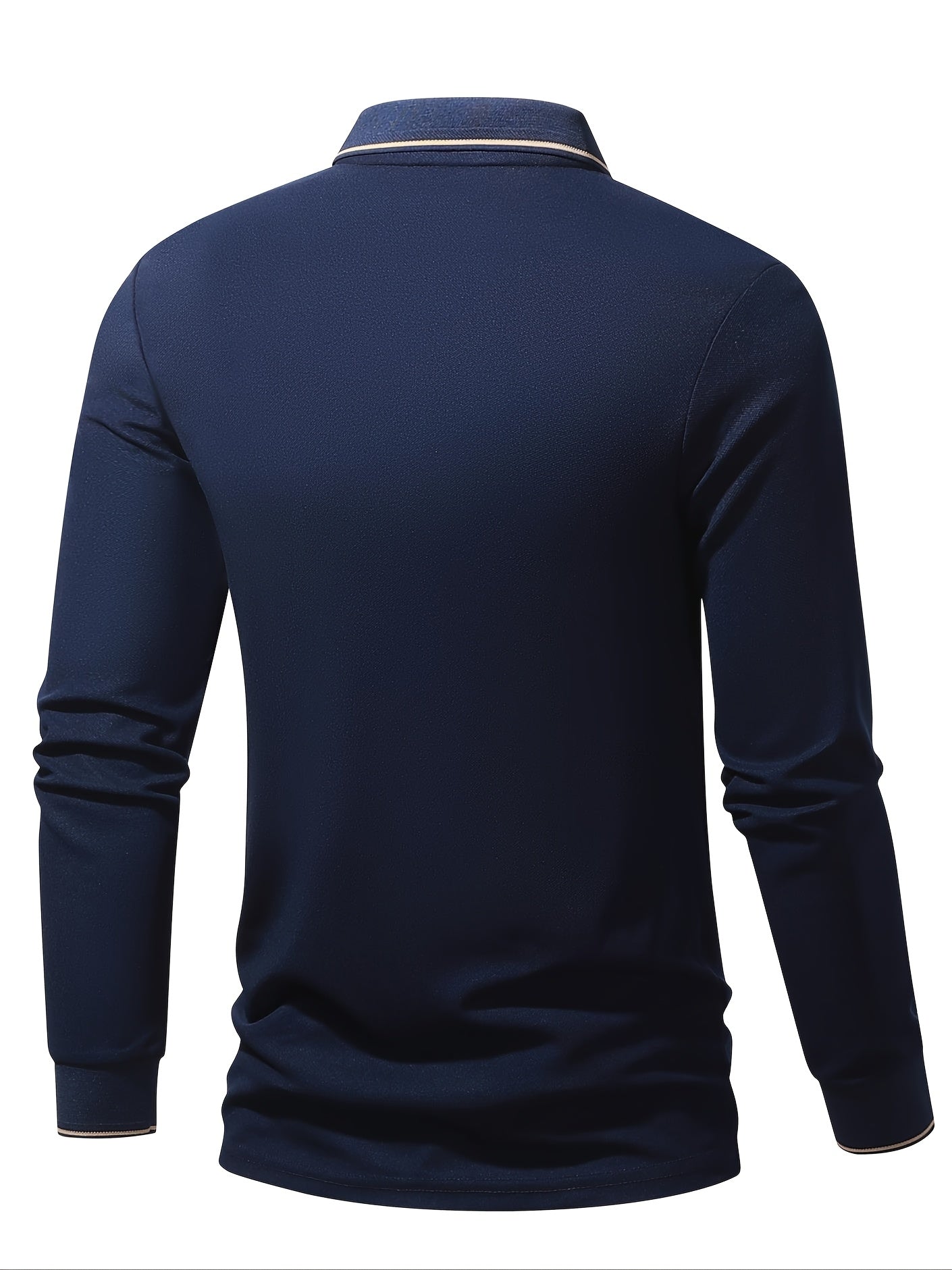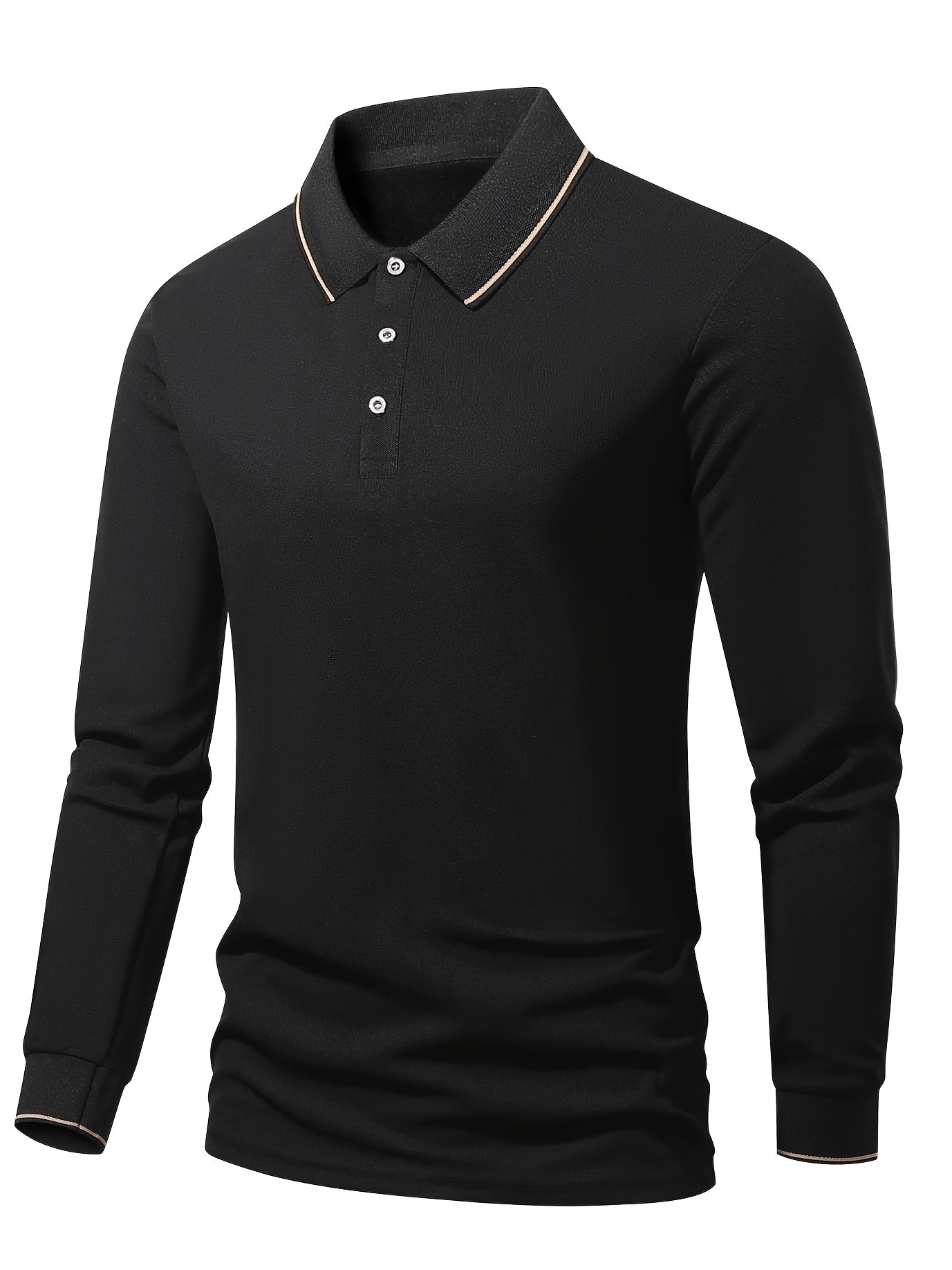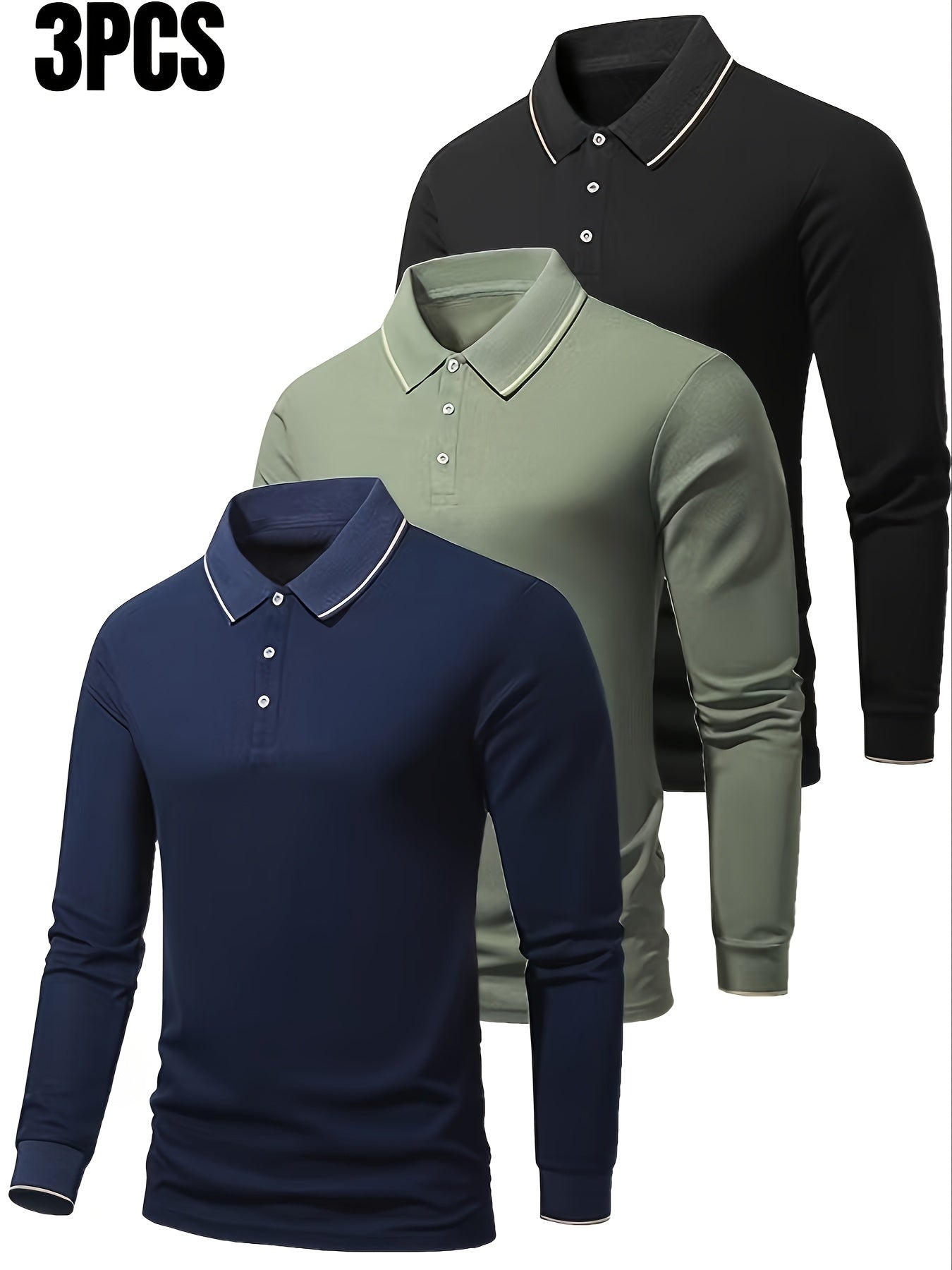 3-Pack Men'S Casual Long Sleeve Golf Polo Shirts, 100% Polyester Knit Fabric, Regular Fit with Wide Collar, Button Placket, Solid Color, Slight Stretch, for Tennis & Sports Events - Black, Army Green, Dark Blue