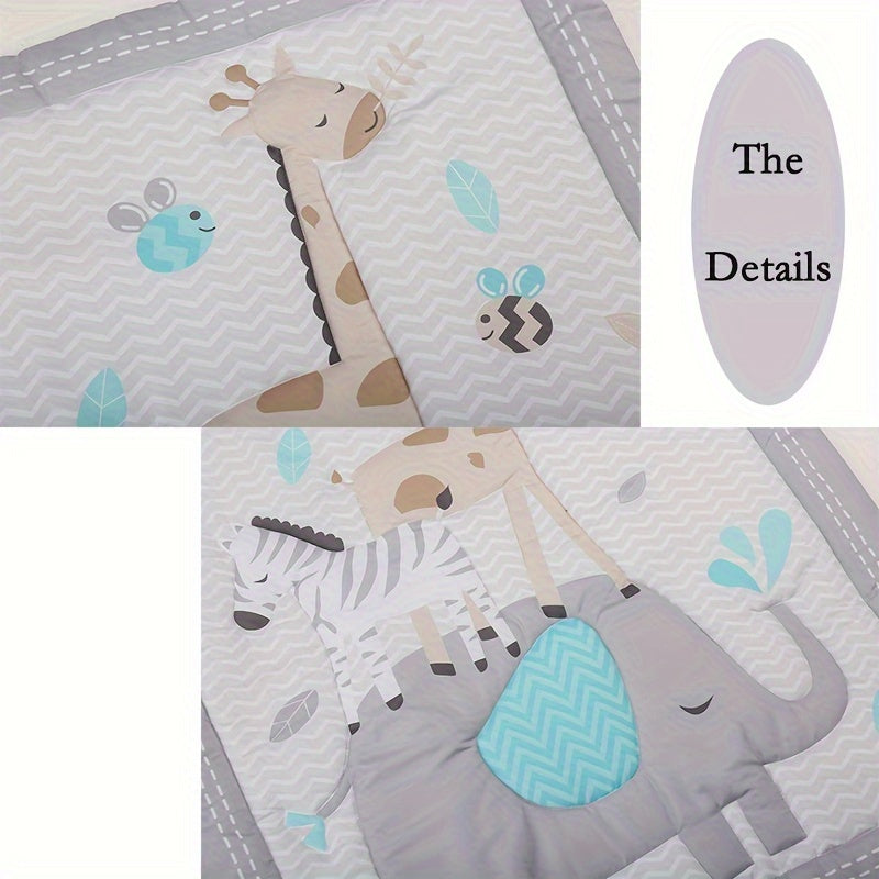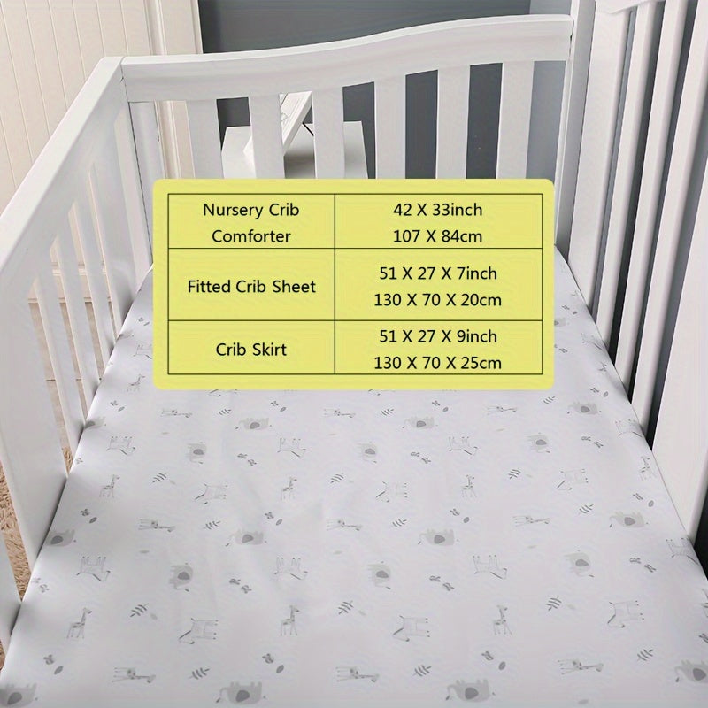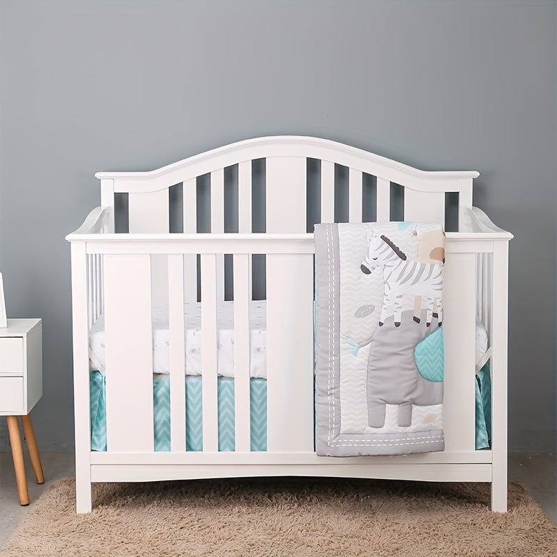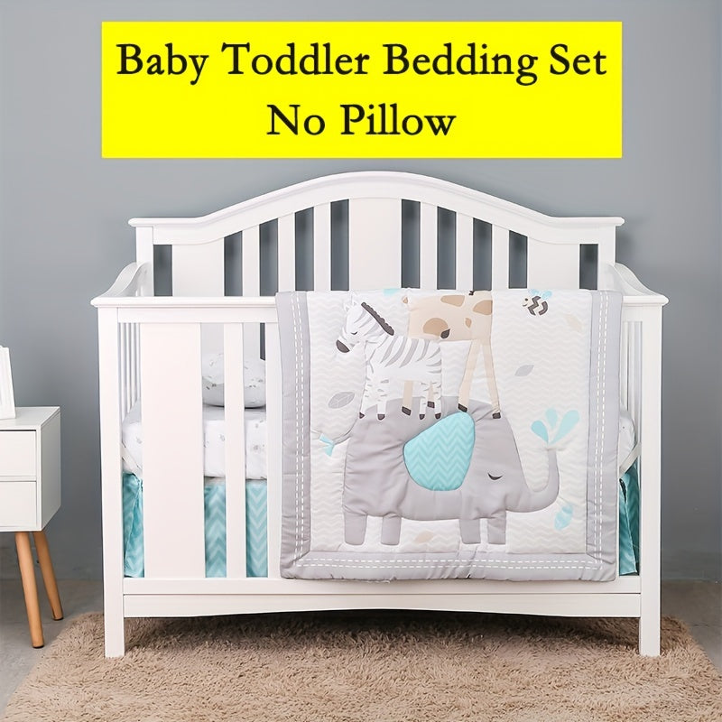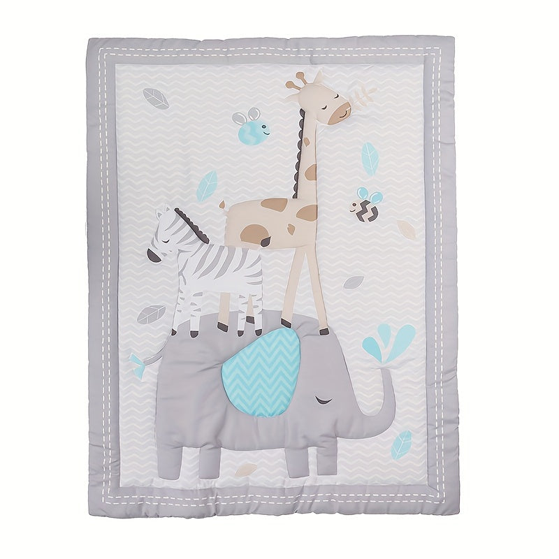 3-Piece Gray Cartoon Animals Quilted Comforter Set - Includes Kids Quilt, Bed Skirt, and Fitted Sheet - Breathable and Comfortable, Perfect for Boys and Girls - Machine Washable Quilted Bedding Set with Elephant, Zebra, and Giraffe Design