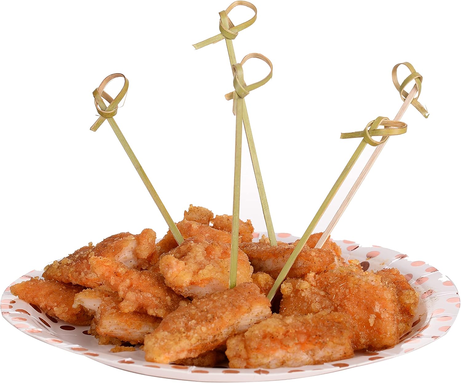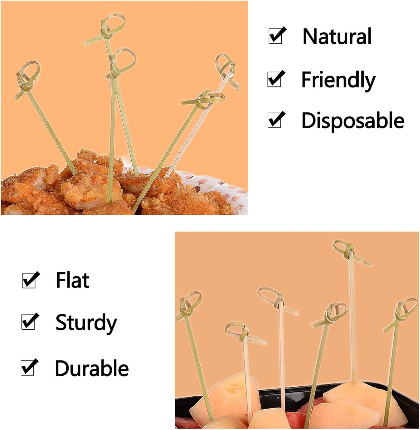🎀USEFUL VALUE: Our cocktail sticks are used conveniently and flexibly. Bamboo kabob skewers keep ingredients pinned together and add style to your food presentation. Serve your family and friends great snacks with these quality looped knot bamboo picks.