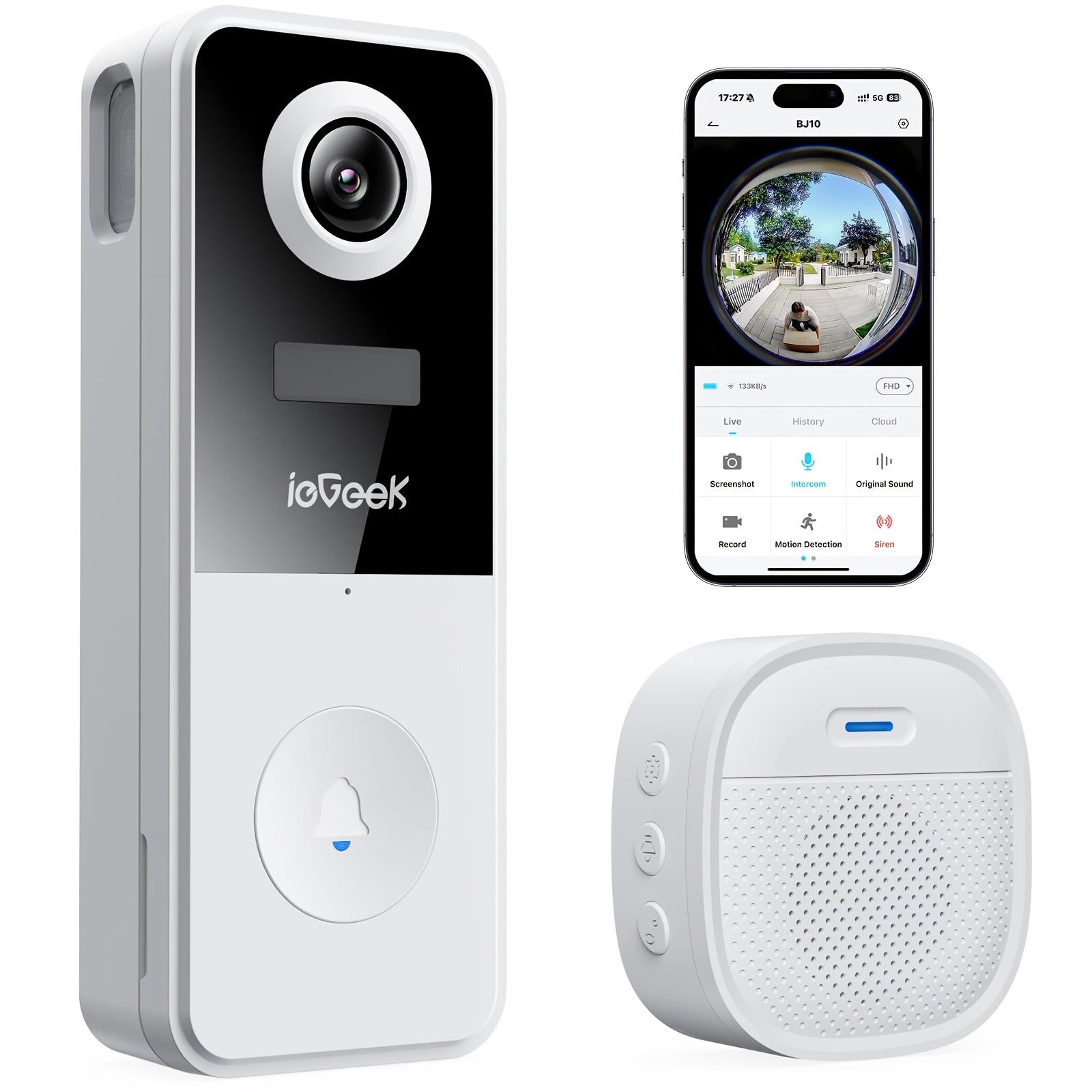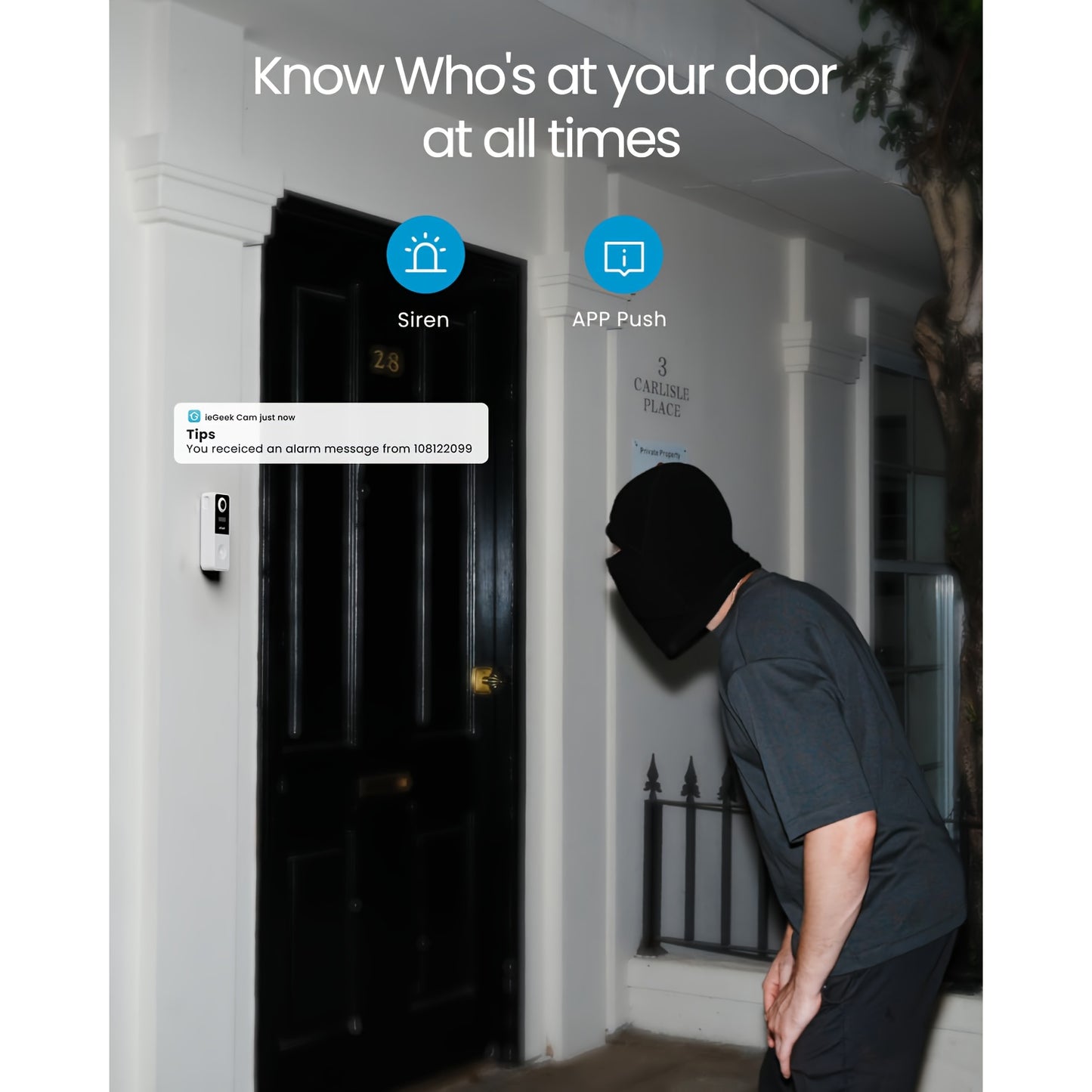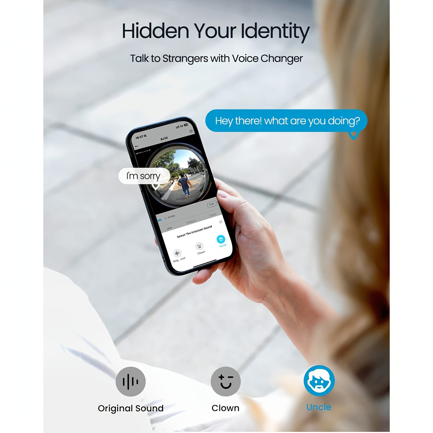 3MP Ring Doorbell Camera, Wireless Doorbell Camera, No Subscription Required, 180° Head to Toe View, 2-Way Talk to Voice, PIR Motion Detection Night Vision, 2.4GHz WiFi Only, Works with Alexa, for Homes/Backyards, Indoors/Outdoors