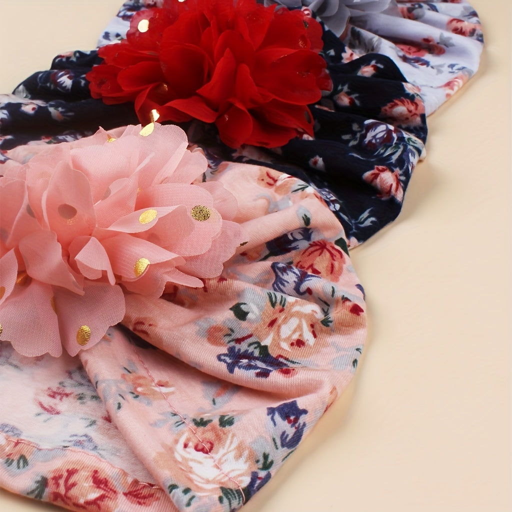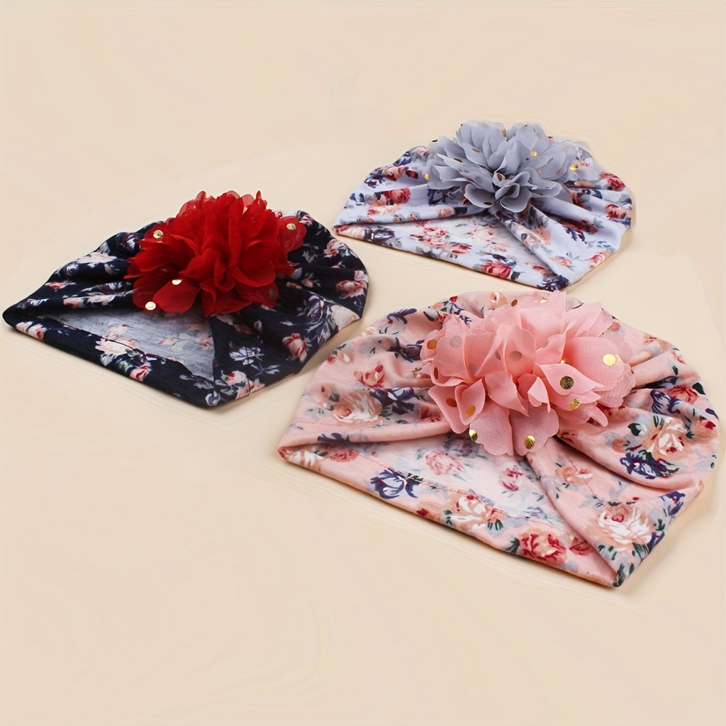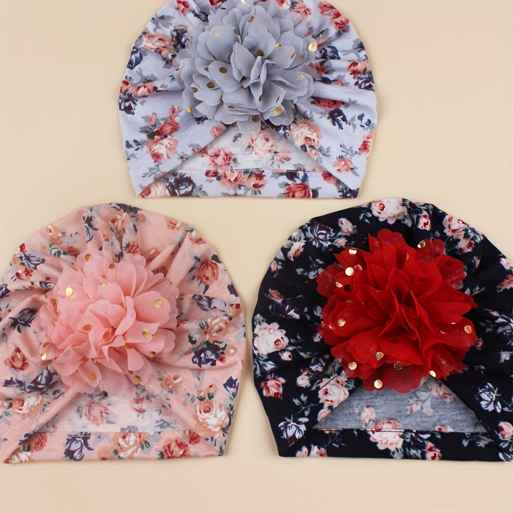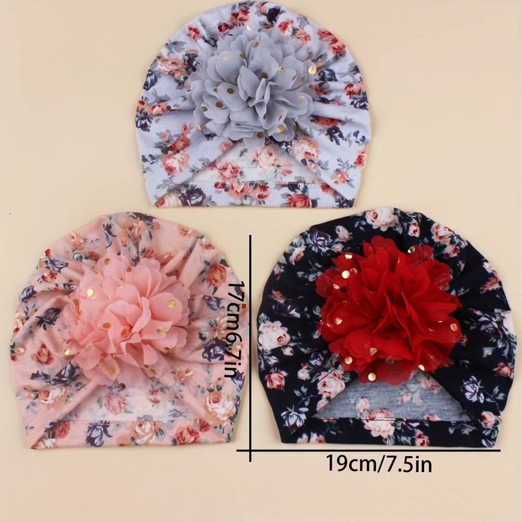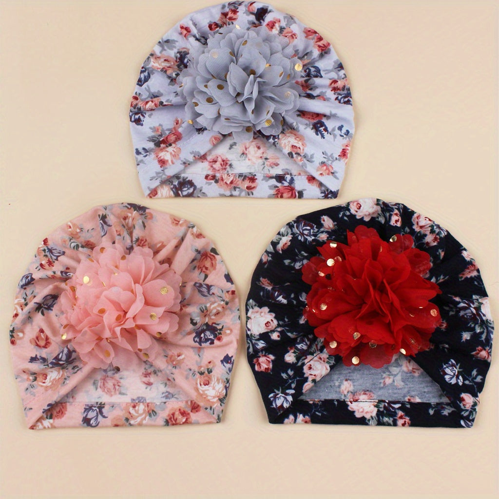 3pcs Baby Soft And Comfortable Printed Hat Set For Girls' Hair Accessories Set