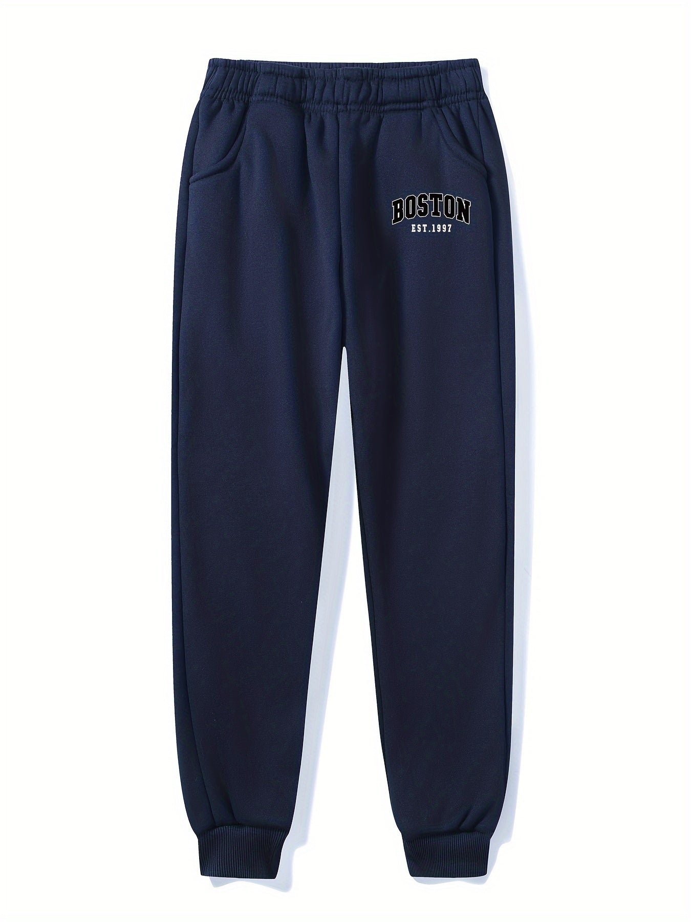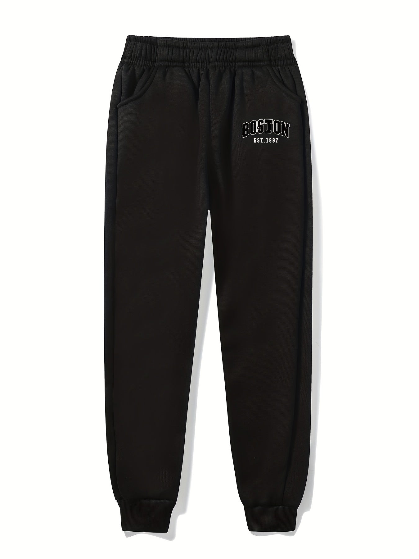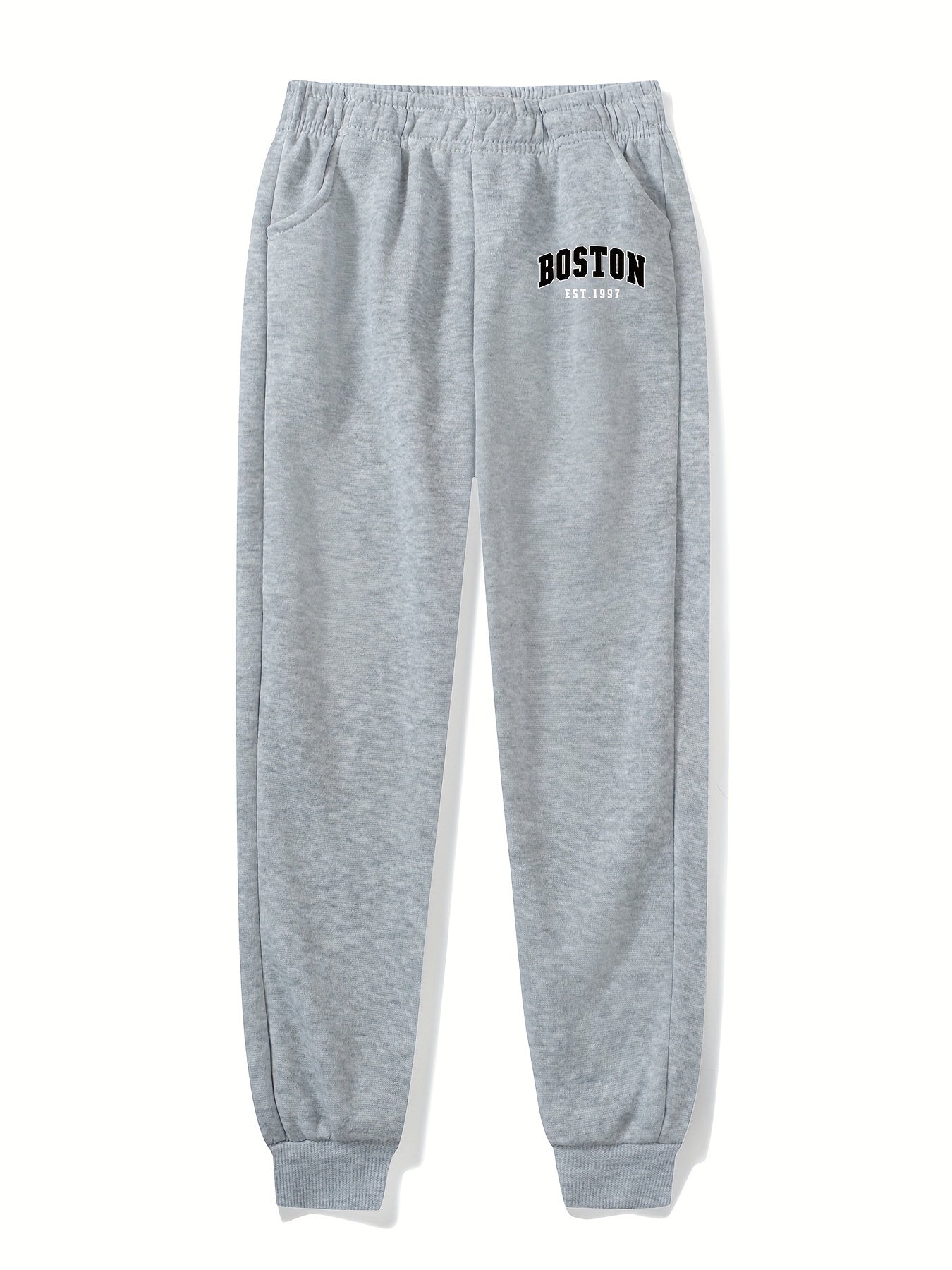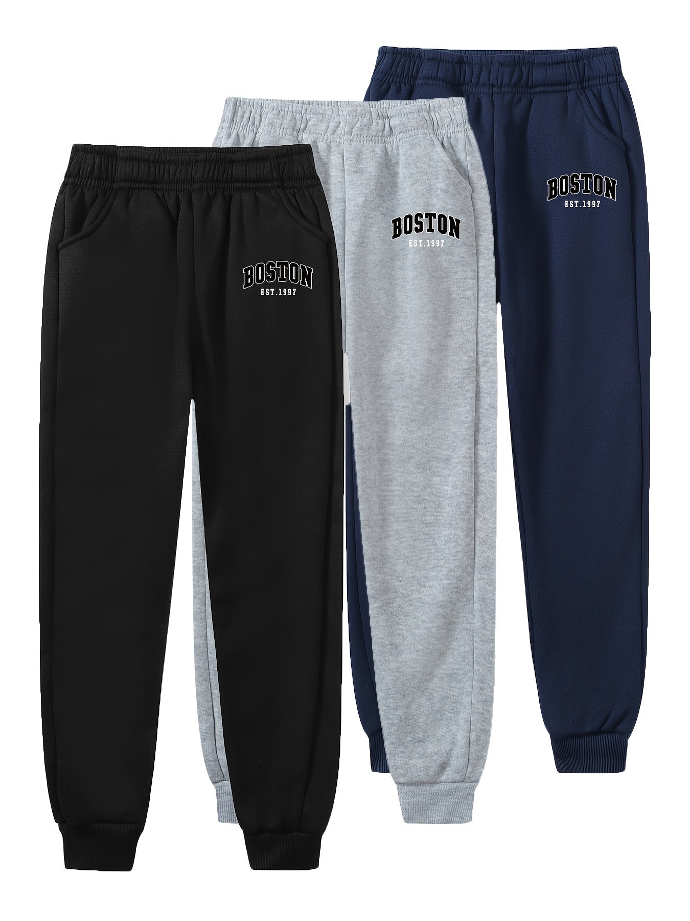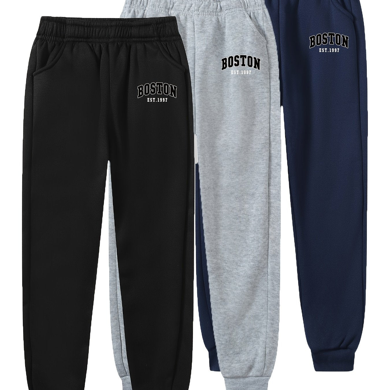 3pcs BOSTON Letter Print Boys Casual Comfortable Active Sweatpants, Breathable Jogger Sports Pants, Kids Clothes Outdoor