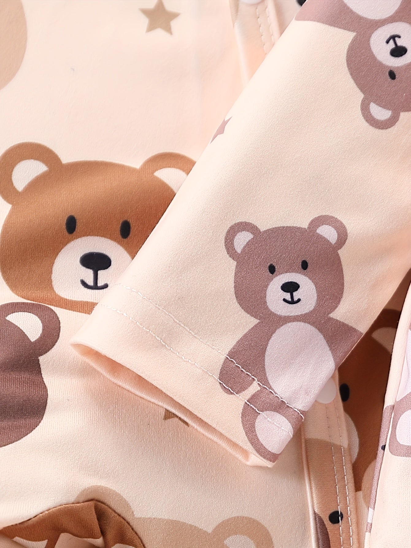 3pcs Boys' Footed Romper Set, Baby Boy's Bear Cartoon Striped Jumpsuit with Elastic and Soft Comfort, Perfect for Outdoor