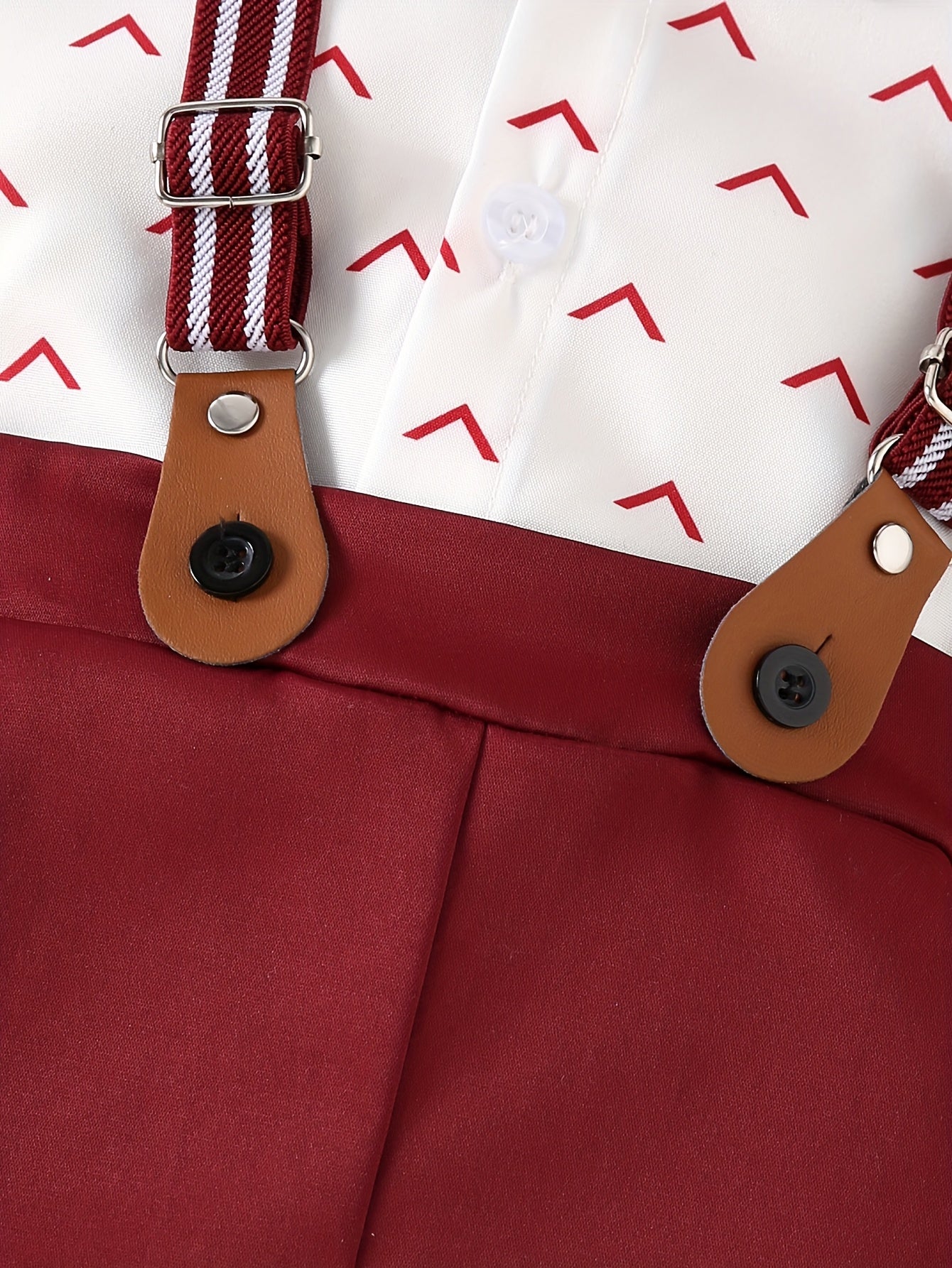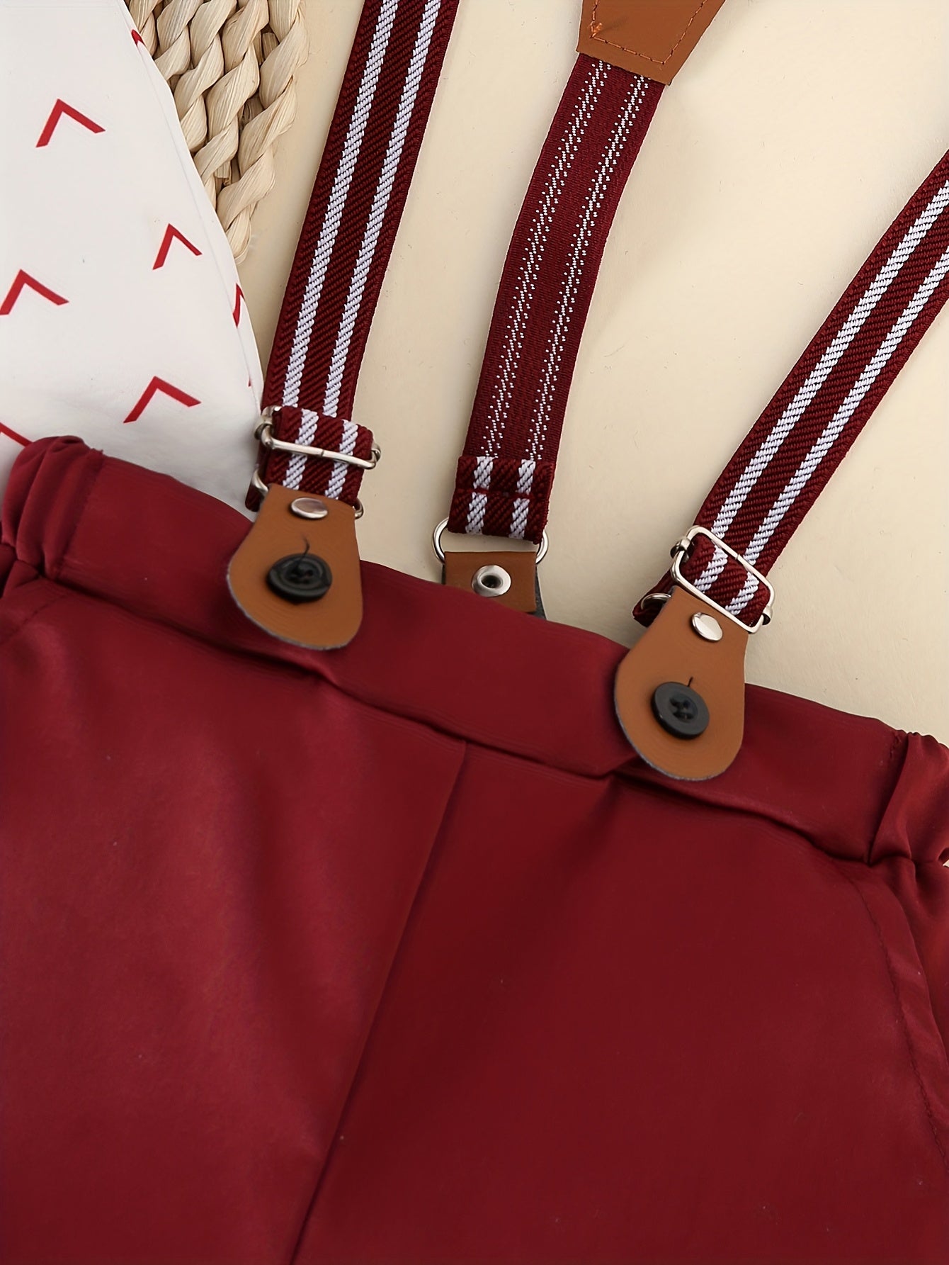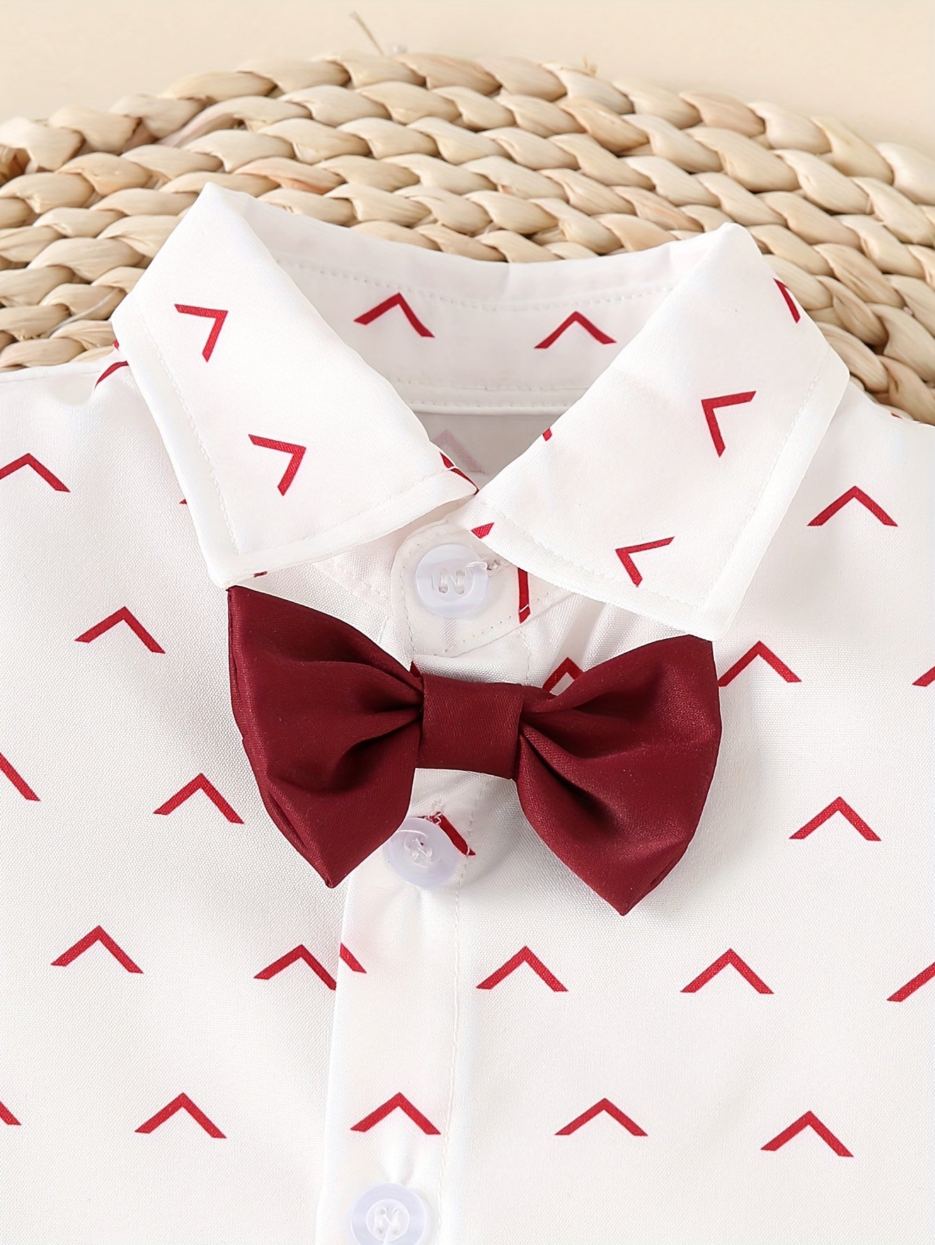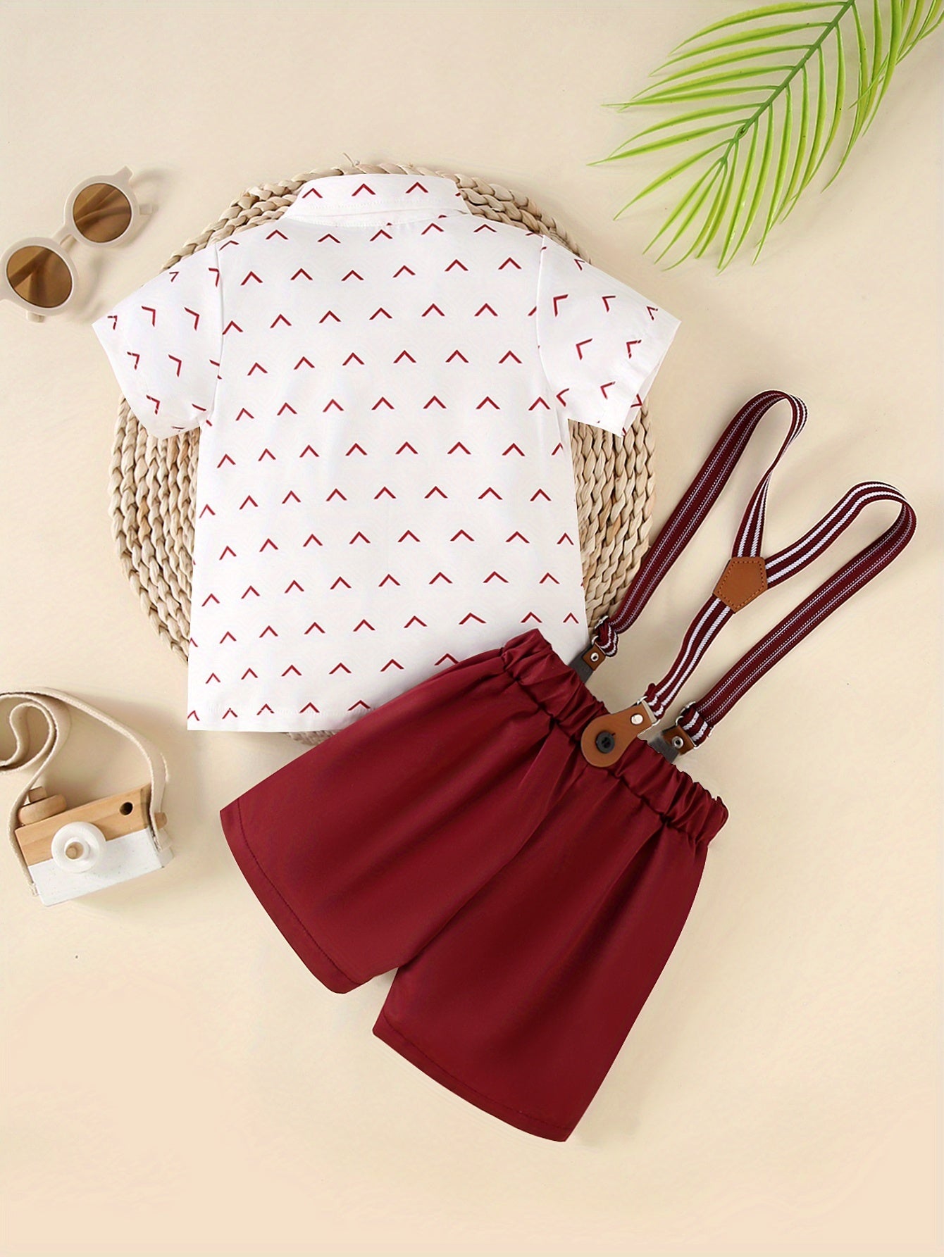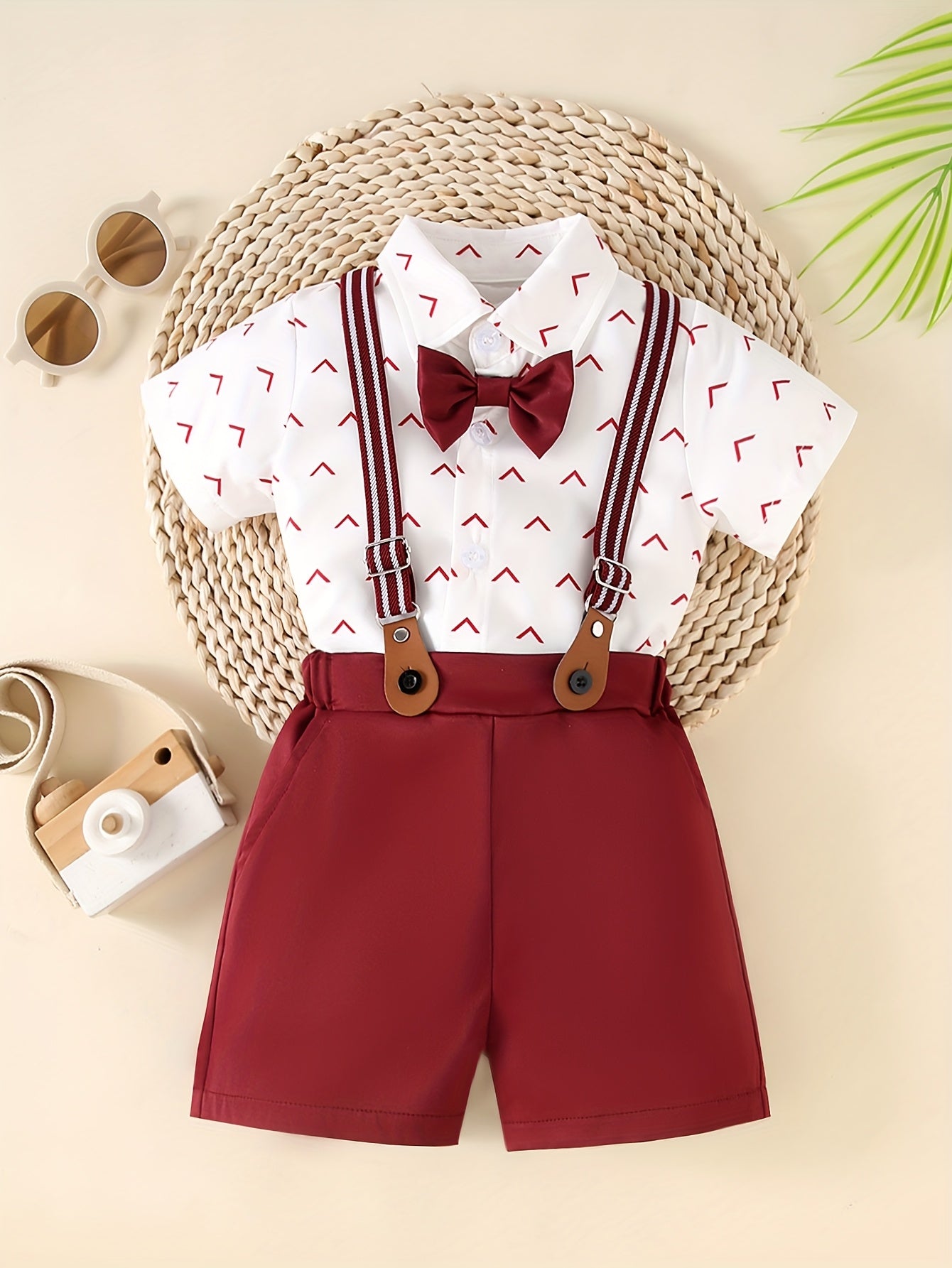 [3pcs Gentleman Set] 3pcs Toddler Boy Gentleman Set - Cute Summer Outfit, White Short Sleeve Shirt with Bowtie & Khaki Shorts | Adjustable Strap Belt Included, for Outdoor Youngster